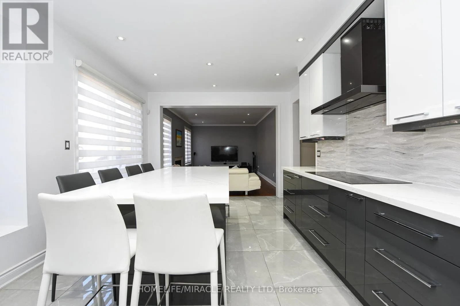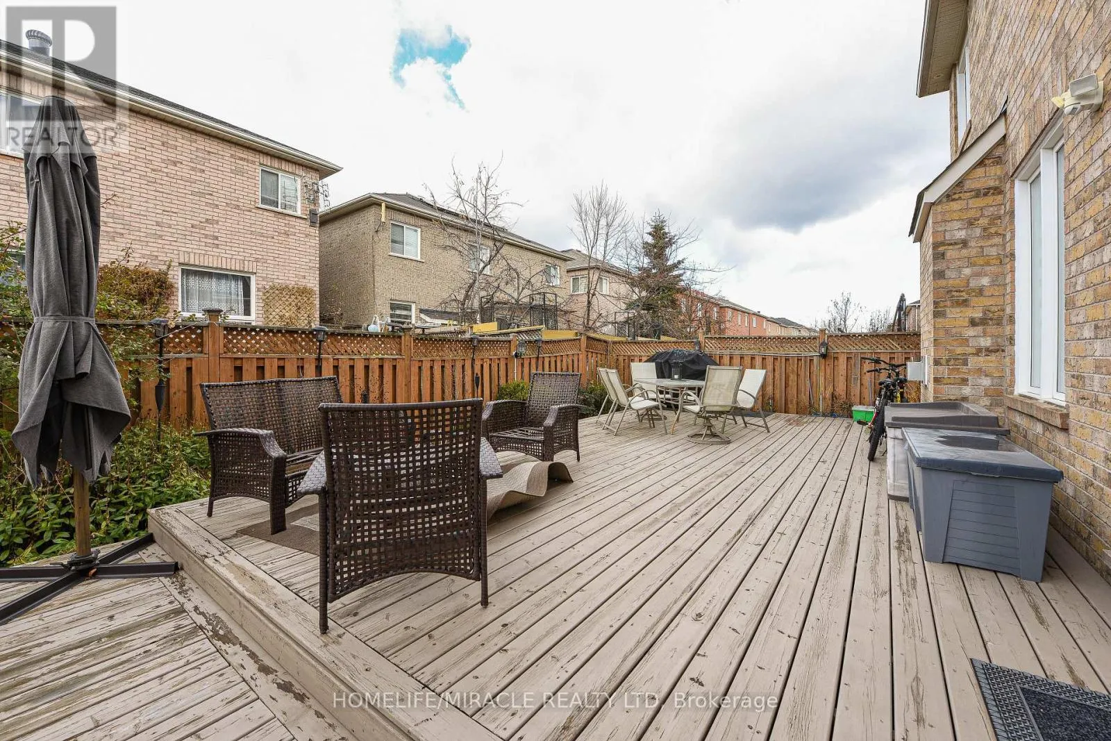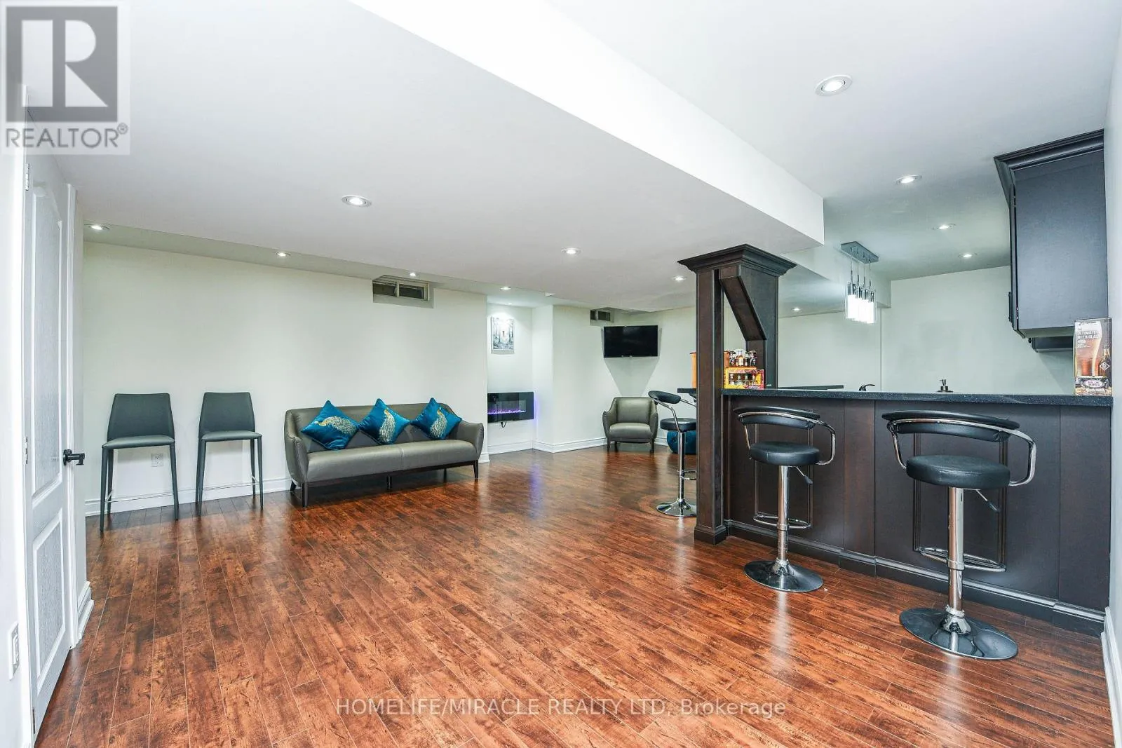 WANLESS AND CHINGUACOUSY Stunning 4-bedroom detached home in a highly desirable Brampton neighbourhood! Features upgraded hardwood floors throughout, 9-ft ceilings, pot lights with dimmers, and a cozy family room with fireplace. Modern, recently upgraded kitchen with quartz countertops, custom cabinetry, large island with seating for eight, induction stove, upgraded SS appliances, and a beautiful butler's servery/pantry with mini-fridge. Walkout to a 2-stage deck with electric fence lighting. Upper level includes a spacious primary bedroom with 4-pc ensuite and W/I closet, plus 3 large bedrooms and an upgraded guest washroom with modern stand-up shower. Finished basement with a stylish bar-perfect for entertaining. Exterior upgrades include pot lights all around the home and an extended driveway with built-in lighting. Additional highlights: brand new 2-stage Carrier furnace with humidifier, brand new washer/dryer, Ecobee smart thermostat, and upgraded quartz counters in all bathrooms. Prime location close to Hwy 410/401/407, top-rated schools, parks, shopping, and community centre. (id:27476)