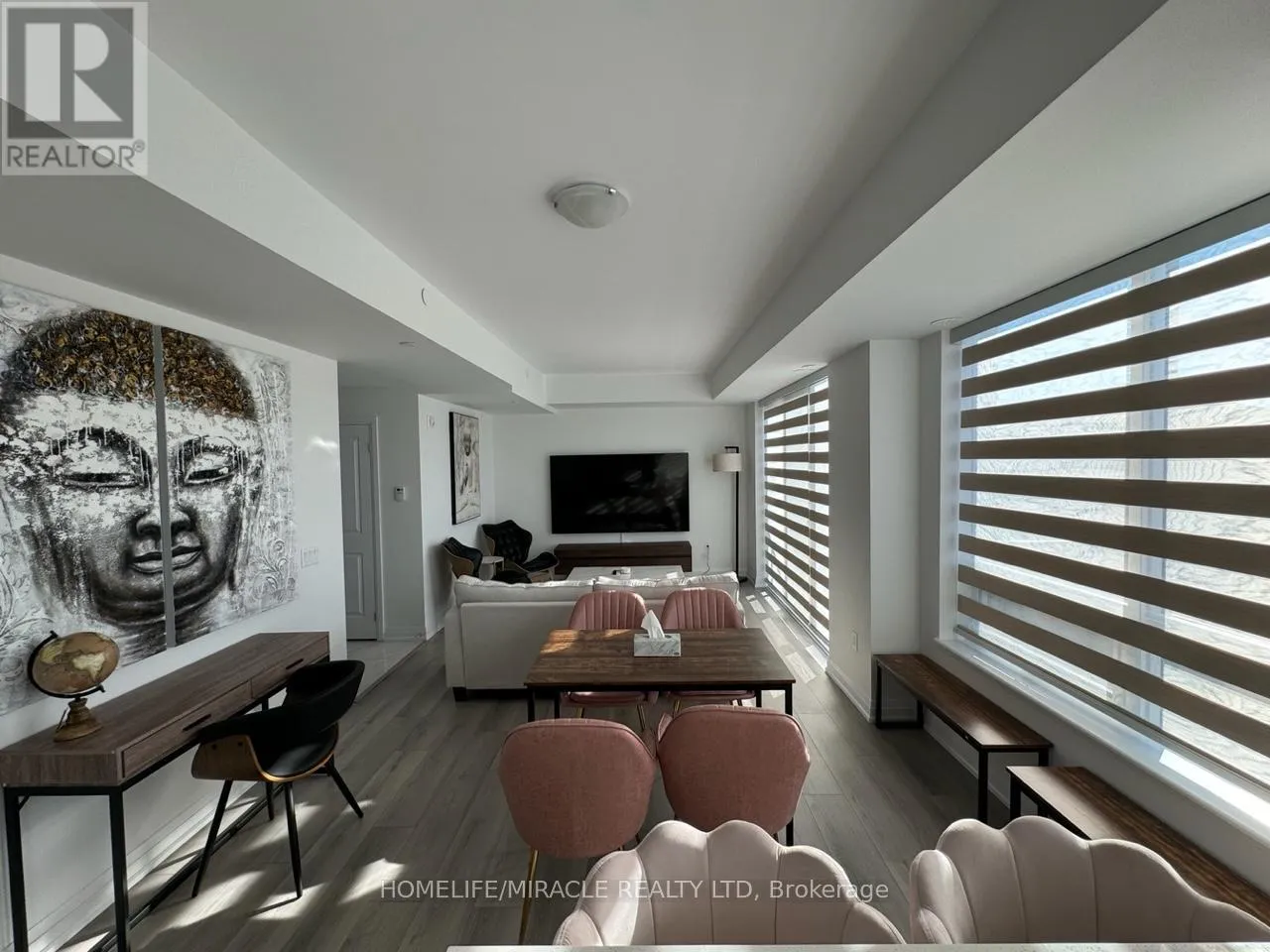 Cross Streets: Queen & Gore Road. ** Directions: https://maps.app.goo.gl/Q5JtPLPqGKnh5UNd8C6. Welcome to this beautifully upgraded Executive 2-storey, 3-bedroom corner unit located in the highly desirable Brampton East (Bram East) community, bordering Vaughan. Offering approximately 1,480 sq. ft. of well-designed living space, this bright and sun-filled unit features an open-concept layout with laminate flooring throughout the main level, large windows, and a functional flow ideal for everyday living and entertaining.The modern kitchen is equipped with quartz countertops, contemporary cabinetry, and generous prep and storage space. Additional in-unit storage further enhances convenience. The upper level offers three well-proportioned bedrooms, providing flexibility for families, professionals, or those working from home.The unit is offered Professionally furnished with higher-end, quality furnishings throughout. All main-floor window coverings are motorized and automated, adding both convenience and a refined touch. Furniture and furnishings may be removed upon request.Includes two underground tandem parking spaces and one cage locker. Ideally situated within walking distance to public transit, with easy access to Highways 7, 427, and 407, and close to shopping, schools, parks, and everyday amenities.No smoking or vaping of any kind permitted on the property. No pets as per landlord's request. (id:27476)