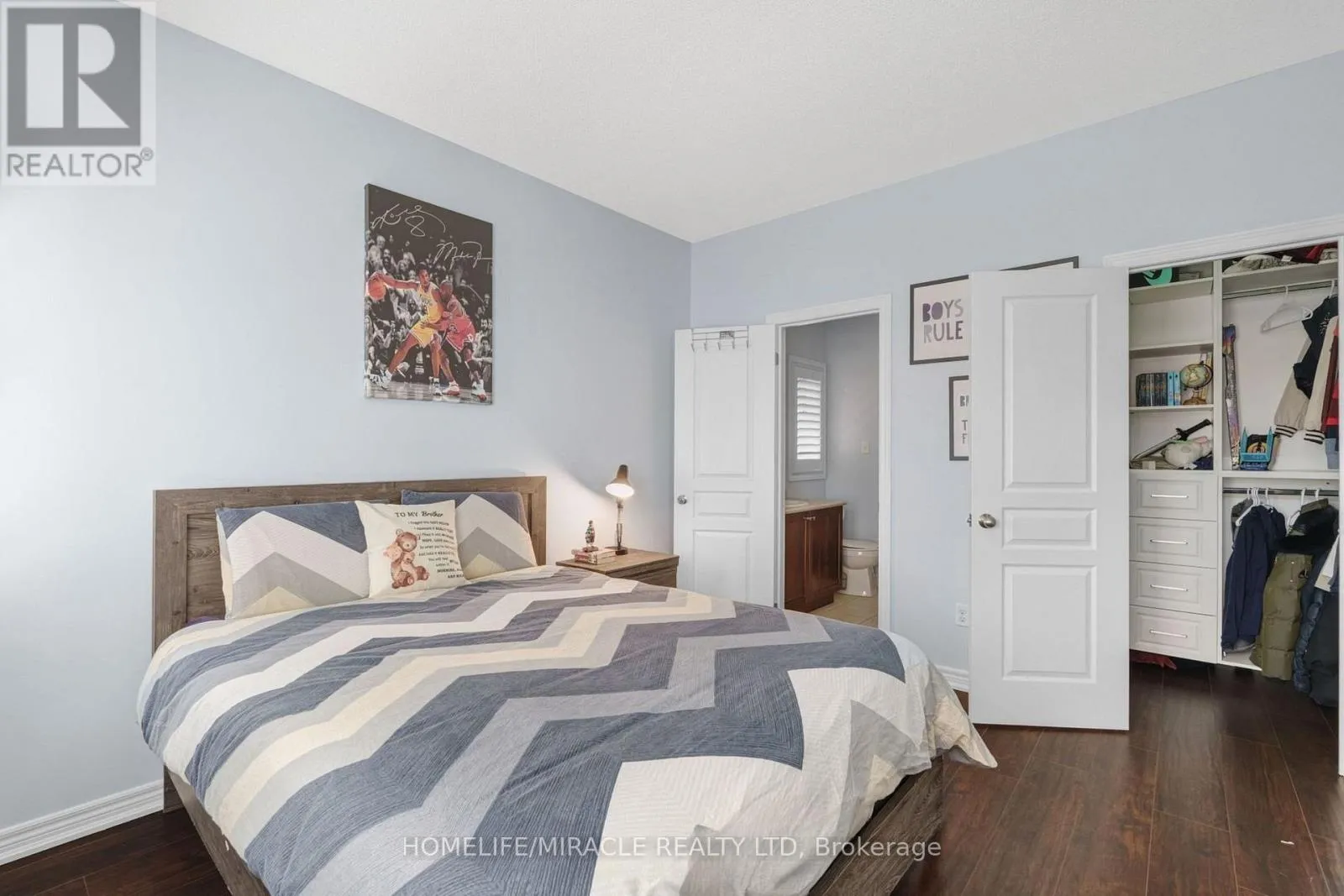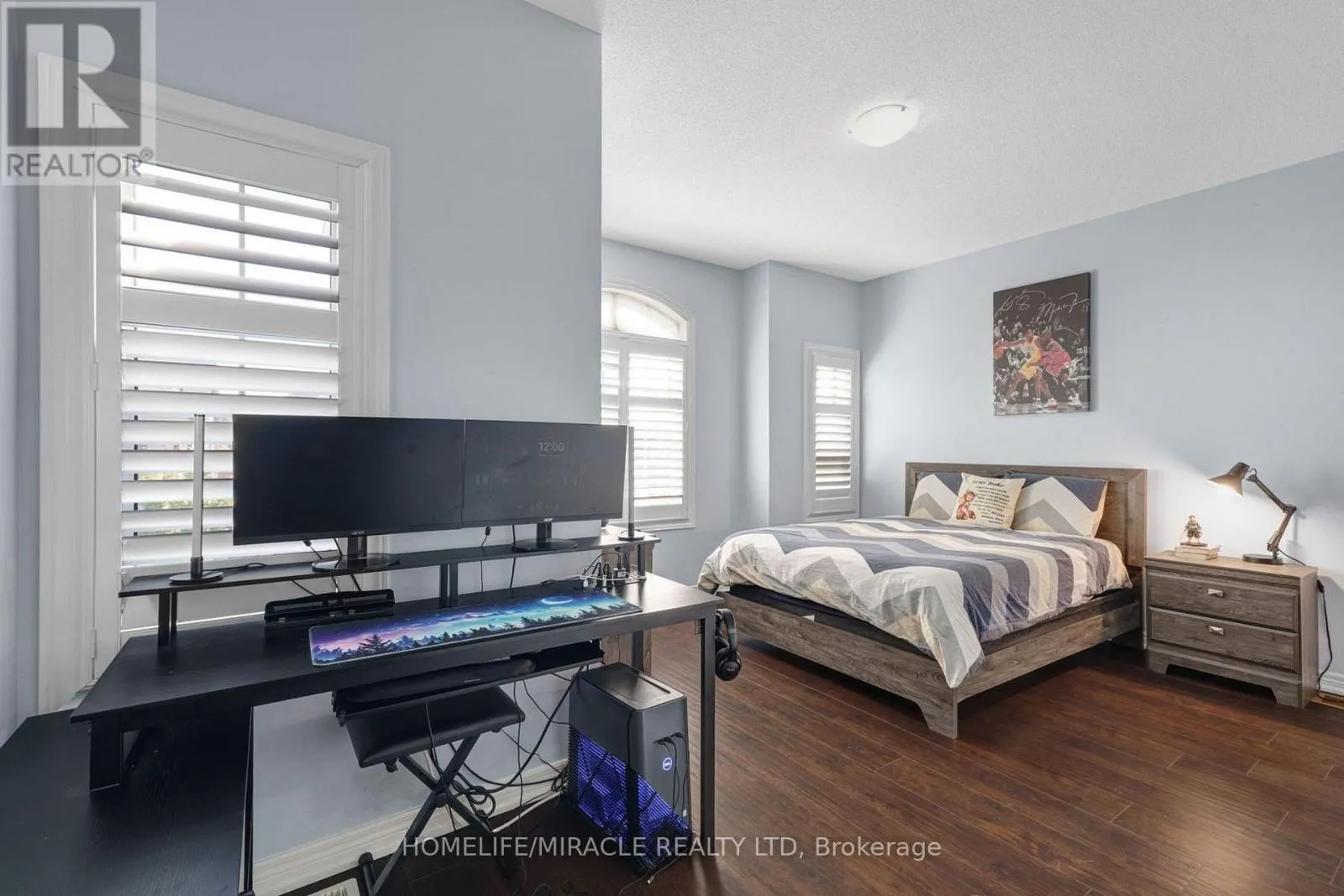 Queen/Chinguacousy Welcome to this beautiful home located in the highly sought-after Credit Valley community. The main floor features a spacious living and dining area ideal for entertaining, along with a bright open-concept family area with a cozy fireplace. The spacious kitchen offers stainless steel appliances, a center island, and ample cabinetry, making it perfect for both everyday living and hosting. Hardwood flooring throughout the main level, paired with an elegant oak staircase with wrought-iron pickets, completes the refined main-floor design. Upstairs, the spacious primary suite is a true retreat, highlighted by soaring 10-foot ceilings and designed for comfort and privacy. Two additional bedrooms feature their own private ensuites, while the remaining bedroom shares a convenient Jack-and-Jill bathroom. Custom closet organizers are included in every bedroom, complemented by Zebra and California shutters throughout the home. Ideally located just a 3-minute walk to transit, grocery stores, Shoppers Drug Mart, banks, a walk-in clinic, and schools, and only a 7-minute drive to Highway 407, this home perfectly blends style, function, and everyday convenience in one of Brampton's most desirable neighborhoods. (id:27476)