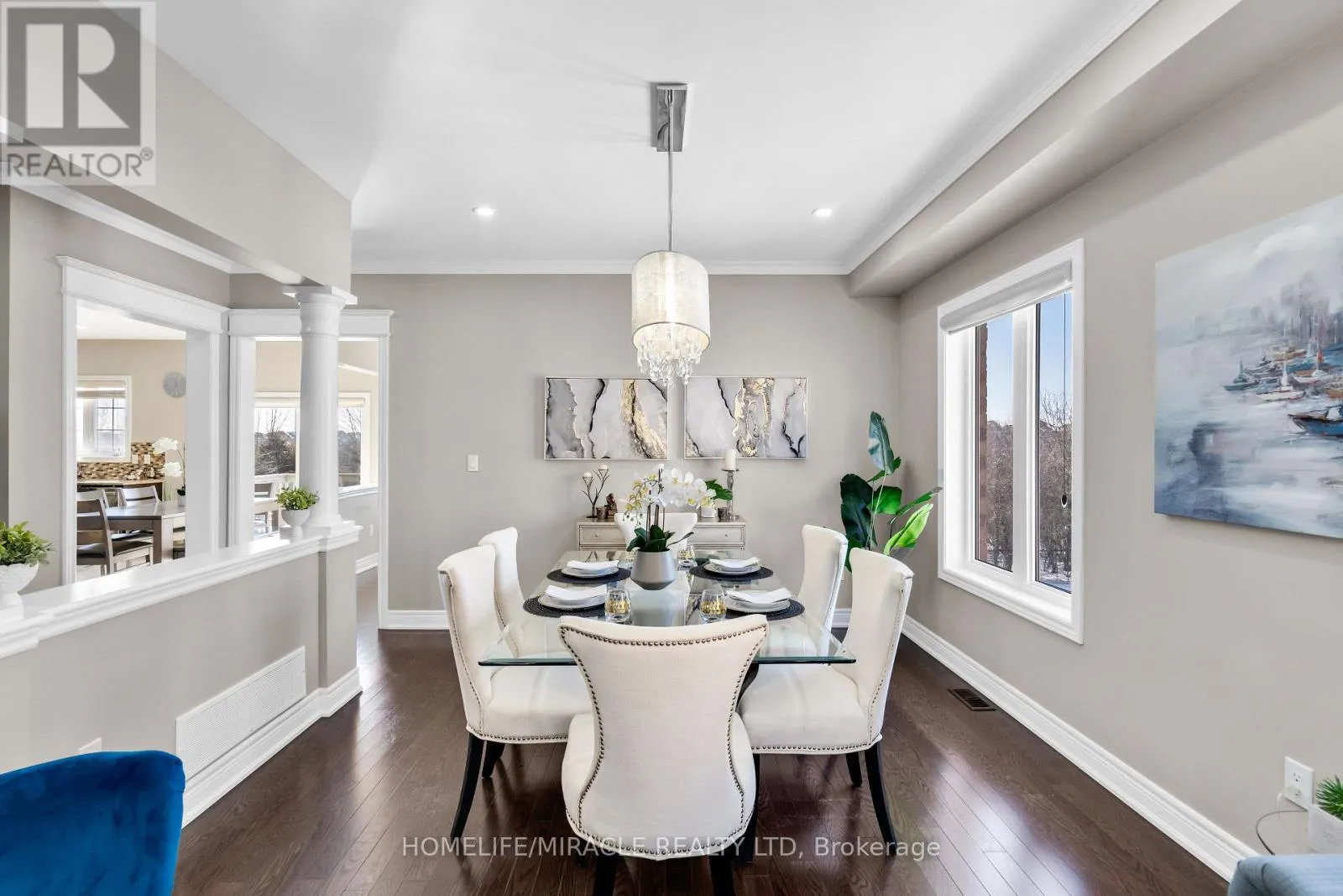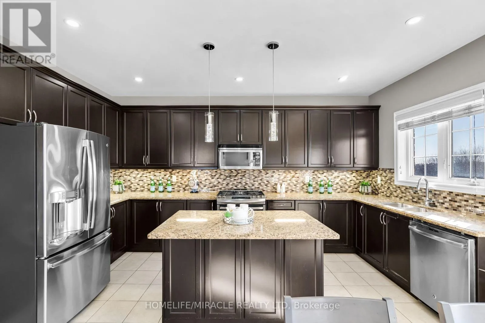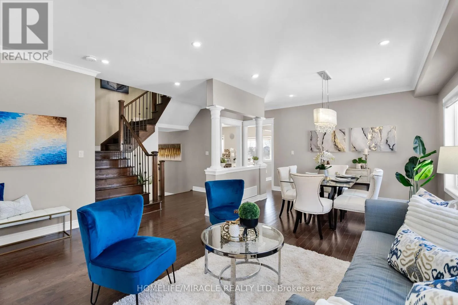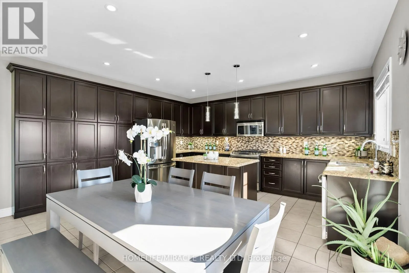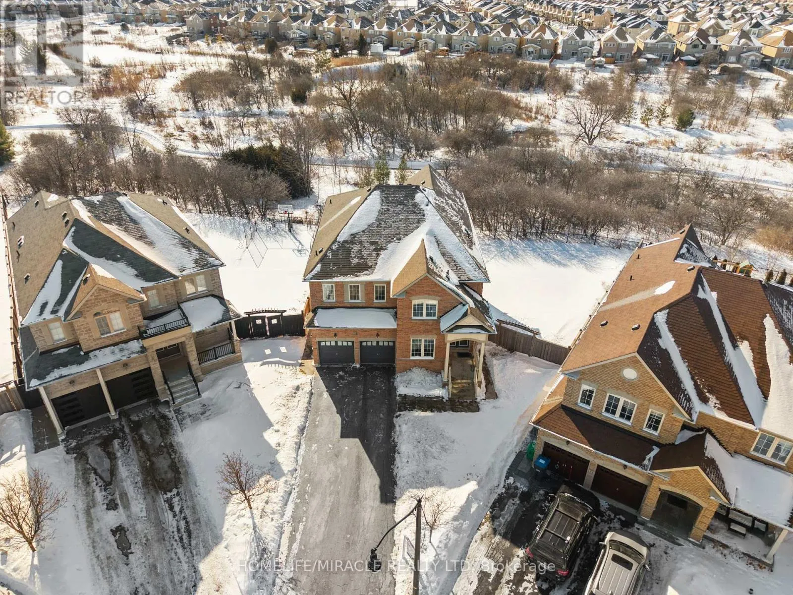 Cross Streets: Hwy 50 / Castlemore. ** Directions: https://maps.app.goo.gl/fJxpLy4cFUorEBhh7. **RARE PIE-SHAPED RAVINE LOT ON A QUIET CUL-DE-SAC WITH LEGAL WALK-OUT INCOME SUITE** Welcome to an exceptional family home tucked away on a quiet, child-friendly court-offering the kind of lot, layout, and long-term value that rarely comes to market. An impressive 110-ft wide backyard, this 5-bedroom, 5-washroom residence delivers space, privacy, and flexibility in one of Brampton's most sought-after pockets, right on the Vaughan border. Built in 2014 and offering approx 3,369 sq ft above grade, the home is thoughtfully designed for growing or multi-generational families, with every bedroom featuring ensuite or semi-ensuite bathroom access. A grand double-door entry opens into a welcoming foyer with smooth ceilings, crown mouldings, and rich hardwood flooring throughout the main level. Enjoy 9-ft ceilings, a gas fireplace in the family room, built-in surround sound, and a versatile main-floor den ideal for a home office or studio. The kitchen serves as the heart of the home, featuring granite countertops, extended dark espresso cabinetry, stainless steel appliances, and an open-concept layout flowing seamlessly into the breakfast and family rooms-perfect for everyday living and entertaining, all while overlooking the ravine-backed yard. Convenient second-floor laundry enhances the home's functional layout. Brand NEW legal walk-out basement apartment (never lived in) offers excellent income potential or in-law suite and includes a separate, owner-accessible area for added flexibility. Additional upgrades include 200-amp electrical service for future expansion and EV charging, plus an energy-recovery ventilation (ERV) system for year-round fresh, energy-efficient air circulation. With no sidewalk, ample parking, potential for a future garden suite, and close proximity to top-rated schools, parks, transit, shopping, Gore Meadows Community Centre, and major highways (407 & 427), this is a rare move-up opportunity that truly checks every box (id:27476)