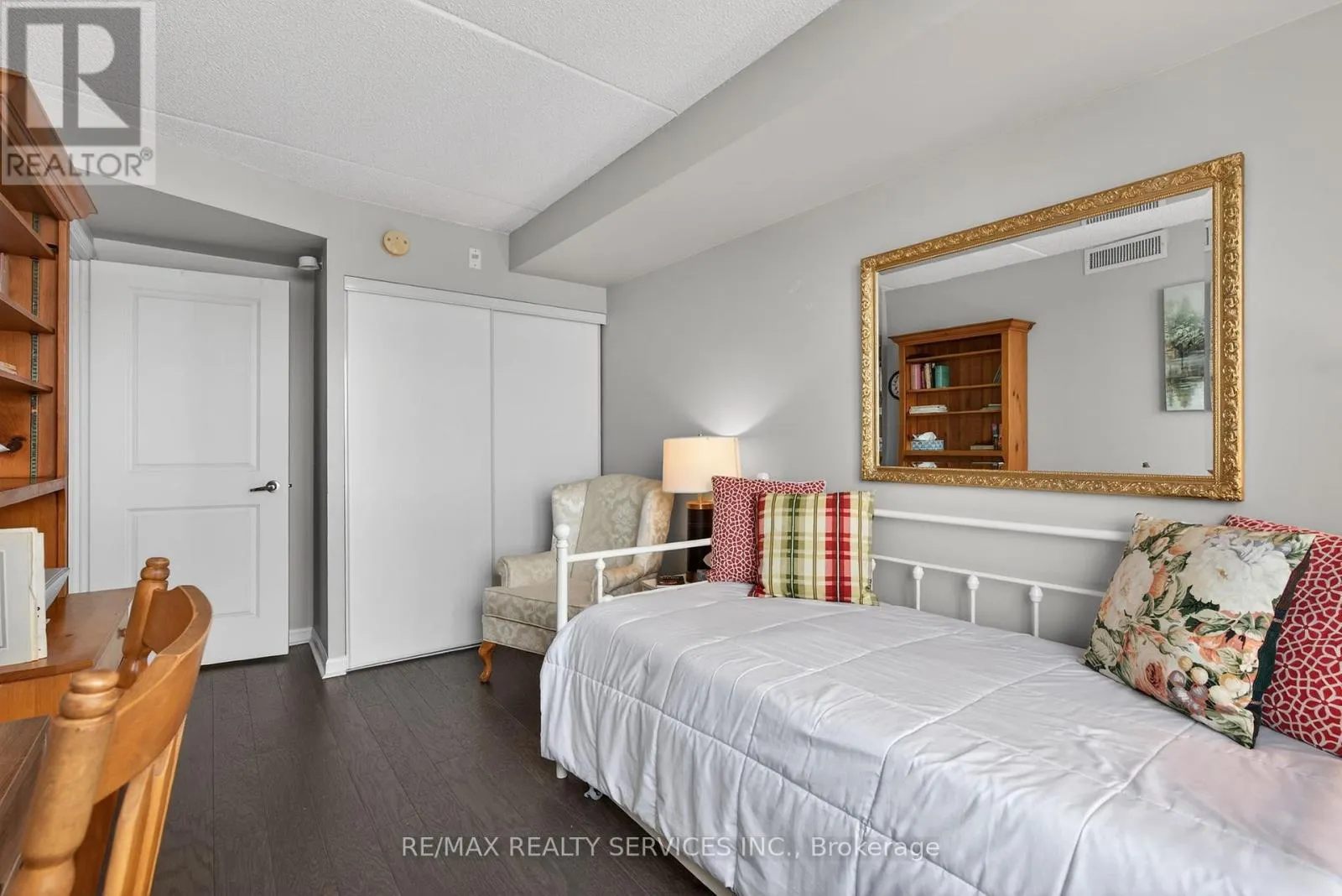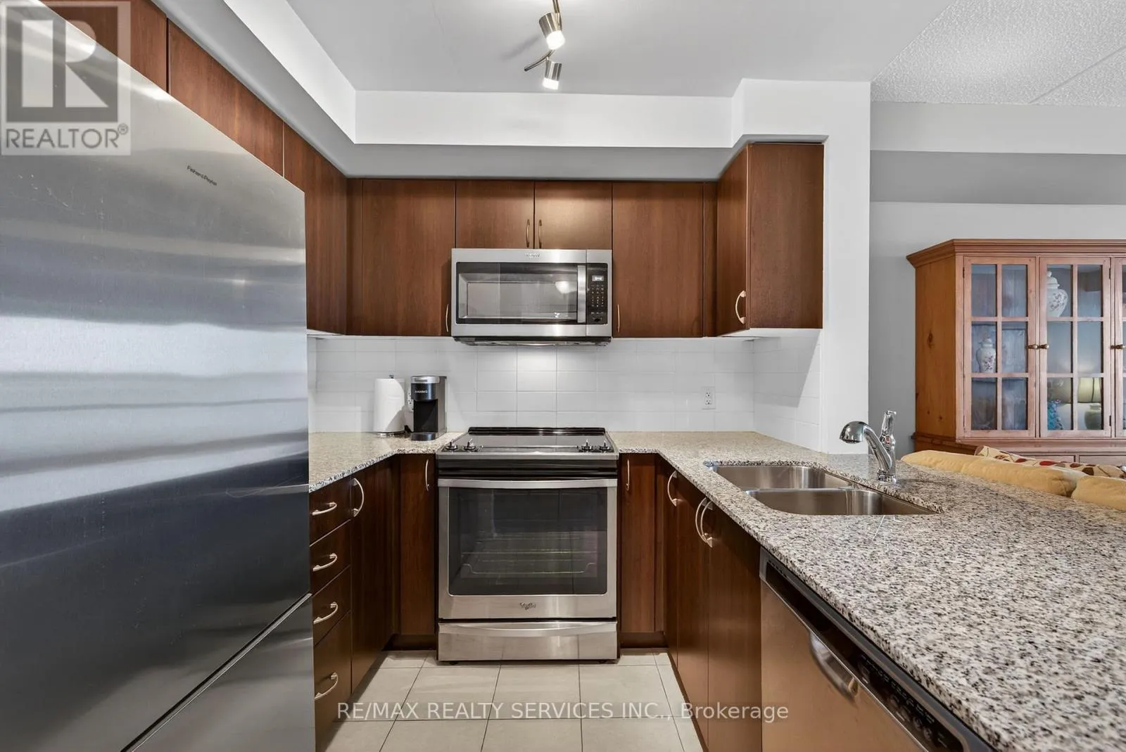 Sandalwood/HWY 410 Welcome to Rosedale Village, Brampton's prestigious, gated, adult lifestyle community designed for comfort, convenience and vibrant social living. This beautifully maintained third-floor apartment in the Freemont building offers the perfect blend of elegance and low-maintenance living, ideal for those looking to simplify their life without compromise. The bright and spacious 790 sq. ft. suite features desirable Western exposure, for stunning sunset views from your large private balcony, accessible from both the living room and primary bedroom. The thoughtfully designed layout offers two bedrooms, a shared four-piece bathroom, along with a welcoming combined living and dining area, perfect for entertaining or quiet evenings at home. The apartment showcases elegant, engineered hardwood flooring throughout, while the modern kitchen is equipped with granite countertops, quality wood cabinetry, stainless steel appliances and a convenient pantry for additional storage. Enjoy true worry-free living with maintenance fees that include snow removal, along with added convenience of underground parking, so you never have to clear snow from your vehicle, plus a private underground storage locker for seasonal items and extra belongings. Residents enjoy exclusive access to a private 9-hole golf course and clubhouse, featuring regular social events and community gatherings. Exceptional amenities include tennis and pickleball courts, lawn bowling, shuffleboard, scenic walking paths, a fitness centre and the peace of mind provided by gated entry with security guard. Experience the perfect balance of active adult living, community connection and carefree comfort in this sought-after adult lifestyle community. (id:27476)