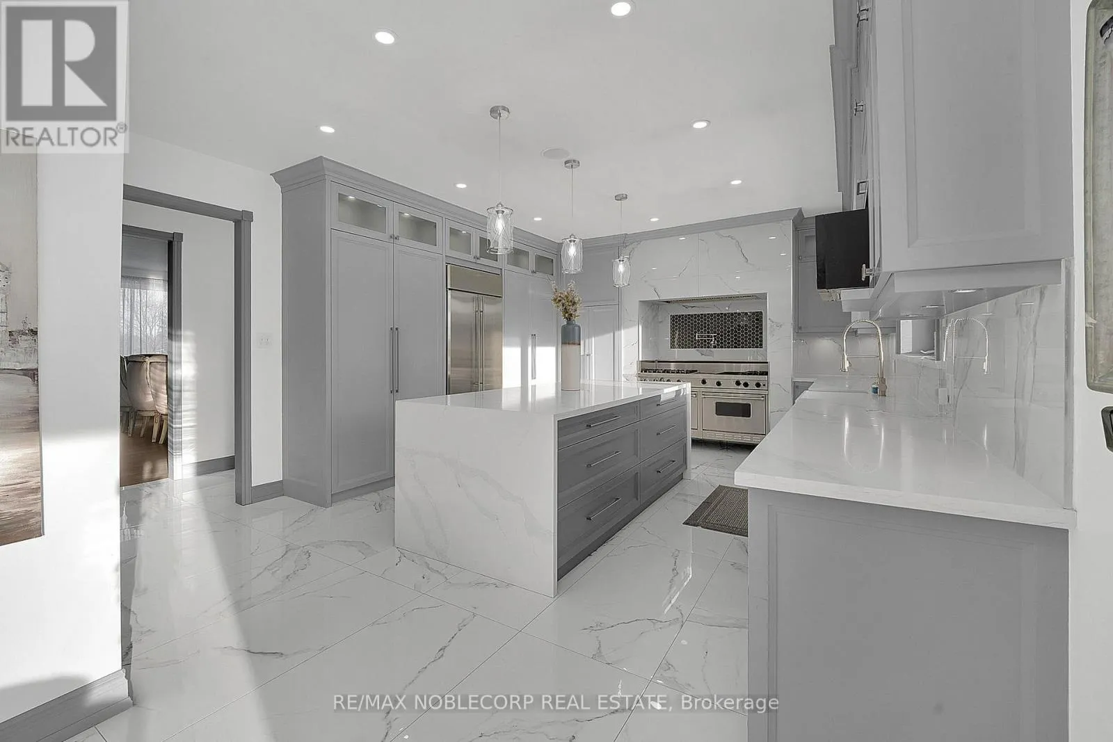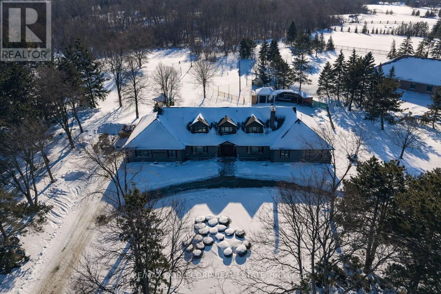 Cross Streets: Mcvean Dr & Countryside Dr. ** Directions: Take McVean Dr. to Bowman Ave. Privately set on over 2 acres in the Castlemore Estates, this residence backs onto a conservation reserve, offering exceptional scale, privacy, and versatility. Spanning 9,631 sq ft of total living space, the home features expansive living areas with engineered hardwood flooring, custom wainscoting, coffered ceilings, and multiple fireplaces. The main kitchen is thoughtfully finished with quartz countertops and backsplash, a waterfall island, high-end appliances, and pot lighting. The lower level includes a second kitchen, wet bar, sauna, and flexible space ideal for entertaining or long-term guests. Large windows throughout fill the home with natural light and frame views of the surrounding grounds. Outdoor amenities include a tennis court, inground pool, cabana, landscaped grounds, irrigation system, exterior lighting, and an interlock patio. A circular driveway provides generous parking and completes the estate setting. (id:27476)