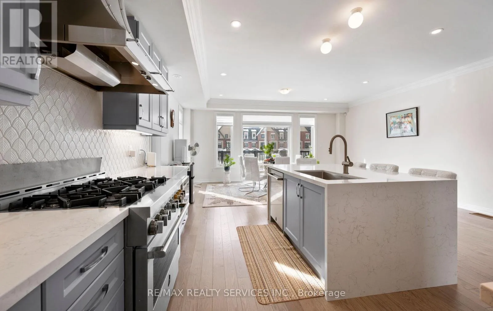 Cross Streets: Mississauga Rd & Bovaird Dr. ** Directions: Mississauga Rd/Bovaird Dr. Brand new less than a year old bright and spacious upgraded end unit townhome with a double car garage offering approximately 2300 sq. ft. of modern living space in the sought-after area of Northwest Brampton located just a few mins away from the Mt pleasant go station. Loaded with premium builder upgrades, this home features smooth ceilings, crown molding throughout, and custom window coverings. The open-concept main floor showcases a chefs kitchen with a large center island, high-end JennAir appliances with a gas stove, and a built-in microwave, flowing seamlessly into the living and dining areas with walk-out to a private balcony. Upgraded oak staircases with iron pickets enhance each level. Upstairs, the primary bedroom includes a large walk-in closet, 4pc spa like en-suite and access to a second private balcony. Two additional bedrooms share a full bath, and the convenient upper-level laundry completes the home. Located in a desirable, well-connected neighbourhood-move-in ready and not to be missed!!!! (id:27476)