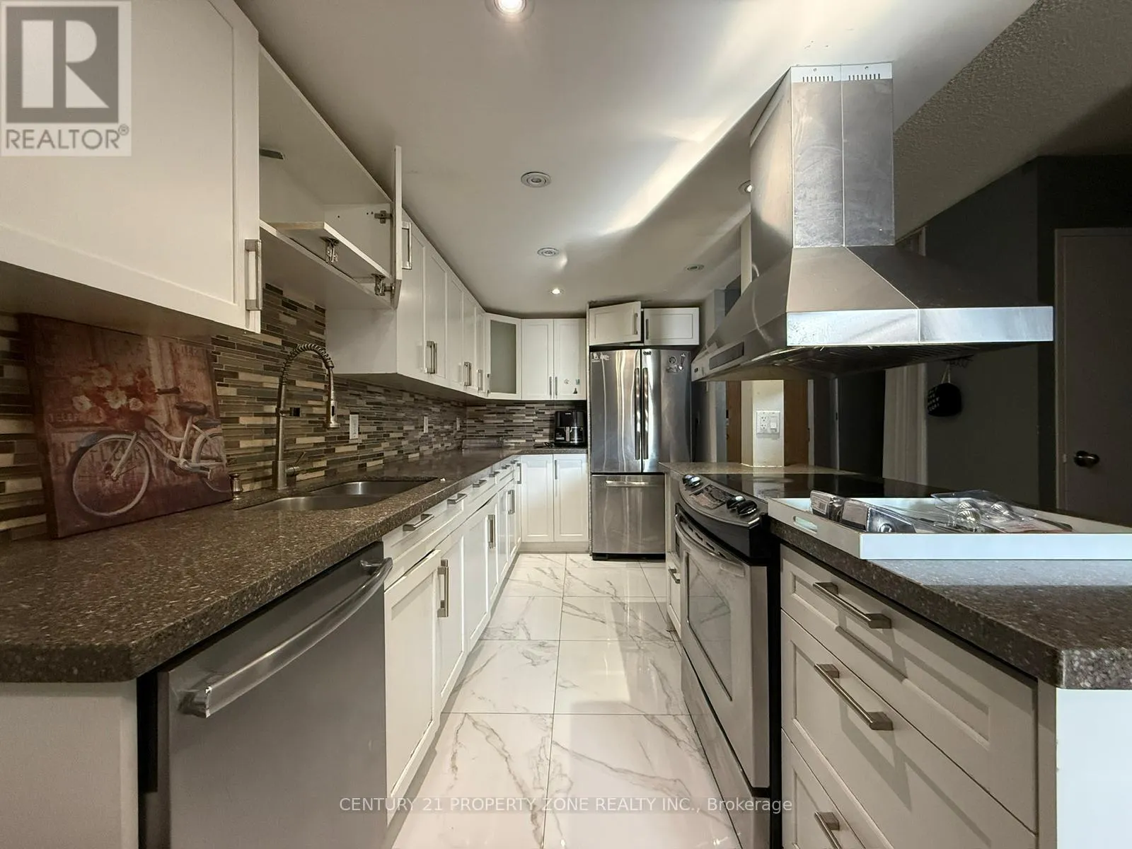 Queen St / Dixie Prime location! Nearly 1,400 sq. ft. of beautifully renovated, model-condo-style living. This bright, sun-filled unit features a spacious living room with walk-out to an oversized balcony offering spectacular park and pond views. The updated kitchen boasts modern cabinetry and stainless steel appliances. Three generously sized bedrooms with large windows provide abundant natural light. Conveniently located just steps to Bramalea City Centre, plaza, transit, and amenities. Low maintenance fees include all utilities. Includes an ensuite locker and is pet-friendly. A rare combination of space, style, and view. (id:27476)