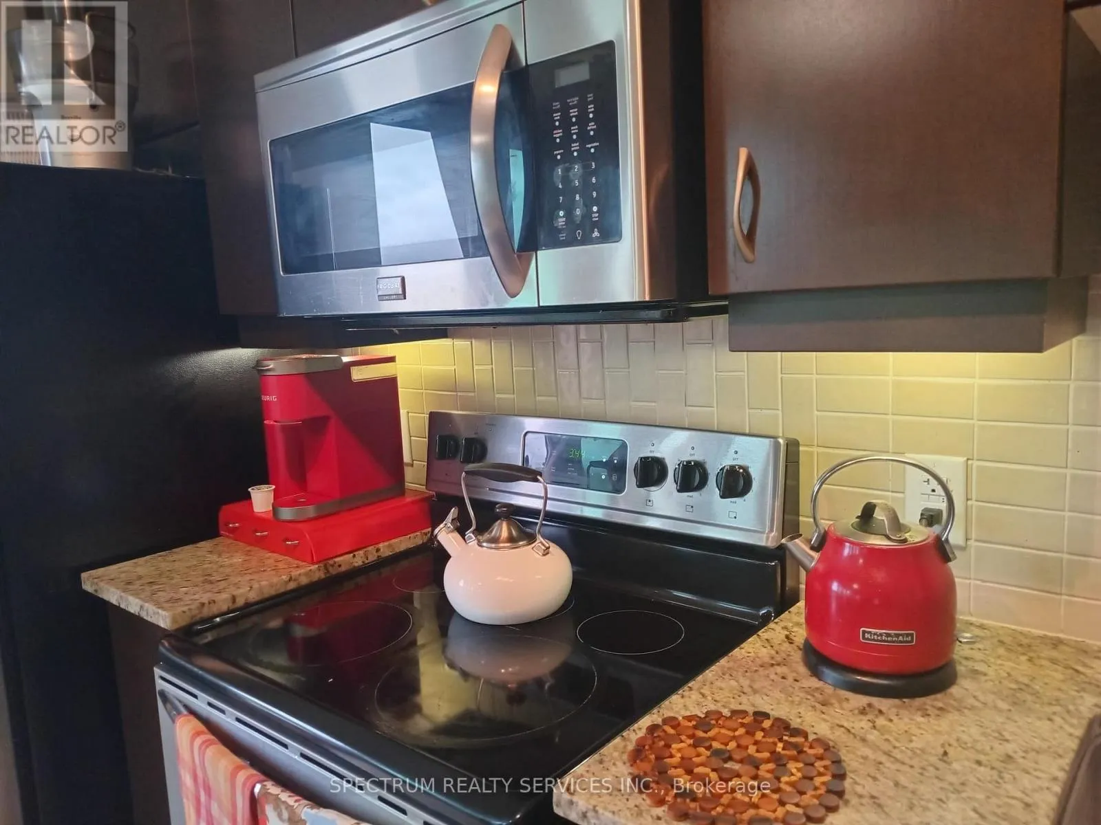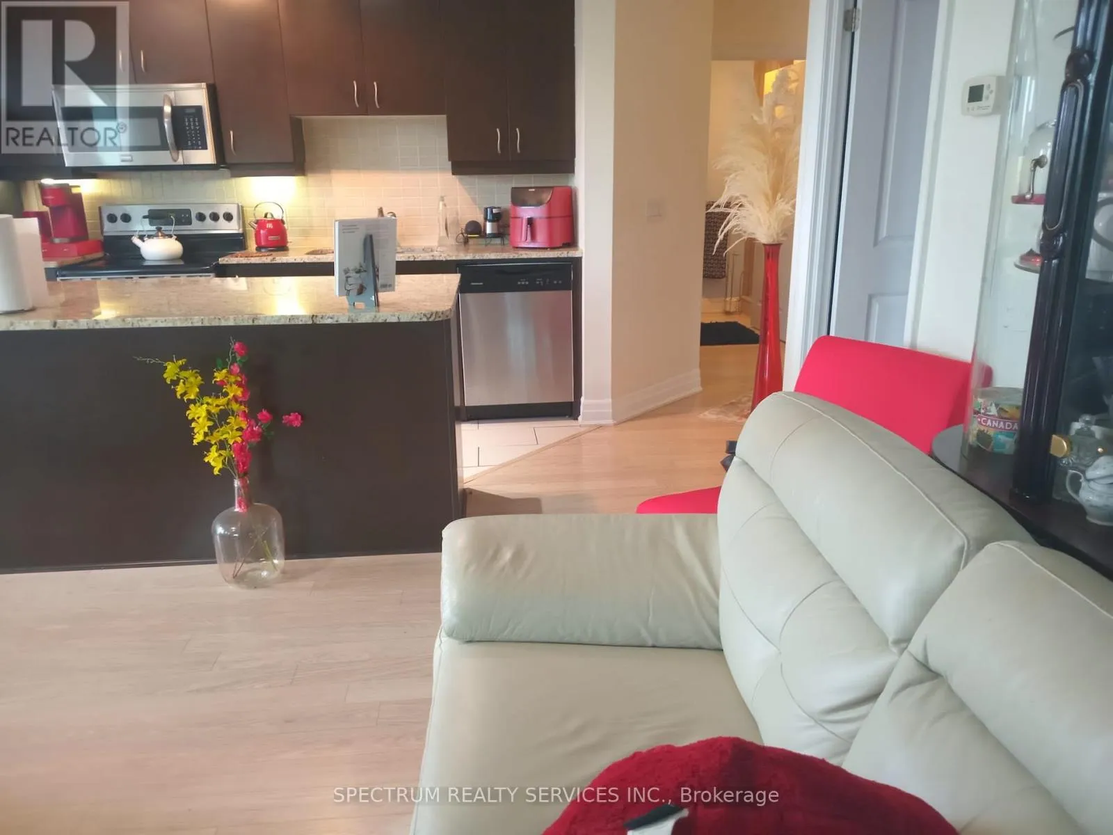Queen & James Amazing Opportunity**Unit Condo Approximately 1200 Sq Ft Features 2 Bedrooms, 2 Bathrooms Stunning Sun-Filled Solarium With Sliding Doors** Modern Spacious Luxurious Space** Renovated & Modern Kitchen, Sleek Ceramic Countertops, Contemporary Cabinetry, Pot Lights, New Flooring, Oversized Primary Bedroom With Large 4 Piece Ensuite. Modern Living Room And Dining Room. Walk-Out To Balcony Overlooks Green Space, Walk-In Closet And Large Windows. The Other Bedroom Is Sun-Filled With Large Closets. Nestled In The Highly Sought-After Downtown Brampton, This Condo Offers Sunny North West Exposure Ready For Your Enjoyment, With An Impressive Selection Of Amenities Including A Meeting/Party Room, Gym, Guest Suite, Visitor Parking, Concierge And Close To GO Trains. (id:27476)