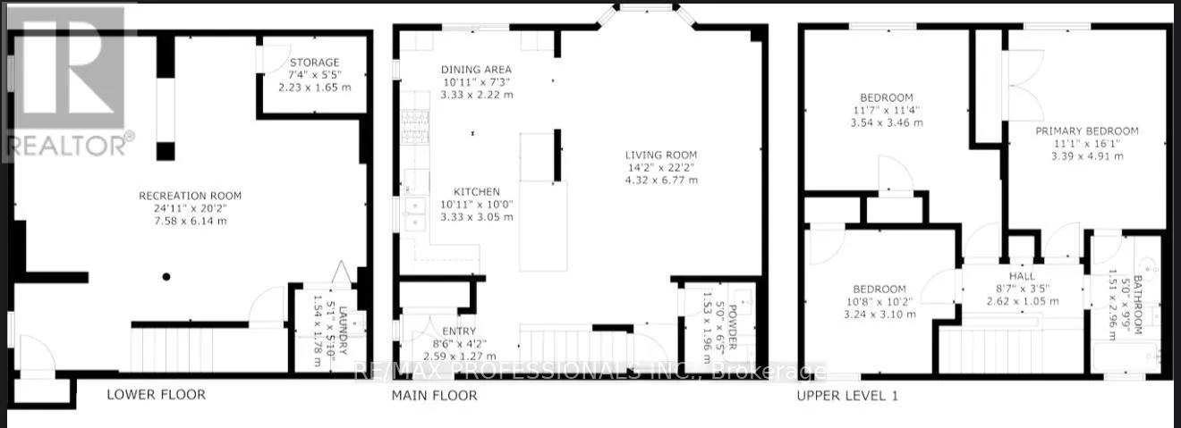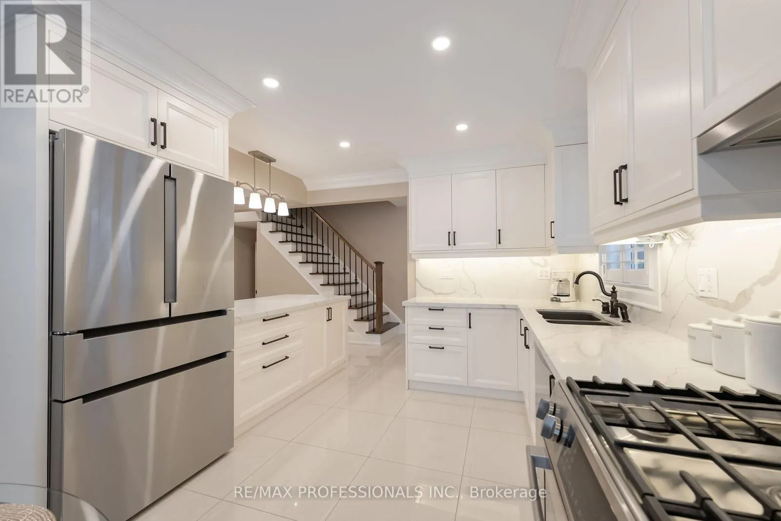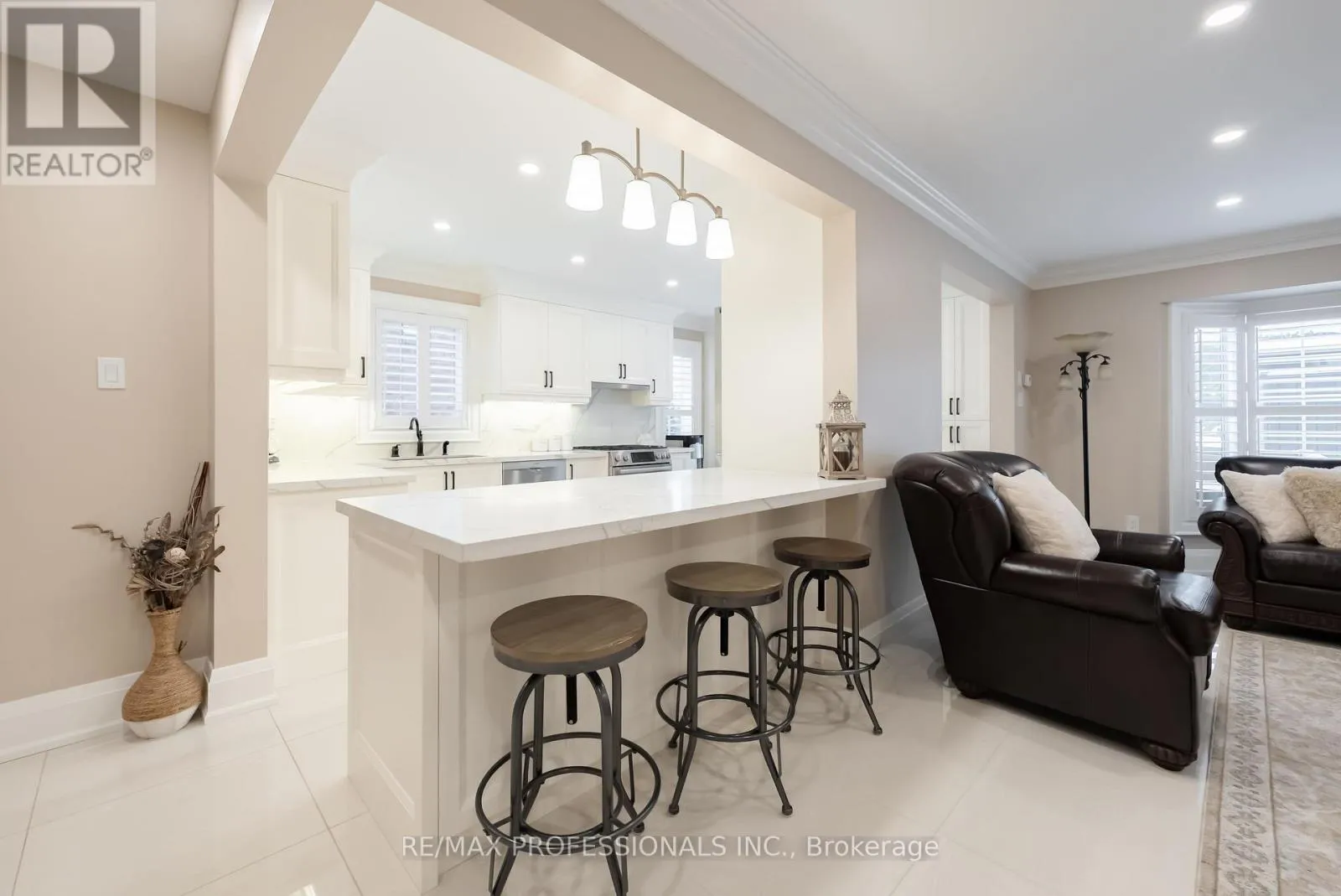 Cross Streets: Sandalwood Pkwy/ Bramalea. ** Directions: Sandalwood Pkwy/Bramalea. Turn-key/newly renovated *end unit/ freehold townhouse in desirable neighbourhood with 3 car parking. This unique, all-brick townhouse features an excellent layout with functional living space- no wasted square footage, and widens to 34 Feet! - must see* The main floor was completely renovated in 2022, featuring an open concept kitchen/ living area. 24" porcelain tile flooring throughout, Quartz countertops + backsplash with large island with breakfast nook, high quality/custom *Bespoke kitchen- with dovetailed birch plywood cabinetry*, all Bosch appliances (+gas range), new trim and crown moulding, new staircase and bannister, new front and back door, new powder room, pot lights, california shutters throughout with large bay window overlooking yard. *New electrical on main and lower level + much more! Upper level features 3 great size bedrooms with large closets. Primary bedroom features semi-ensuite access to the main 4 piece washroom. The lower level is equipped with brand new/durable (2025) *luxury vinyl flooring throughout, new stair cap + risers, new pot-lights and freshly painted, large closet/storage areas, laundry room + cold room under porch. The exterior upgrades include concrete pad walkway (2023) from front to back, custom deck (2020), and enclosed front porch (2022), private 3 car length driveway + more. Excellent location in a family friendly neighbourhood & great school district. Easy /walking access to many amenities featuring grocery, eateries, pharmacy, walk-in clinic, parks and more. Quick access to highway and transit* - Move in and enjoy! (id:27476)