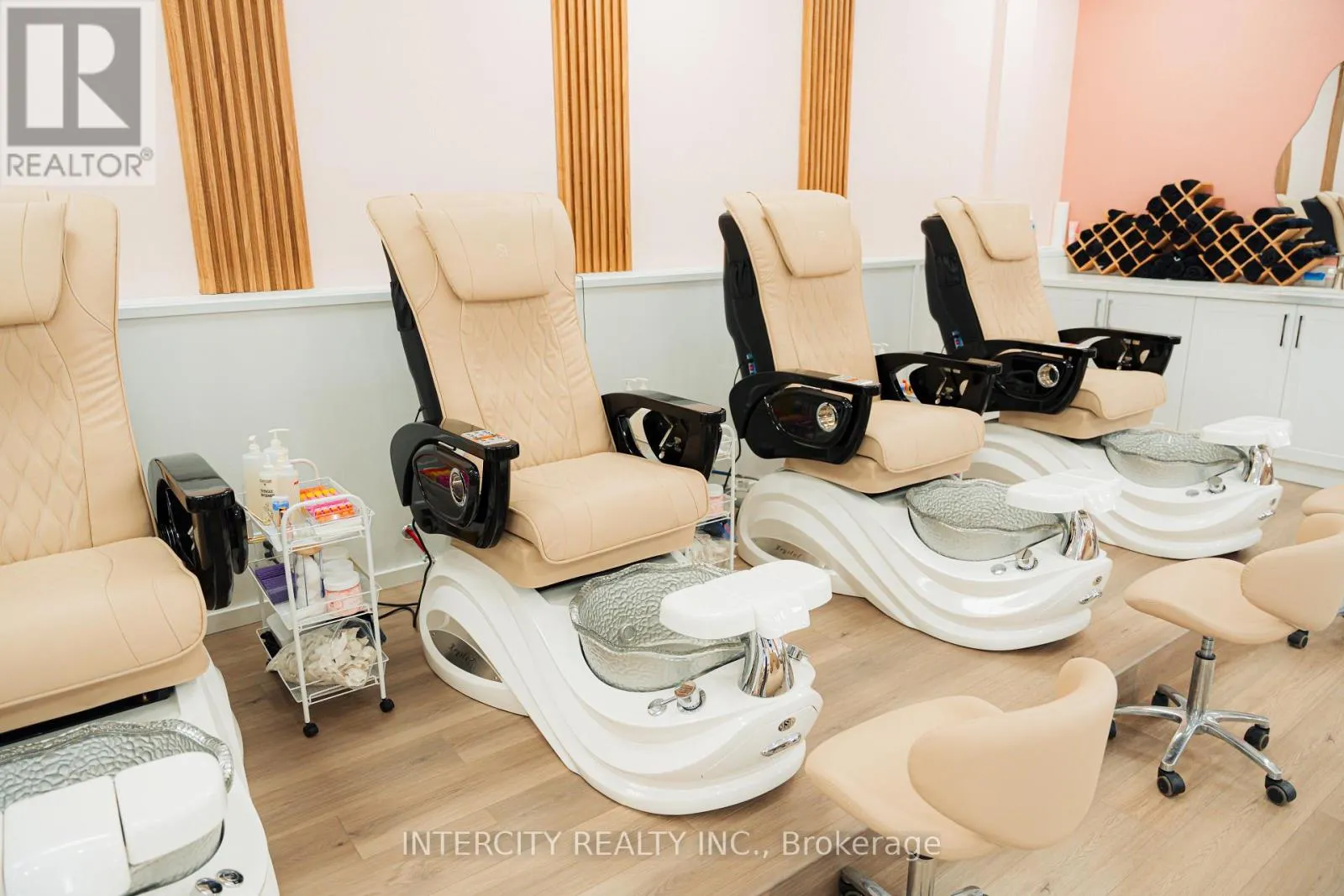 McVean Dr & Mayfield Rd Turnkey Nail & Beauty Salon in Prime Location! Well-established, fully equipped salon featuring 8 nail stations, 6 pedicure chairs, and 1 private treatment room. Additional glass beauty cubicle currently rented at $1,000/month providing steady supplemental income. Modern interior with stylish reception area, professional equipment, kitchenette with laundry, staff storage, and washroom including AODA-compliant facility. All furniture, fixtures, and equipment included. Dual entrances with ample free parking. Located in a high-traffic area surrounded by new developments, offering strong walk-in exposure and loyal clientele. Trained staff may stay for smooth transition. (id:27476)