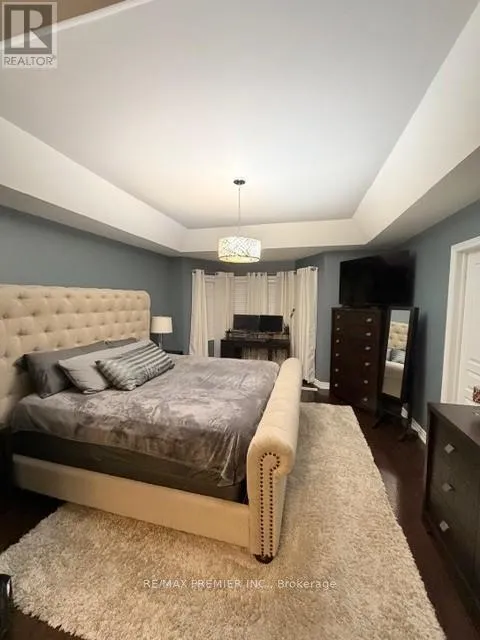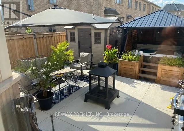 Cross Streets: JAMES POTTER RD & BONNIE BRAES. ** Directions: JAMES POTTER RD - BONNIE BRAES - KIMBROUGH HOLLOW. Welcome to this beautifully landscaped semi-detached home offering approximately 1,766 sq. ft. of thoughtfully designed living space with stylish, designer finishes throughout. From the moment you step inside, you'll appreciate the hardwood flooring, bay windows, and tasteful accent walls that create a warm and inviting atmosphere. The main level features a cozy electric fireplace, a separate dining room ideal for entertaining, and an open-concept kitchen overlooking the breakfast area, family room, and outdoor living space. Abundant storage and direct access to the garage add everyday convenience.The upper level was smartly converted from four bedrooms to a spacious three-bedroom layout, complete with an oversized laundry room with sink and ironing station. The generous primary retreat easily accommodates a king-sized bed with night tables on the same wall, while the extended bay window provides the perfect space for a home office or lounge. A coffered ceiling with an extended 9-foot feel enhances the sense of space, a generous sized walk-in closet, and the ensuite offers both a separate shower and a relaxing soaker tub. Two additional bedrooms provide excellent flexibility for a growing family, guests, or work-from-home needs. Enjoy your morning coffee or evening unwind on the private balcony off the third bedroom.The finished lower level adds even more living space, featuring laminate flooring, a large recreation room, and additional area suitable for a bedroom, gym, or hobby space. A built-in fishtank adds a calming focal point, while ample storage and a cold cellar complete the level. Enjoy the convenience of the new 3-piece bath that is plumbed but requires connection. Step outside to your backyard oasis, fully finished with concrete flooring, a hot tub under a gazebo, dedicated cooking area, and an oversized shed - an ideal setting for relaxing or entertaining year-round. (id:27476)