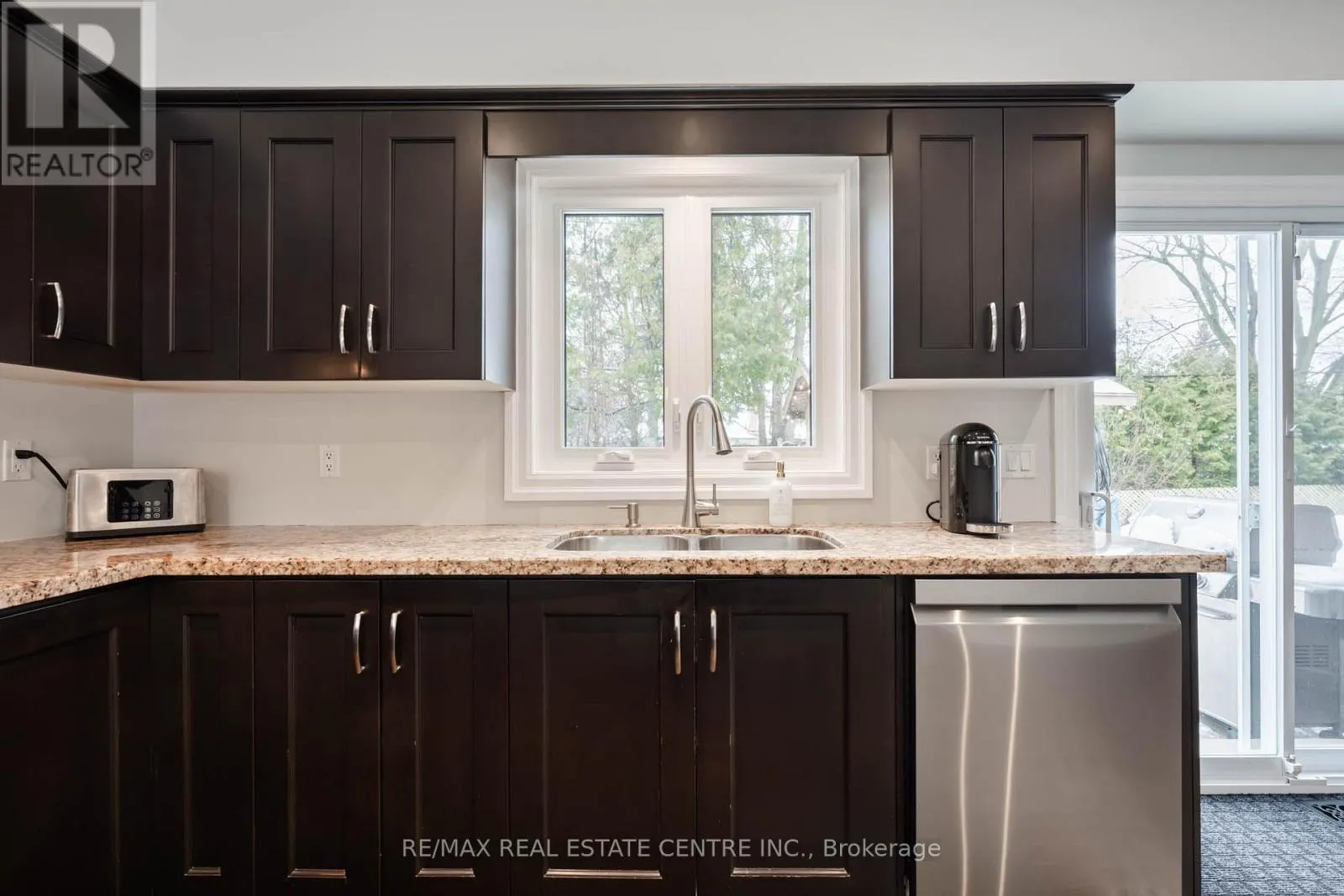 Harold St to Treleaven Drive "Treleaven Haven" at 35 Treleaven Dr puts you on a quiet, mature, tree-lined street in Downtown Brampton, where the setting feels tucked away, but you stay close to everything. Parks and trails sit nearby, with the Etobicoke Creek Recreational Trail and Fletcher's Creek just a short walk away. Inside, this tastefully modernized, move-in ready 3+1 bedroom detached home offers 3 bathrooms, large windows, and tons of natural light over hardwood and ceramic floors. The remodeled kitchen keeps everyone together with a generous peninsula, stone counters, and smart storage. Recent improvements include updated flooring, counters, vanities, tile, lighting and plumbing fixtures, and modern hardware. Upstairs, the spacious primary gives you double closets, and the additional bedrooms work for kids, guests, or a home office. Downstairs, the finished basement adds real flexibility with a large rec room, a fourth bedroom, laundry, and a 3-piece bath with large shower. Use it for guests, teens, a home office, or your next project space. The home offers 2000 sq ft of finished living space with a layout that works for first-time buyers, growing families, and downsizers alike. Out back, your 78-foot-wide lot turns into a private summer hangout with an in-ground saltwater pool, cabana, and a clean, professionally finished yard. The full-size glass garage door to the backyard makes pool days easy and doubles as a flexible summer space. And when you want to get around, you can leave the car at home. You are a short walk or drive to the Brampton Downtown GO Station, close to rapid transit routes, and minutes to shops, dining, and everyday essentials in the Downtown core. (id:27476)