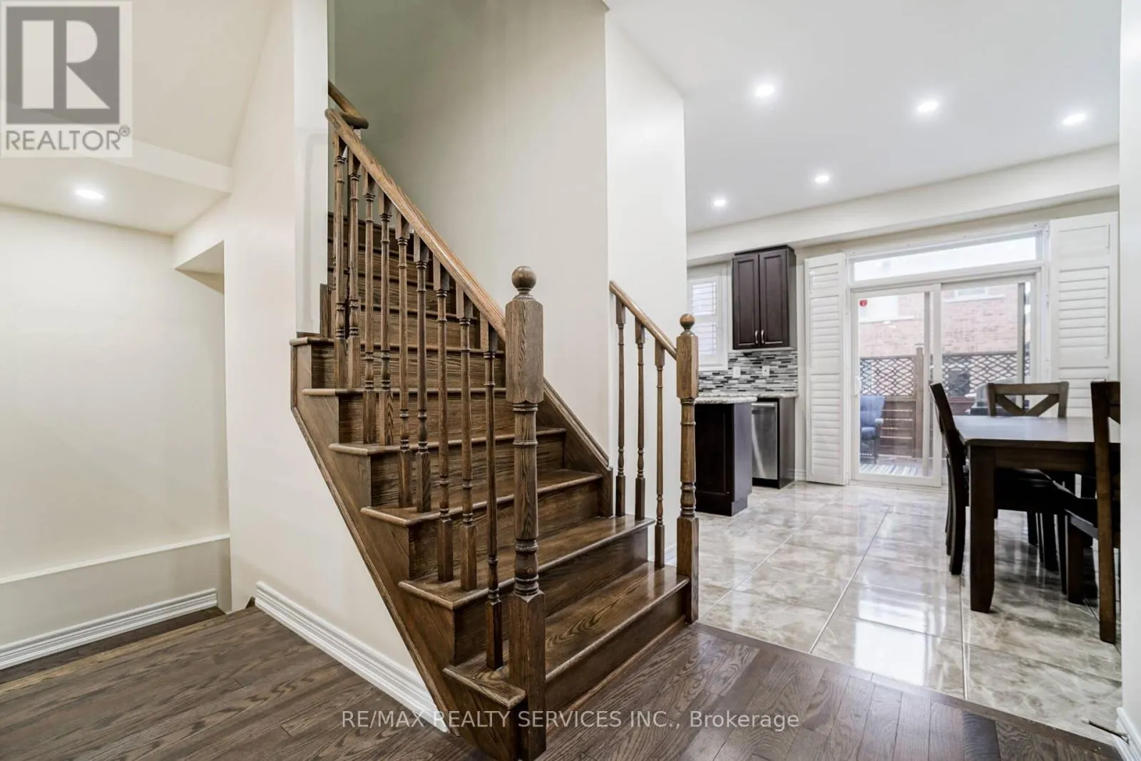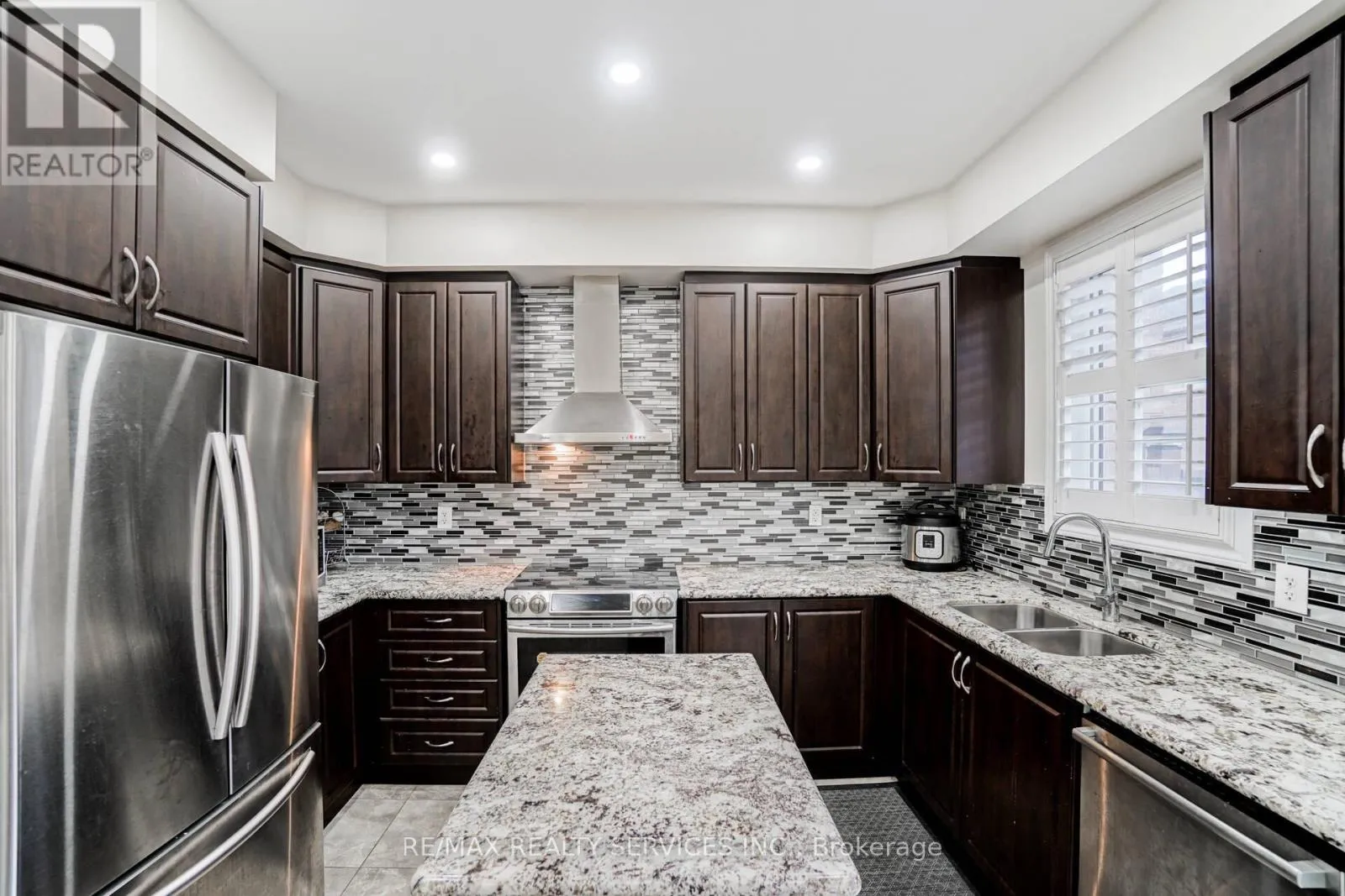 The Gore Rd & Ebenezer Move in Now! Experience luxury living in this beautifully upgraded 3-bedroom end-unit townhome located in a prime Brampton East neighborhood. This carpet-free home features a well-designed open-concept living and dining area, a convenient 2-piece powder room, and an entertainer's kitchen with a center island, granite countertops, stainless steel appliances, and a breakfast area with walk-out to a large private deck-perfect for morning coffee or summer BBQs. The upper level offers three spacious bedrooms, including a luxurious primary retreat with his-and-hers walk-in closets and a private ensuite, along with a second full bathroom-providing two full bathrooms upstairs-and the added convenience of upper-level laundry. The bright walk-out basement features an open-concept recreation room, ideal for a home office, gym, media room, or additional living space. The backyard has been upgraded with concrete (photos are from before the upgrade, no grass now), creating a sleek, low-maintenance outdoor area with no grass or landscaping required-perfect for entertaining friends and family. Prime Brampton East location with excellent access to highways, public transit, parks, community centers, shopping, restaurants, and religious centers-an unbeatable choice for families and commuters alike. (id:27476)