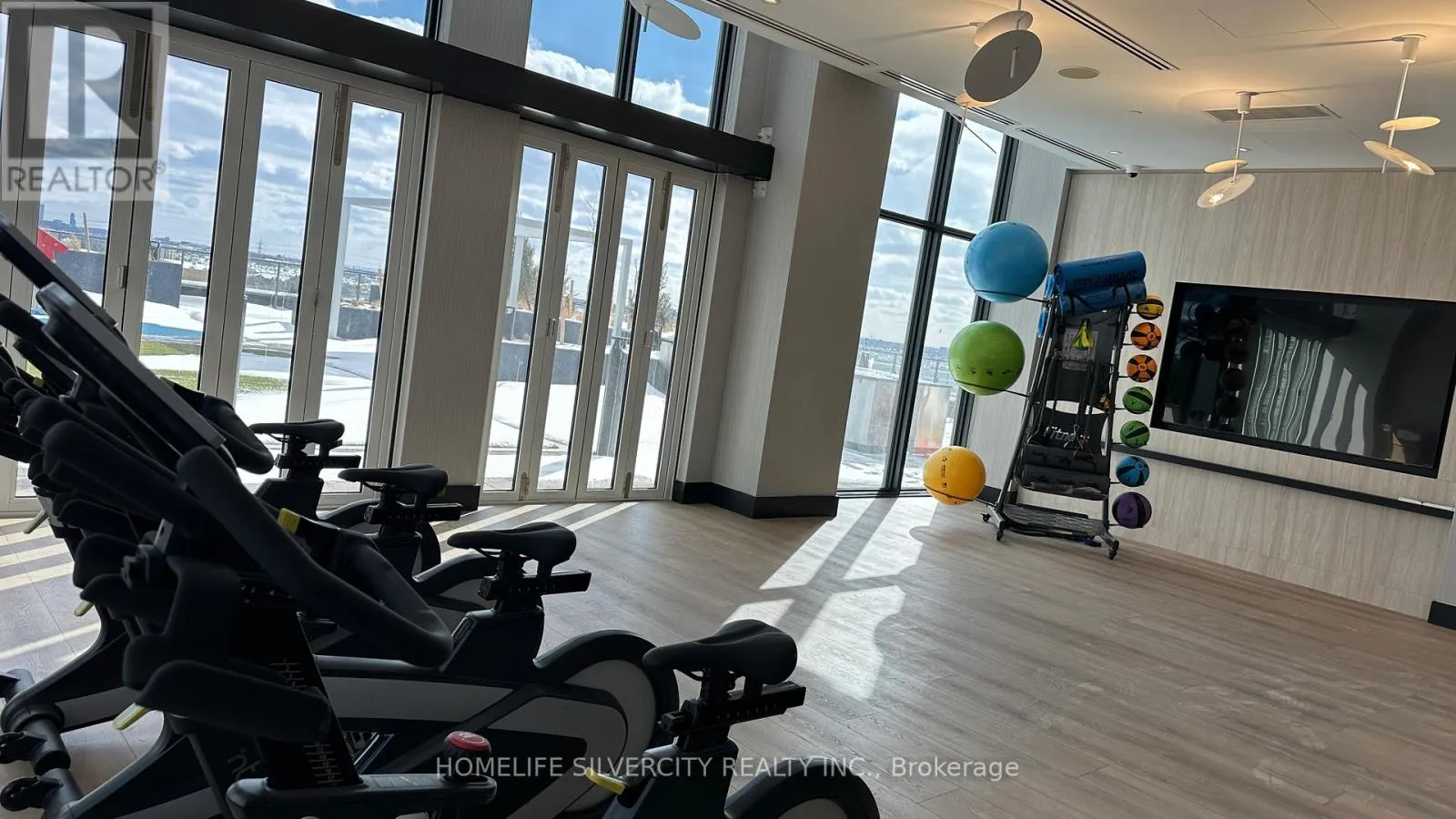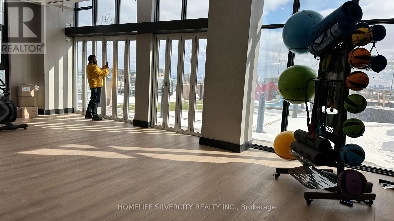 Steeles Ave E / Hurontario 1+1 bedrooms, 2 full washrooms, parking, locker included in this beautiful,condo apartment near Shoppers World. Bright and spacious with open floor plan, with 9 ft ceilings, floor to ceiling windows, clear view from bedroom and balcony, a modern kitchen with stainless steel appliances, laminate flooring throughout, ensuite laundry, and plenty of natural light. Access to locker, rooftop terrace, fitness centre, and other facilities, as well as 24-hour security and a party room. Conveniently located across from the Brampton Bus Terminal and close to Brampton gateway terminal. (id:27476)