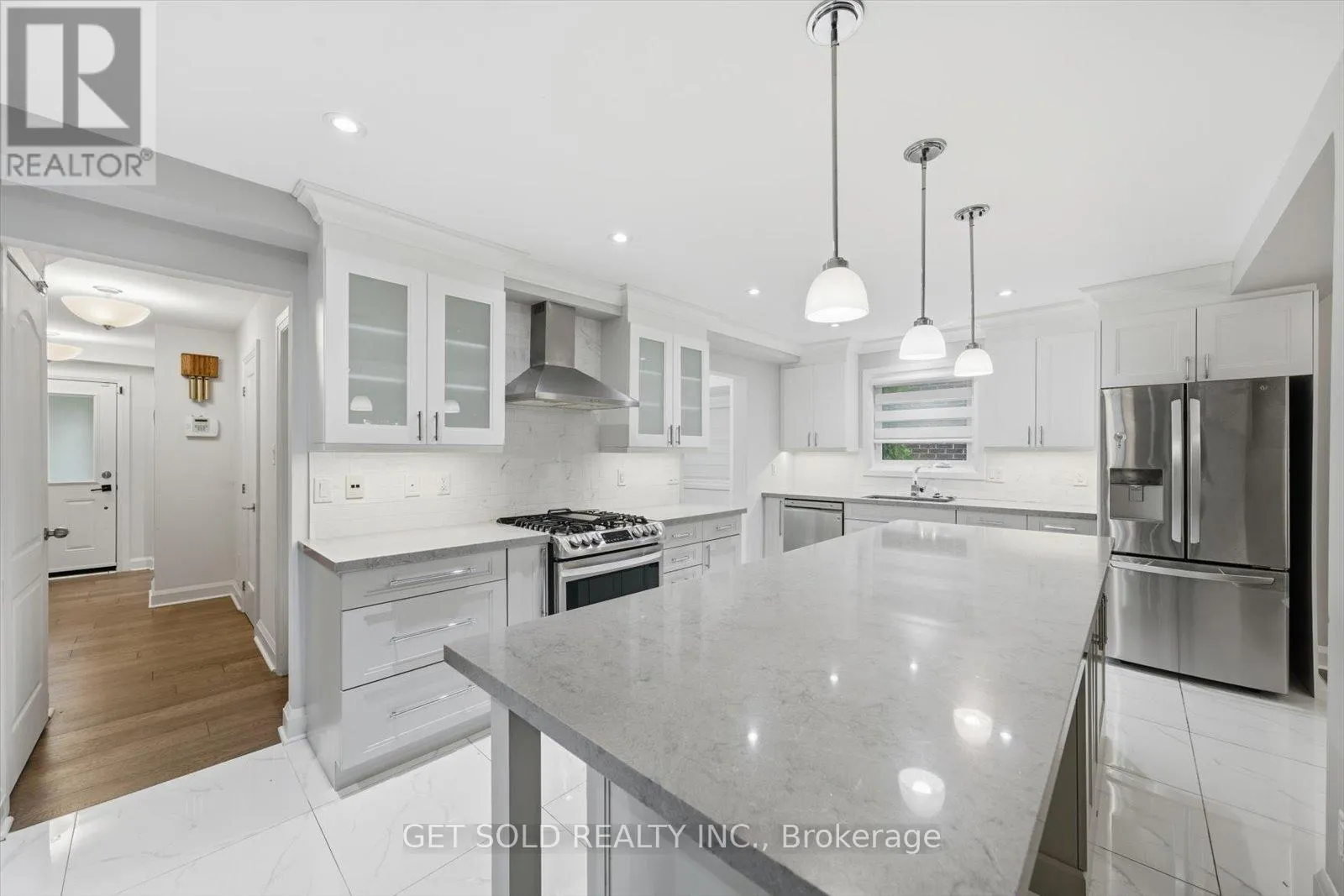 Mill St S / Wellington St W Experience refined living in this renovated detached home nestled in the heart of Downtown Brampton. Offering over 2,380 sq ft above grade plus a 3-bedroom finished basement apartment, this spacious residence blends modern finishes with thoughtful design. Step inside to hardwood flooring, and elegant pot lights that enhance the home all throughout. The chef inspired kitchen boasts quartz countertops, a massive island, and porcelain tiles, seamlessly flowing into the sunlit family room with a cozy brick fireplace and walkout to a landscaped backyard complete with a garden shed. Upstairs, you'll find three generously sized bedrooms, each with walk in closets. The primary suite is a serene retreat with a spa-like 5-piece ensuite and a massive walk-in closet. The finished basement offers a separate entrance, a modern second kitchen, 3-piece bathroom, and three additional bedrooms, ideal for in-laws, a nanny suite, or rental income. Located steps from parks, the GO station, Gage Park, local shops, and Brampton's vibrant arts and culture scene, this home combines urban convenience with peaceful residential charm. Power of Sale, being sold "where is, as is". (id:27476)