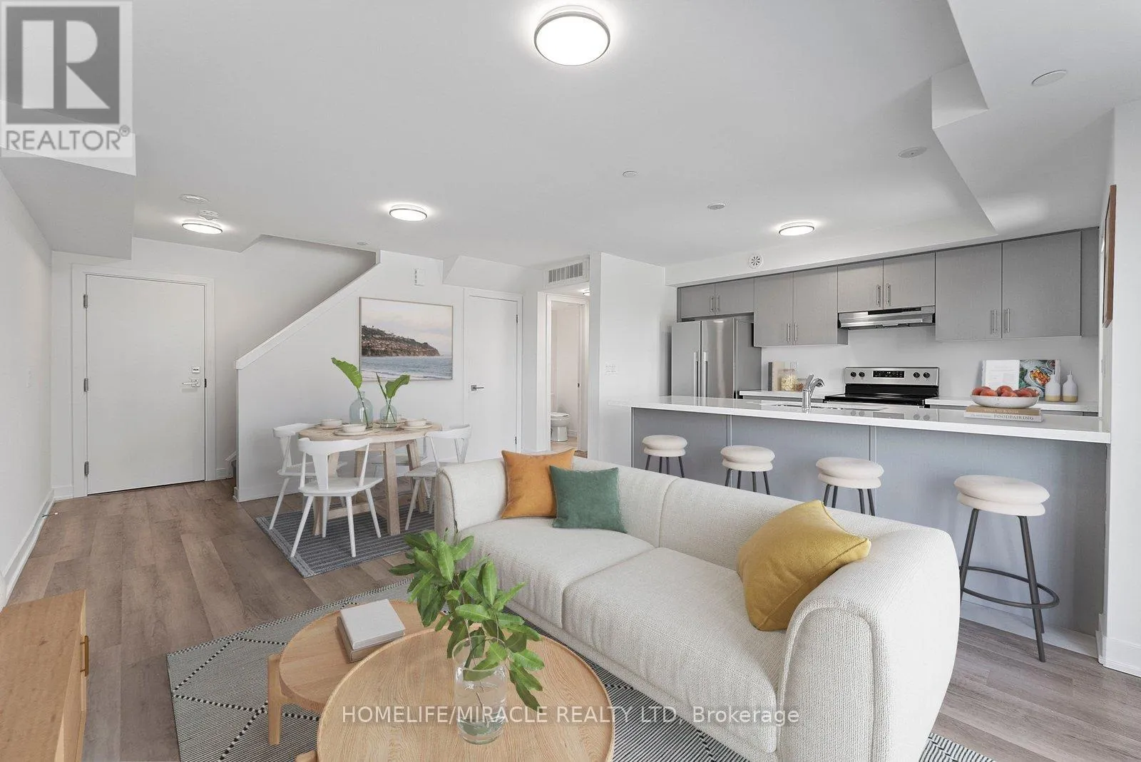 Mississauga Rd. & Sandalwood Pk. Discover this stunning modern townhouse featuring a stylish brick exterior and a bright, open-concept layout with 2 bedrooms, 2 bathrooms. The contemporary kitchen is equipped with quartz countertops and stainless steel appliances, while the private balcony offers a lovely spot to relax and enjoy the view. Located in a highly sought-after neighborhood, this home is close to banks, daycare, shopping plazas, Mount Pleasant GO Station, schools, soccer fields, and parks everything you need just minutes away! An ideal choice for first-time buyers, downsizers, or anyone seeking a low-maintenance lifestyle in a vibrant, family-friendly community. (id:27476)