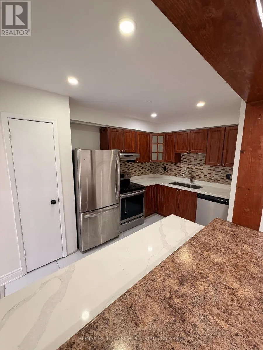 Kennedy Road/ Centre Street Welcome to this bright and well-kept 3-bedroom, 2.5-bathroom townhome backing onto a beautiful ravine lot. The main floor features a modern kitchen with a breakfast bar and an open living and dining area filled with natural light. Step out onto the balcony and enjoy peaceful views of Etobicoke Creek. All bathrooms have been recently renovated, and the entire home has been freshly painted, giving it a clean and updated feel. The lower level offers a finished recreation room, laundry area, and a 3-piece bathroom, with a walk-out to a private fenced backyard. A great home for anyone looking to enjoy nature while still being close to everyday amenities, schools and tranist. (id:27476)