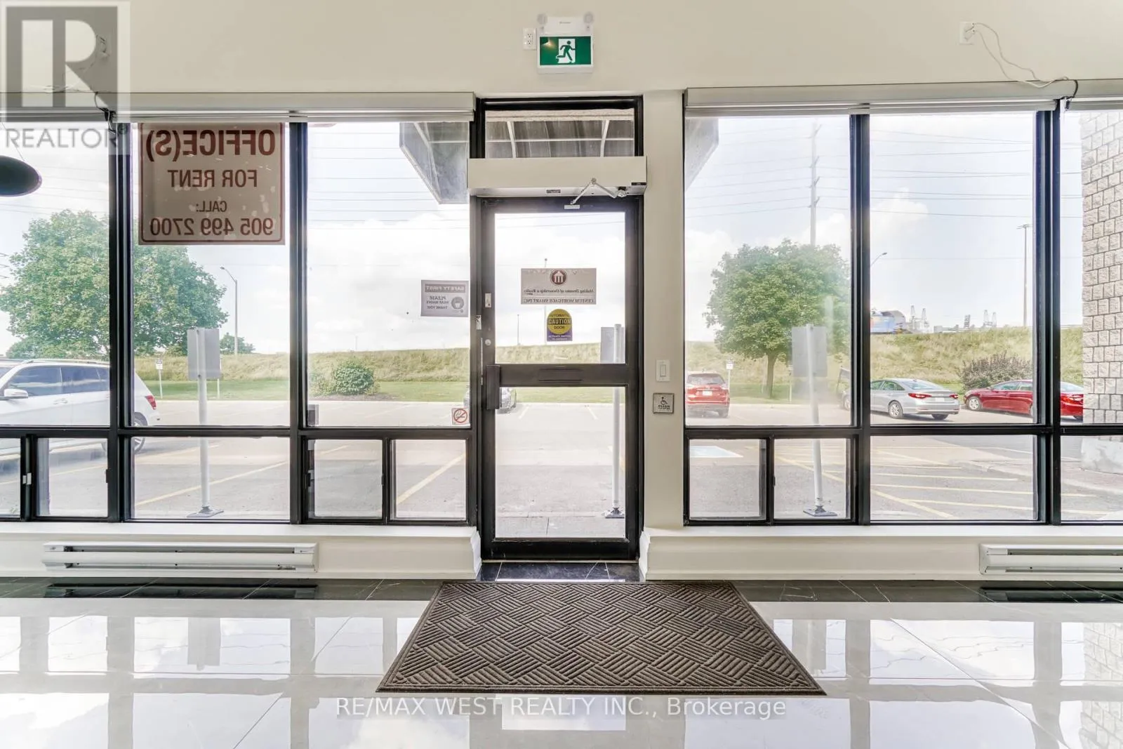 Cross Streets: Steeles Avenue East & Torbram Road. ** Directions: Immediately south of Steeles Avenue East on the West side of Torbram Road. Beautiful contemporary-designed main-floor office space for lease. This is a private office offered within a shared professional workspace, ideal for accountants, lawyers, paralegals, insurance brokers, mortgage brokers, financial advisors, immigration consultants, real estate brokers, logistics companies, and other service-based professionals. The impressive lobby features 20-foot ceilings and a comfortable waiting area, creating a strong first impression for clients and visitors. Tenants have access to two furnished boardrooms, two kitchenettes, three washrooms including one accessible washroom, and shared common areas. Located in the Steeles and Torbram area of Brampton, this office space is situated in a highly accessible and well-connected business hub with excellent access to highways, and public transportation. The plaza provides plenty of parking for tenants and visitors, and the surrounding area offers a variety of restaurants and cafés for added convenience. (id:27476)