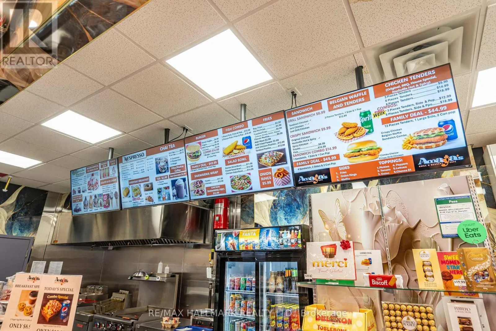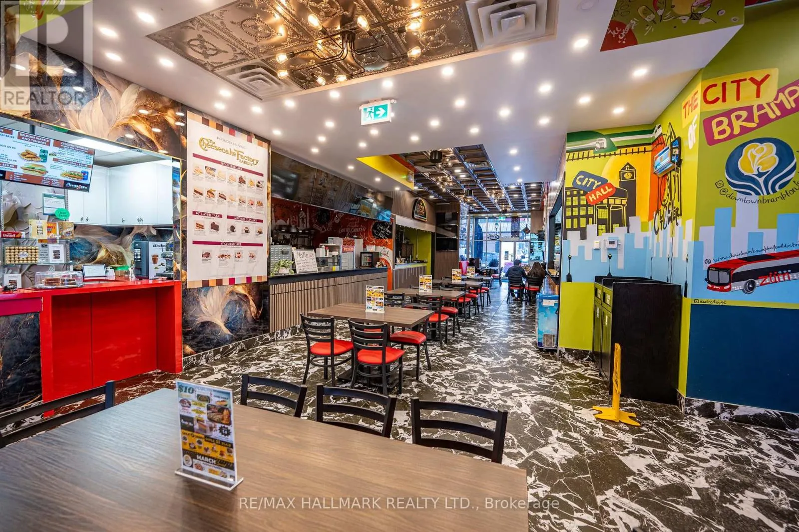 Queen St West and Main St North Premier investment opportunity to lease a high-profile food hall unit within the Downtown Brampton Food District. Located at 27 Main Street North, this centrally positioned venue is a recognized culinary destination known for its diverse mix of established brands and popular local food offerings. The landlord has invested over $75,000 in capital improvements for Unit #3 alone, creating a high-quality, turnkey space ideal for immediate operation. The food hall features a curated lineup of successful food and beverage concepts, including Amaya's Grill & Dessert Café, Gelato Factory, and Nespresso Coffee, generating consistent foot traffic and strong brand recognition. A major highlight is the license to serve Cheesecake Factory baked goods, allowing the operator to offer world-famous desserts and signature items such as the iconic 10-layer cake. In addition, a license to serve Shaw-branded ice cream is also available. Both licenses may be negotiated for transfer with the existing tenant, providing exceptional brand value and revenue potential. An additional opportunity exists to acquire lightly used chattels owned by the existing tenant, available through separate discussion. This setup is ideal for an investor or entrepreneur seeking to step into a vibrant, ready-to-operate food environment with minimal startup time. The property benefits from prime downtown exposure and is conveniently located near GO Train transit, Queen Street, major banks, retail shops, the Civic Centre, corporate offices, and other key amenities. With established dessert and grill concepts already in place and its strategic location in one of Brampton's most active commercial hubs, this opportunity is well-positioned to capture steady pedestrian traffic and long-term growth. EXTRAS: Capital improvement is +$75,000 to be discussed (id:27476)