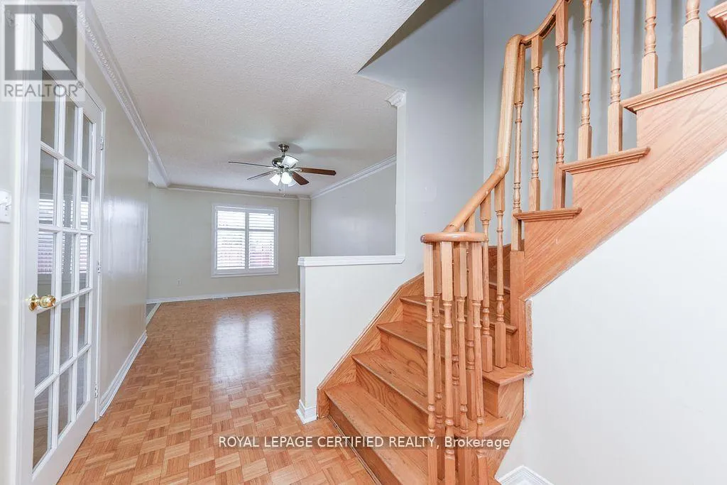 Cross Streets: Sandalwood & Mclaughlin. ** Directions: google map. Welcome to the perfect starter home in the sought-after Northwest Sandalwood Parkway district! This immaculate Freehold Townhome offers the ideal blend of comfort and convenience for first-time buyers and small families. Boasting tons of natural sunlight and parquet flooring throughout (completely carpet-free!), this home is move-in ready. The main floor features elegant crown moulding and a bright, functional layout. Upstairs, you will find three spacious bedrooms, each fitted with ceiling fans for added comfort. The expansive Master Bedroom is a true retreat, featuring two separate closets for ample storage. Need extra space to play or relax? The finished basement offers a cozy recreation room, perfect for a media center or kids' play area. Outside, the extra-wide driveway ensures you have ample parking-a rare find in townhomes! Location: Convenience is at your doorstep! You are walking distance to the Cassie Campbell Community Centre, schools, and lush parks. Commuters will love the quick access to Public Transit and Highway 410. Don't miss this incredible opportunity to enter the market! (id:27476)
