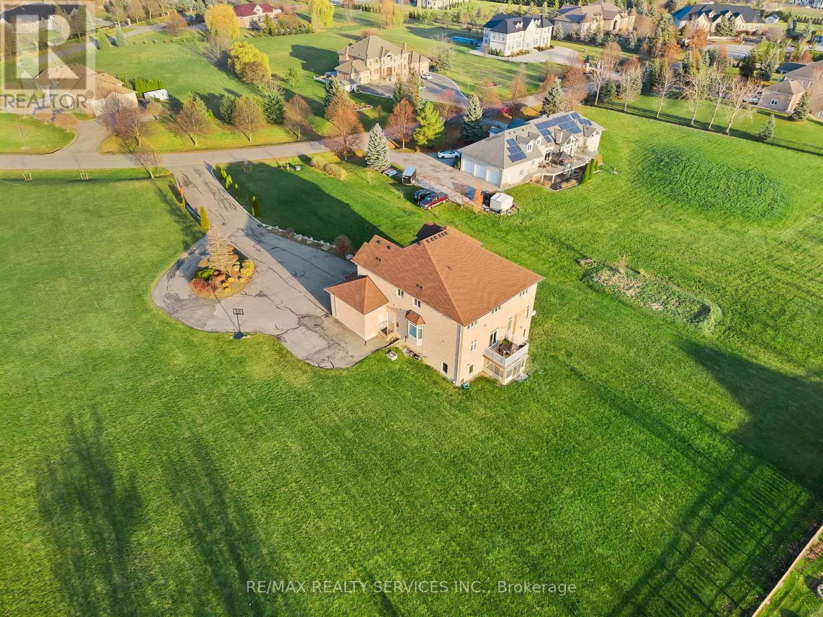 Cross Streets: Goreway/Castlemore. ** Directions: North on Goreway Dr of Castlemore, right on Rosegarden, left on Cheval and Right on Farina Dr. Experience estate living at its finest in this impeccably crafted custom home, perfectly situated on a rare 2-acre lot in one of Castlemore's most prestigious and private courts. Designed with luxury and comfort in mind, the main level welcomes you with soaring 10-ft ceilings, elegant pot lights throughout, and a bright open-concept layout ideal for both everyday living and grand entertaining. At the heart of the home is a stunning chef's kitchen featuring premium cabinetry, granite countertops, a sleek backsplash, and stainless-steel appliances, perfect for preparing meals while staying connected with family and guests. Upstairs, you'll find four generously sized bedrooms, four well-appointed bathrooms, a dedicated office, and a beautiful loft space, offering the perfect balance of privacy, functionality, and sophistication. The fully finished walkout basement with 9-ft ceilings expands your living space with two additional rooms, a media room, and three bathrooms, an ideal setup for extended family, guests, or multi-generational living. A rare opportunity to own a luxurious estate property that combines space, elegance, and versatility in one of Castlemore's most sought-after neighbourhoods. (id:27476)