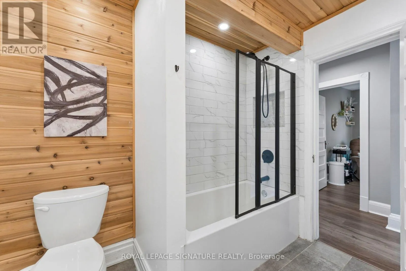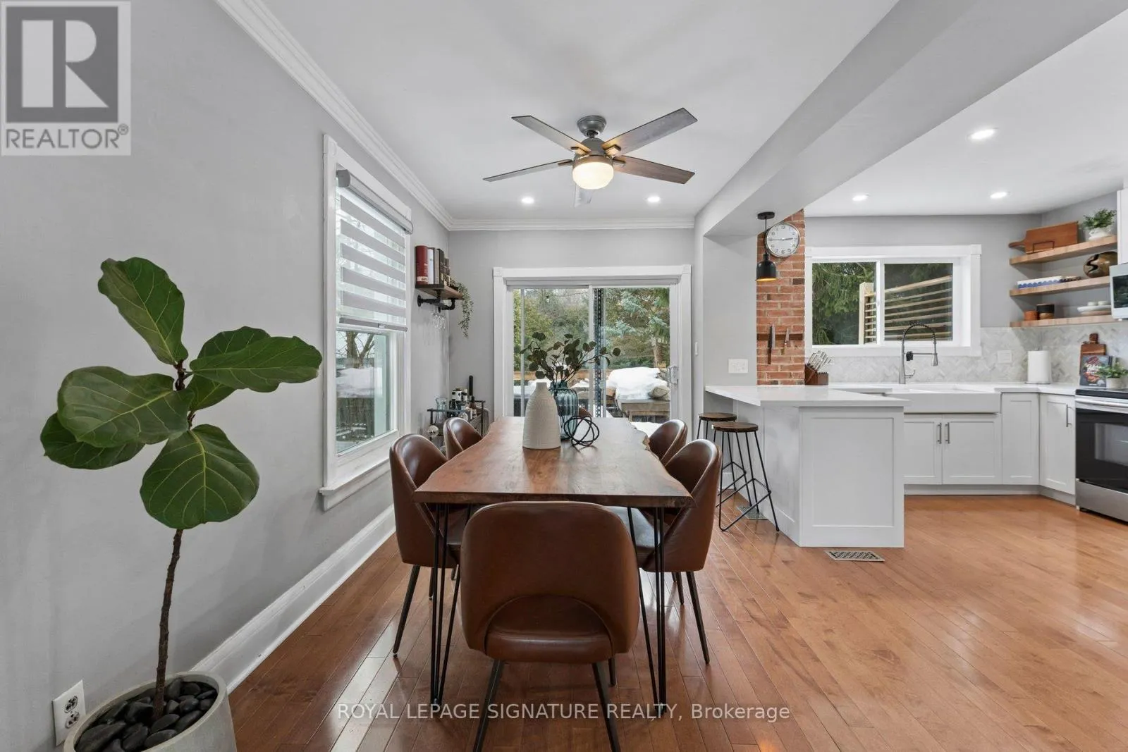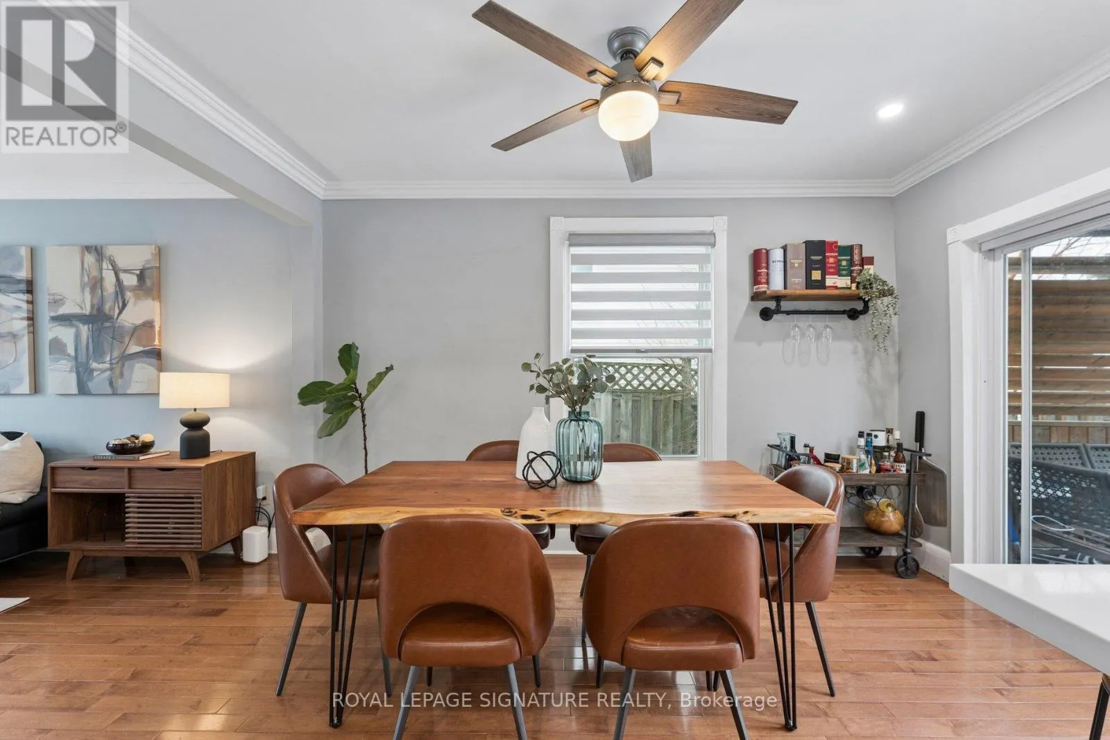 Cross Streets: Main St & English St. ** Directions: Queen St W & McLaughlin Rd N. Head south on McLaughlin Rd N, turn right on English St. Property on the left. Charming and beautifully updated 2-storey 3+1 bedroom family home offering exceptional space and income potential. Featuring a separate entrance to a finished basement with its own kitchen and 4-piece bathroom - ideal for an in-law or nanny suite and ready to make legal for future rental potential. The main level offers bright open-concept living and dining with large windows and hardwood flooring, along with a modern kitchen featuring stainless steel appliances, custom cabinetry, quartz counters, backsplash and breakfast bar. The dining area provides convenient walk-out access to the private backyard, making it perfect for indoor-outdoor entertaining.Upstairs offers three generously sized bedrooms, updated laminate flooring, convenient upper-level laundry with stacked washer & dryer, and a bright 4-piece bathroom with window and plenty of natural light. Bedrooms also include custom wardrobe closets and additional storage space available in the attic with staircase access. Enjoy a private, fully fenced and landscaped backyard designed for entertaining with a spacious built-in deck, custom wood seating, privacy screening, outdoor TV area, fire pit and tranquil garden pond water feature. The property also includes an 8 x 16 backyard shed for additional storage. Located close to schools, parks, shopping, GO Transit and the new recreation trail (2023), this home offers the perfect combination of comfort, flexibility and convenience. (id:27476)