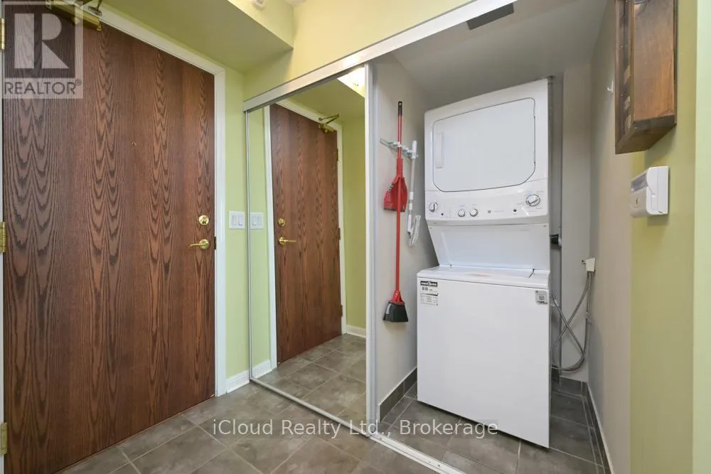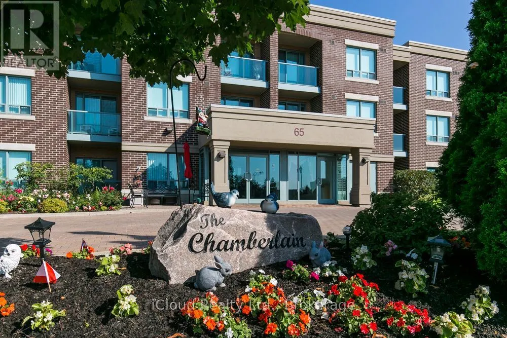 Sandalwood Pkwy & Dixie Rd Prestigious Rosedale Village. Such a great lifestyle in this gated community. The Clubhouse offers games, lawn bowling, pickle ball, a Golf course, exercise equipment, year round swimming, and so much more. The Chamberlain building of Rosedale Village offers a party room with outdoor patio. This unit is a larger one bedroom unit in the building. Features include hardwood flooring in L/R and D/R, ceramics in the kitchen, granite countertop in the kitchen with back splash and under the cupboard lighting. Stainless steel appliances add that modern look to complete the open concept kitchen. There is a small balcony off the living room. Ensuite washer and dryer. Indoor parking spot with locker close by for storage. Such a beautiful condo. Move in ready. (id:27476)