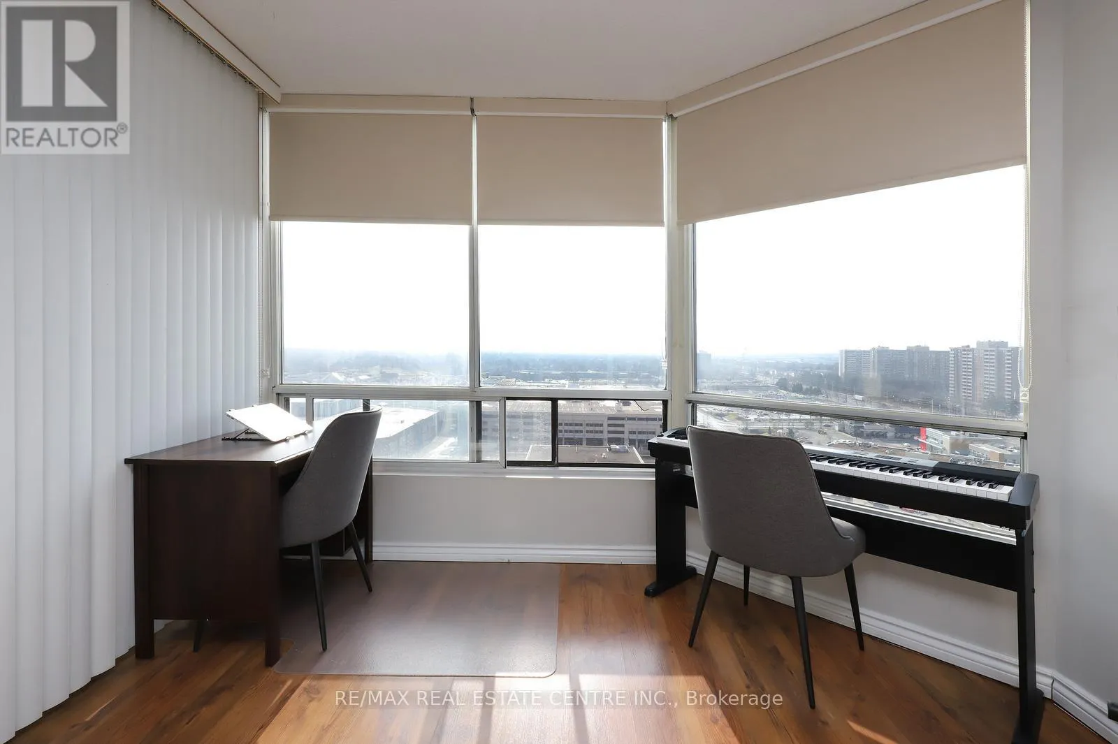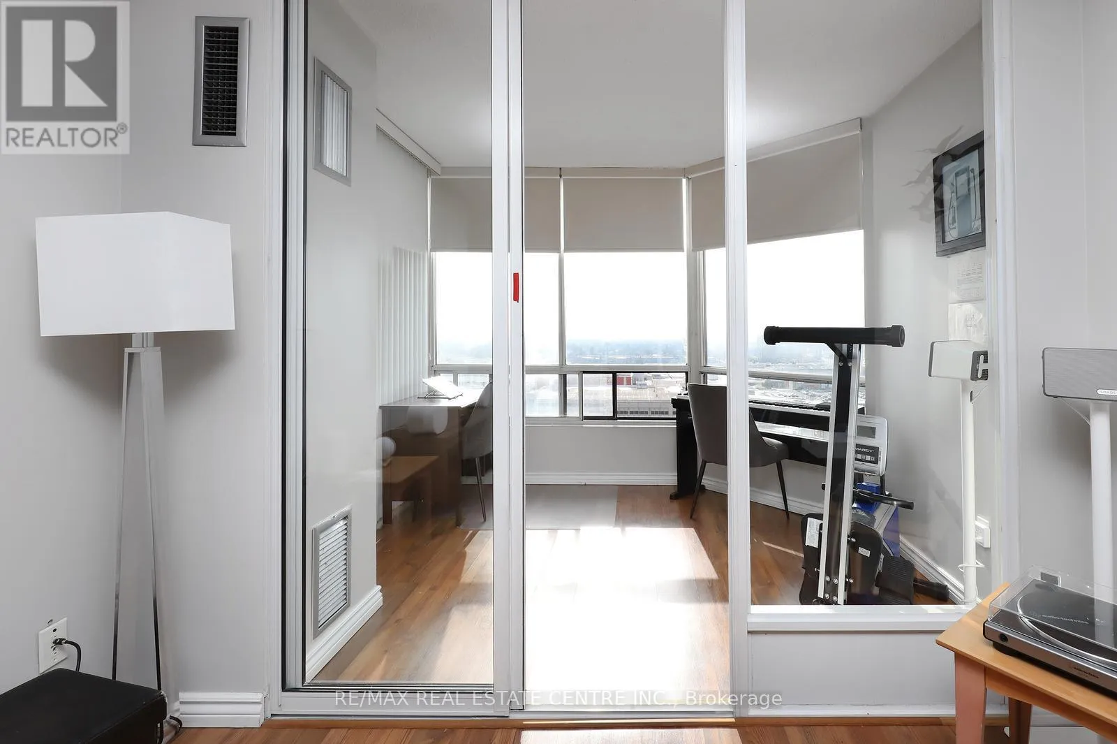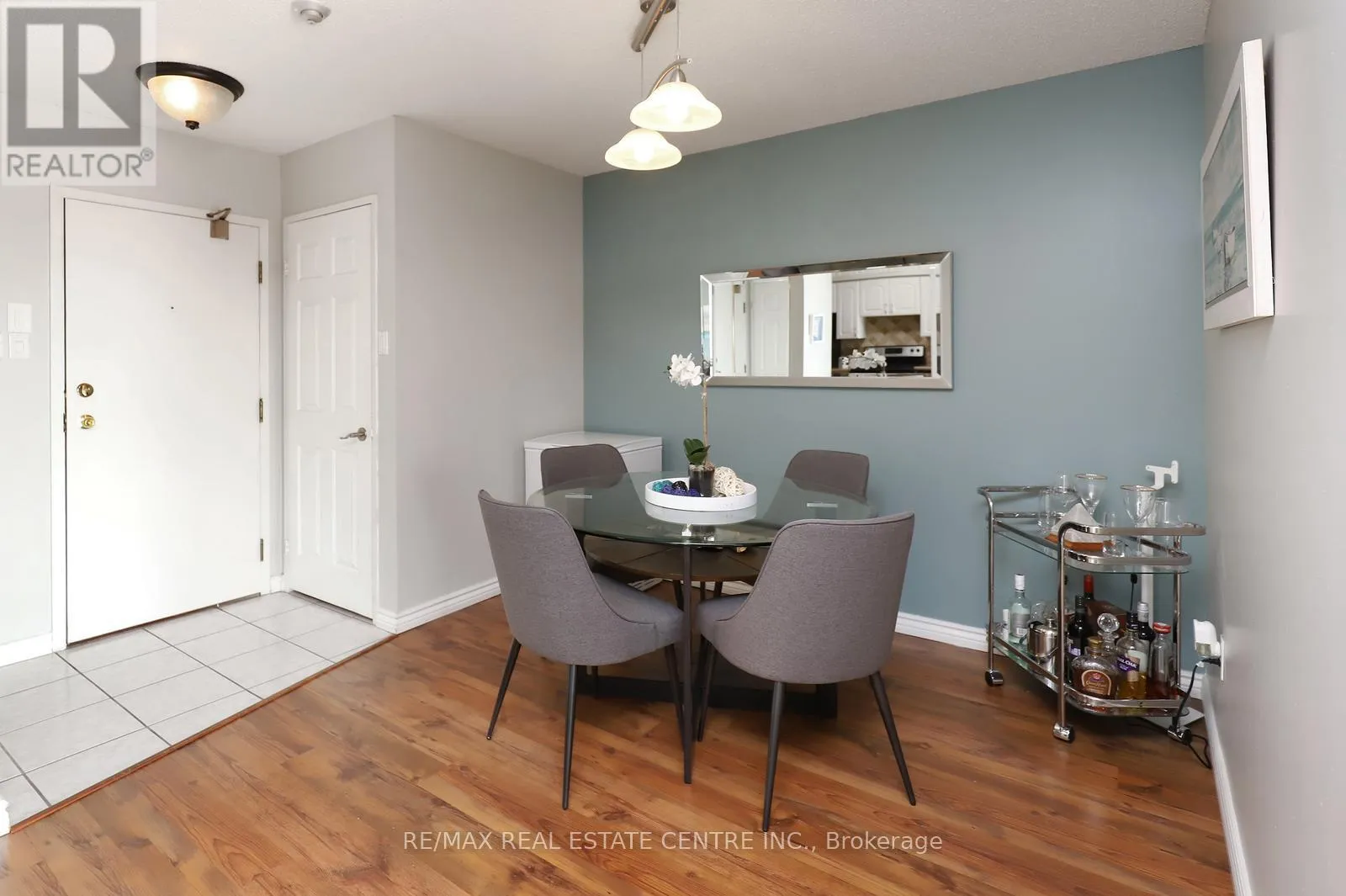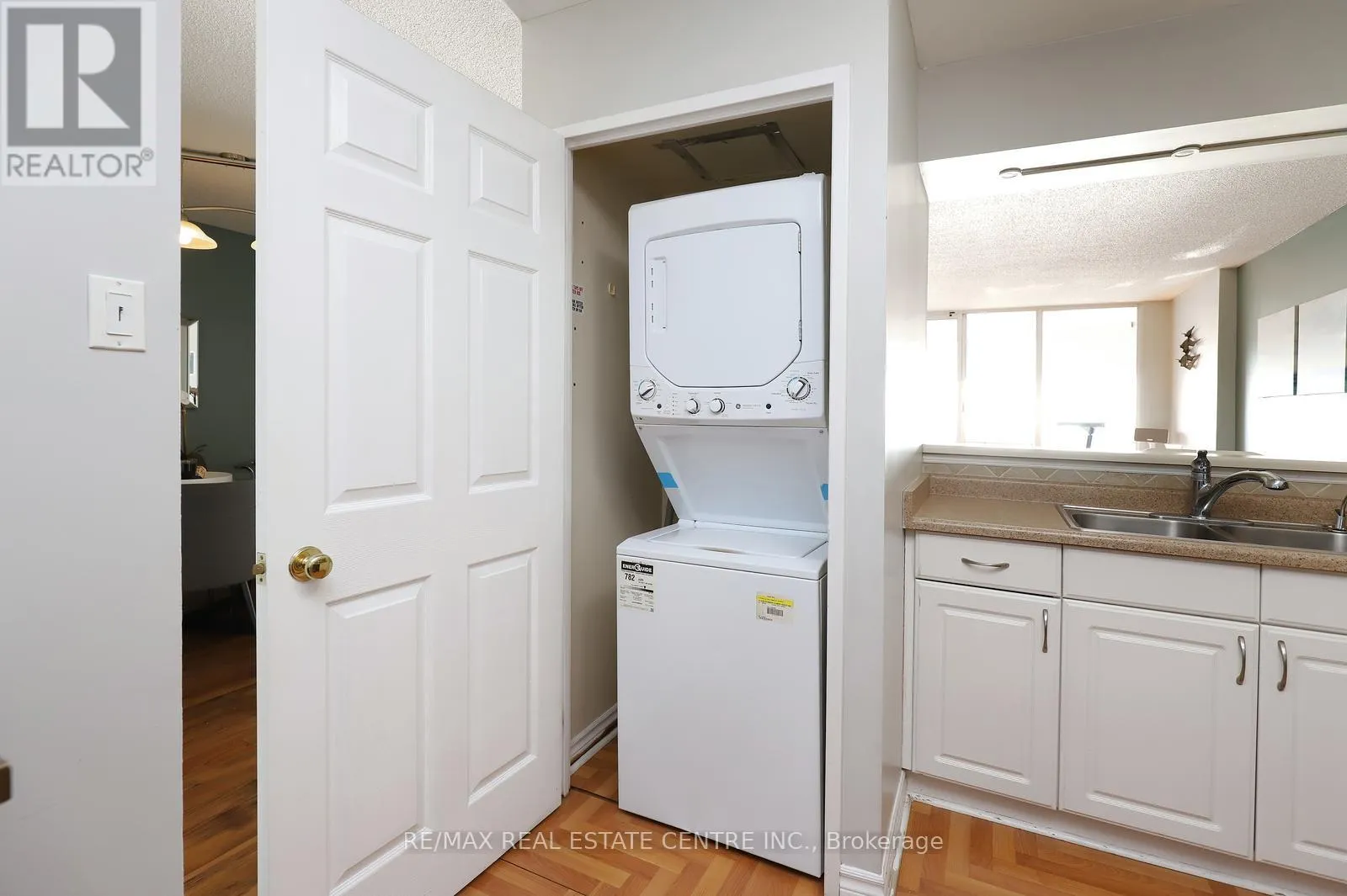 Queen St. E. & Dixie Rd. This well-maintained and highly desirable condominium building in Brampton offers an excellent location within walking distance of shopping, recreation centres, schools, and public transit, with convenient access to all major highways and GO Transit. The building offers a full range of amenities, including a pool, gym, games room, billiards, underground owned parking, and 24- hour concierge/security. The unit is a freshly painted, well-kept 1-bedroom plus den condominium featuring a spacious kitchen, combined living and dining areas with laminate flooring, a primary bedroom with a closet, and an ensuite laundry. The unit also includes a large on-suite locker/storage room and offers attractive southern views from the primary bedroom and den. Located in a clean, well-managed complex, this property provides comfortable living in a convenient commuter-friendly setting. (id:27476)