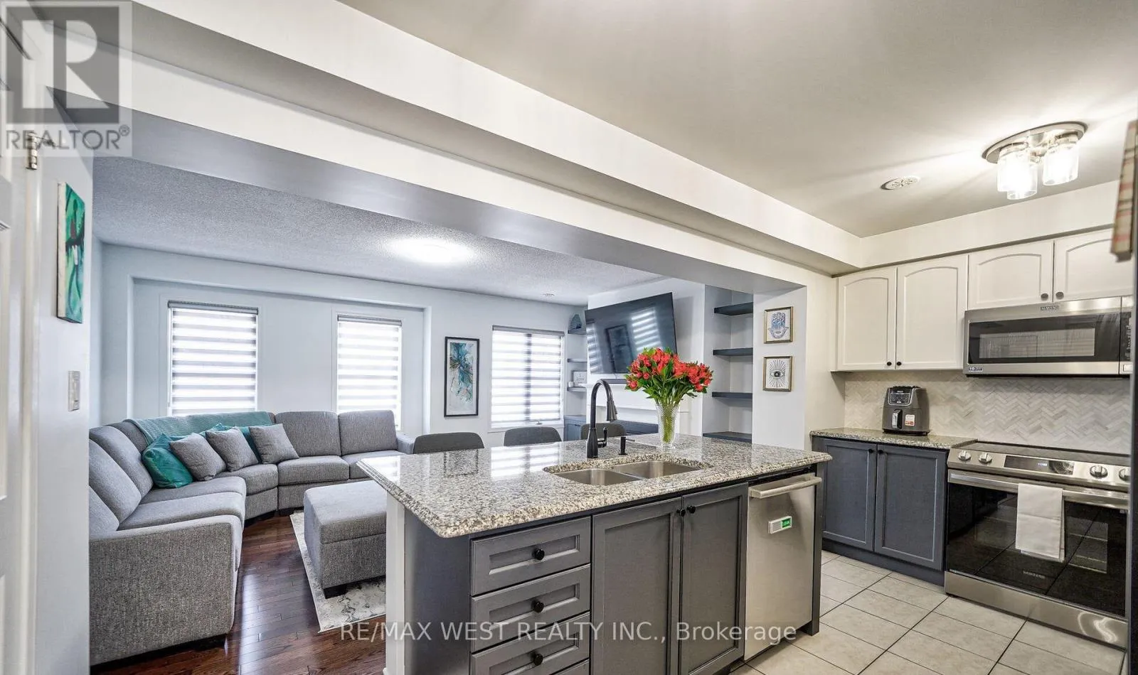 Cross Streets: Queen St/ Drinkwater. ** Directions: Queen st & Drinkwater rd. Welcome to this beautifully maintained freehold four-bedroom, four-bathroom townhouse offering the perfect blend of space, style, and convenience for modern family living. An inviting open concept on the second floor. The bright living kitchen, and dining areas flow seamlessly together, enhanced by large windows that flood the space with natural light and a convenient powder room add both functionality and smart design. The spacious primary retreat features an oversized ensuite bathroom complete with a walk-in closet. Three additional well-proportioned bedrooms, equipped with California shutters and a 4 piece bathroom provide ample space for family, guests, or a home office. With over 1,750 sq. ft. of above-grade living space, this home offers the feel of a detached property. The unspoiled main floor presents endless possibilities create home office, rec room, bedroom, gym, or additional living space you've always wanted, complete with a bathroom. Walkout to the fully private fenced backyard perfect for entertaining or relaxing outdoors. Recent updates include refinished floors and fresh paint throughout making this home truly move-in ready. Enjoy the convenience of a three parking space a direct access to the garage to the foyer. Ideally located close to shopping, restaurants, schools, public transit, and easy access to Highways, this home delivers comfort and connectivity in one exceptional package. Offers welcome anytime-don't miss your opportunity to own this family friendly property. (id:27476)