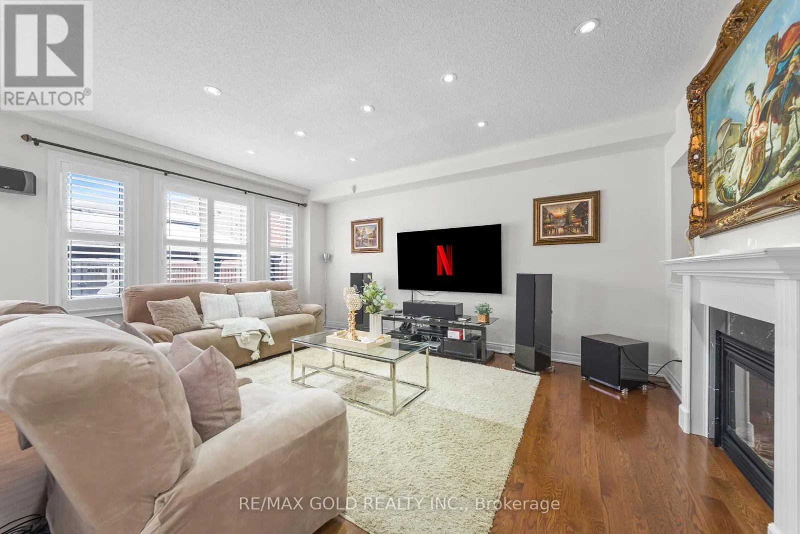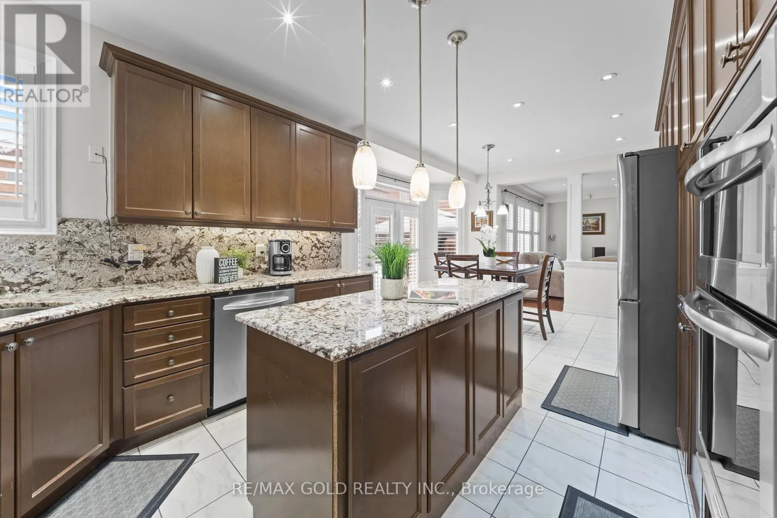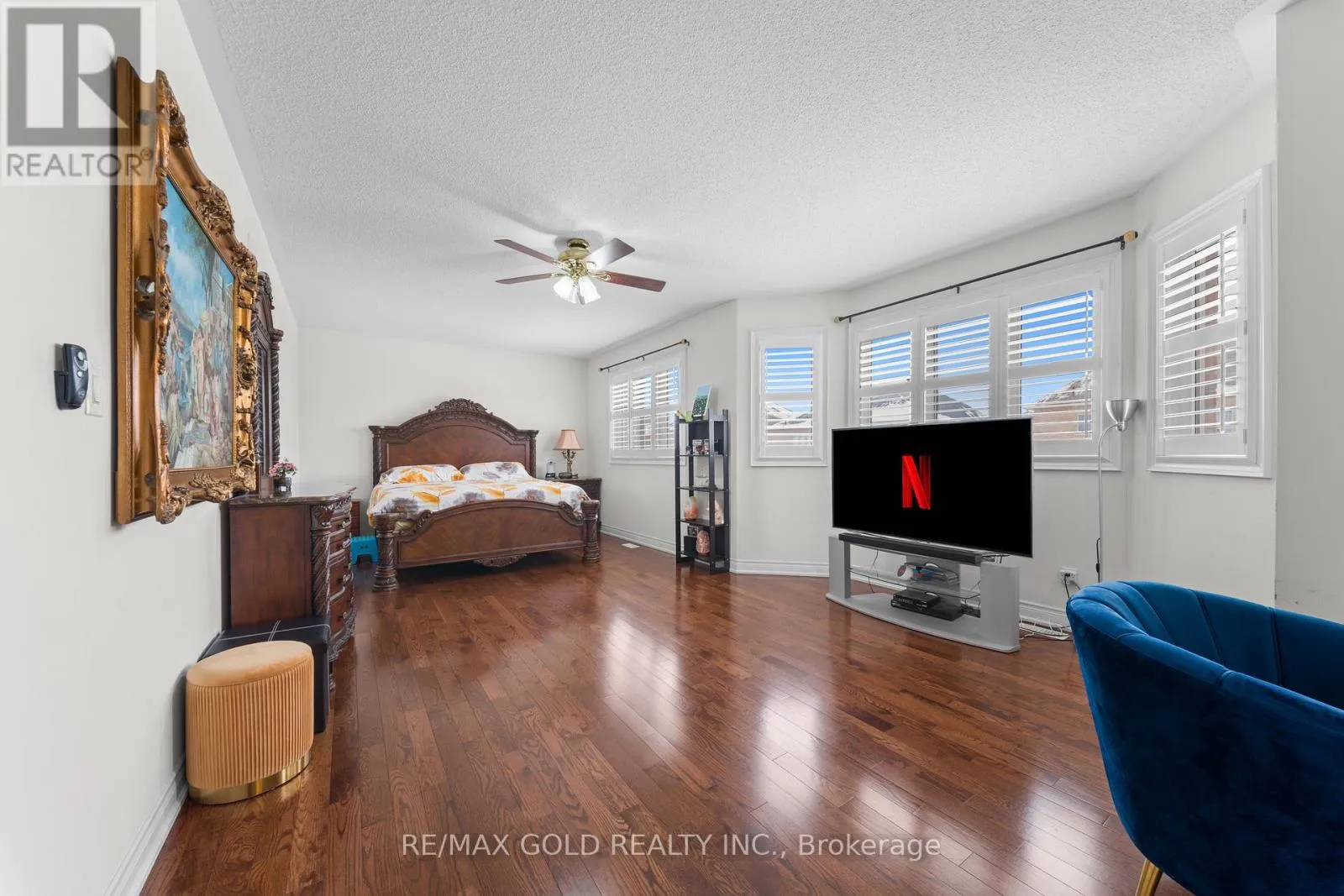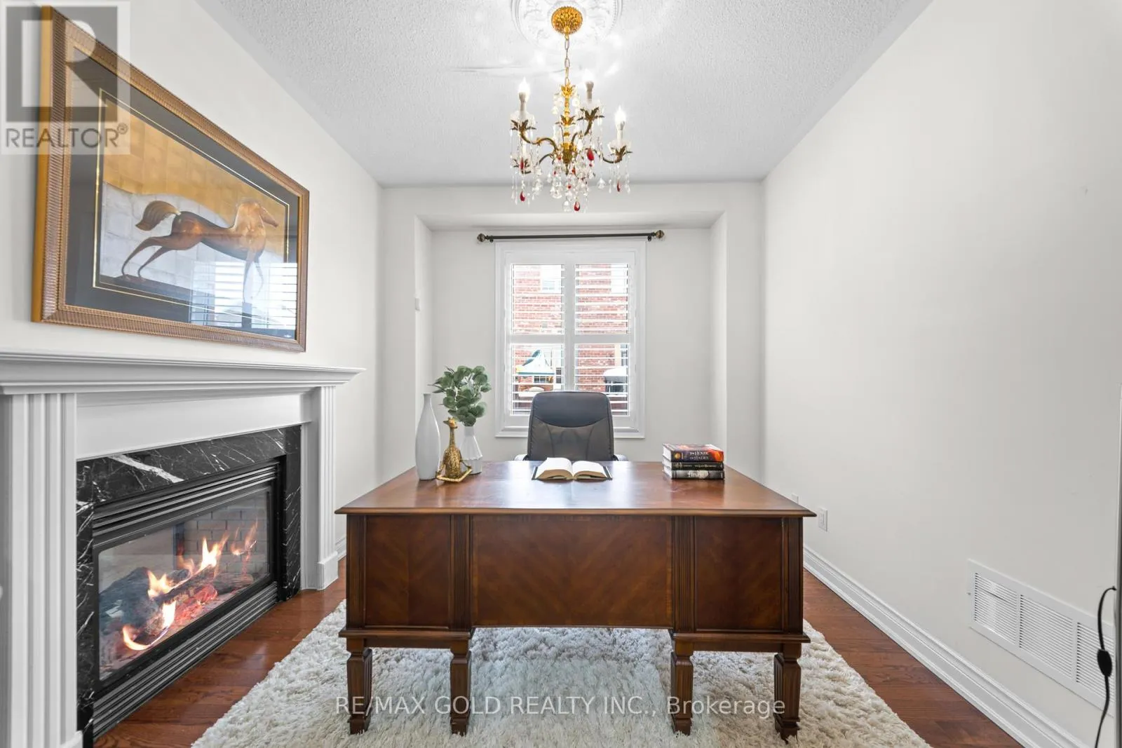 Bramalea Rd & Countryside Dr Exquisite Home offering approx. 3,700 sq. ft. of refined living space, featuring 9-ft ceilings on both floors and rich hardwood throughout. A grand double-door entry opens to a breathtaking open-to-above foyer with an elegant chandelier. The gourmet kitchen is beautifully appointed with granite countertops, designer backsplash, premium maple cabinetry, a spacious center island, built-in cooktop and oven, and stainless steel appliances. Expansive principal rooms include gas fireplaces in both the living room and private office, ideal for elegant entertaining and everyday comfort. The luxurious primary suite offers a spacious walk-in closet and a spa-inspired ensuite bath, complemented by four generously sized bedrooms and the rare convenience of three full bathrooms on the upper level. California shutters throughout enhance sophistication and privacy. Additional highlights include pot lights on the main floor and exterior, a separate entrance, no sidewalk for maximum parking, an interlocked driveway and patio, and a beautifully landscaped backyard with shed-an exceptional blend of luxury, space, and functionality. (id:27476)