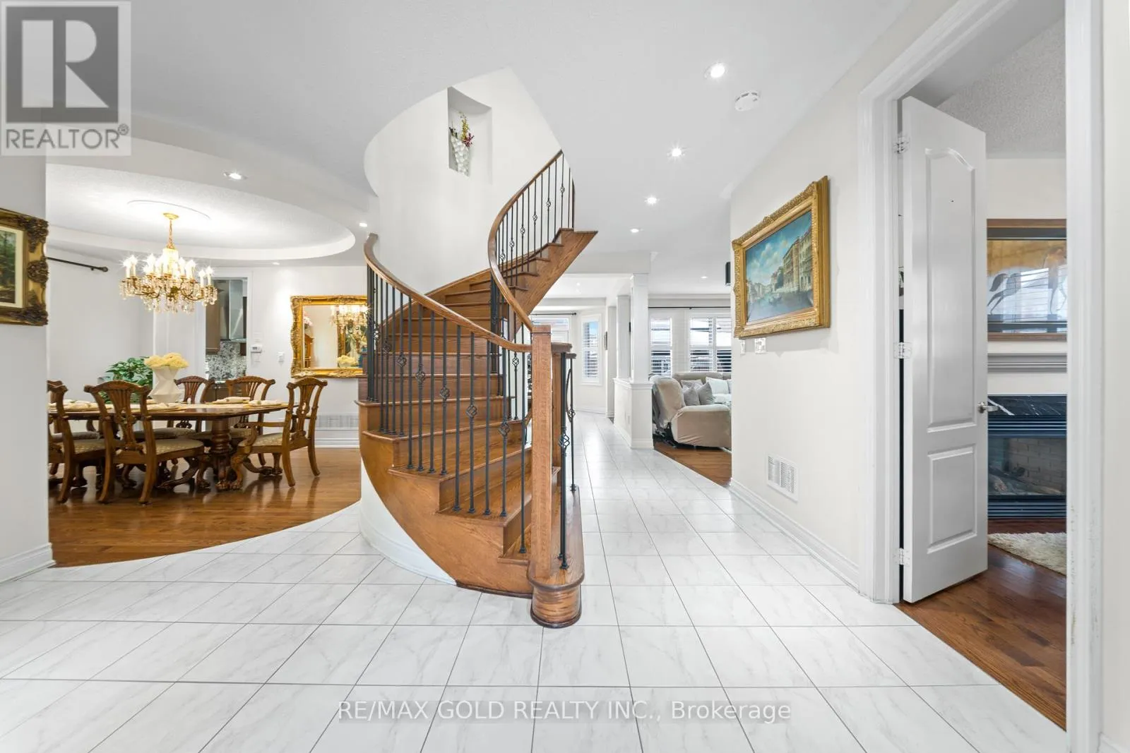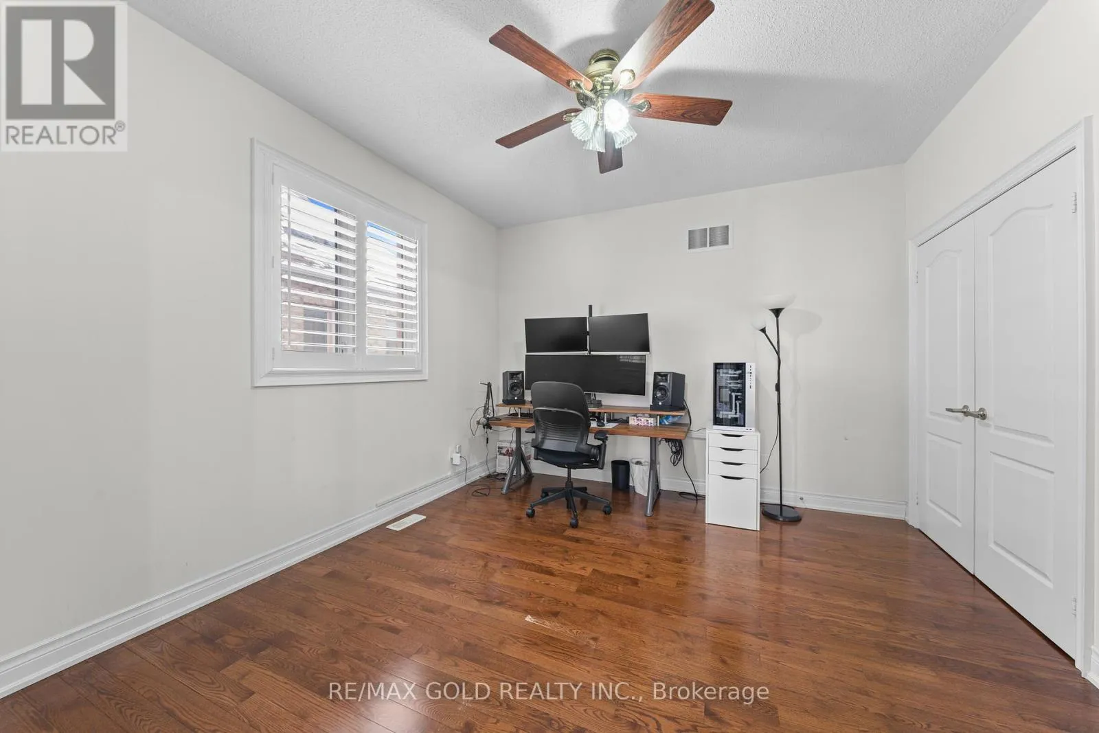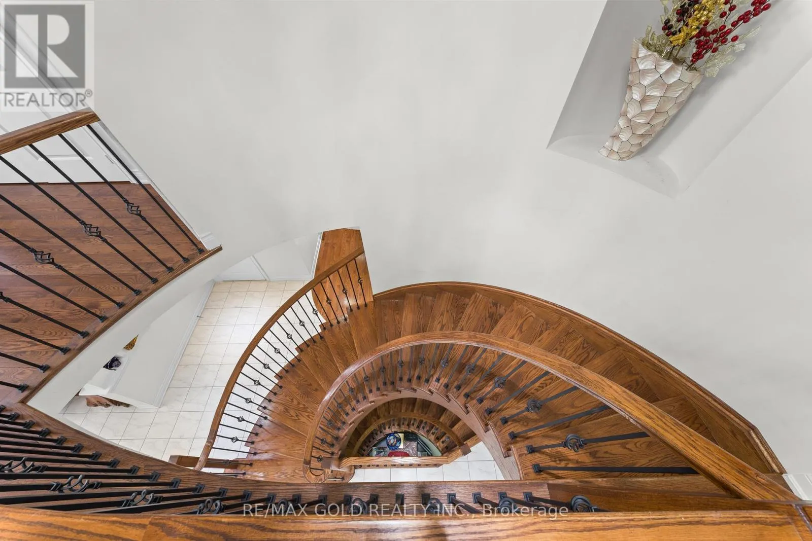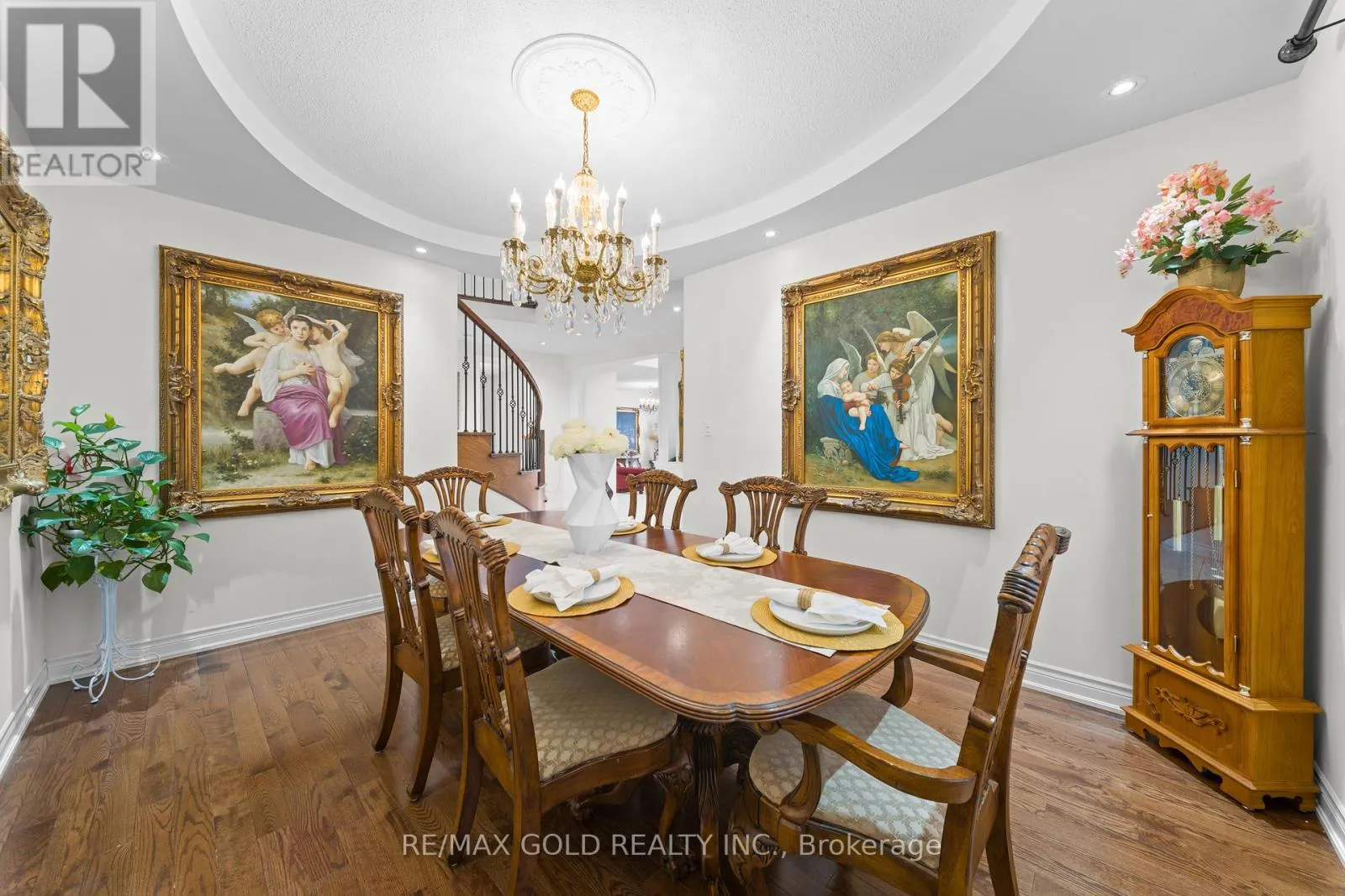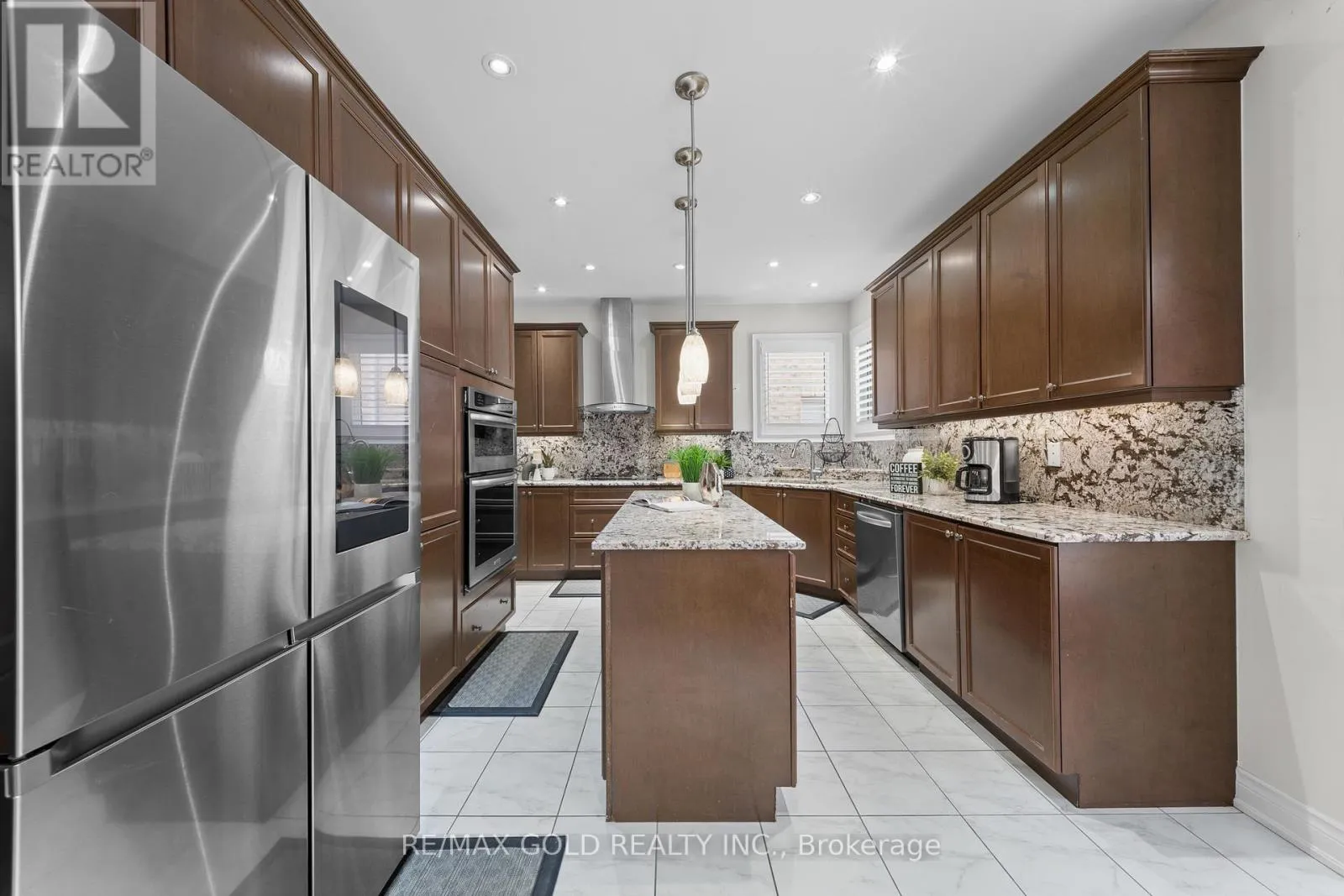 Bramalea Rd & Countryside Dr Exquisite Home offering approx. 3,700 sq. ft. of refined living space, featuring 9-ft ceilings on both floors and rich hardwood throughout. A grand double-door entry opens to a breathtaking open-to-above foyer with an elegant chandelier. The gourmet kitchen is beautifully appointed with granite countertops, designer backsplash, premium maple cabinetry, a spacious center island, built-in cooktop and oven, and stainless steel appliances. Expansive principal rooms include gas fireplaces in both the living room and private office, ideal for elegant entertaining and everyday comfort. The luxurious primary suite offers a spacious walk-in closet and a spa-inspired ensuite bath, complemented by four generously sized bedrooms and the rare convenience of three full bathrooms on the upper level. California shutters throughout enhance sophistication and privacy. Additional highlights include pot lights on the main floor and exterior, a separate entrance, no sidewalk for maximum parking, an interlocked driveway and patio, and a beautifully landscaped backyard with shed-an exceptional blend of luxury, space, and functionality. (id:27476)