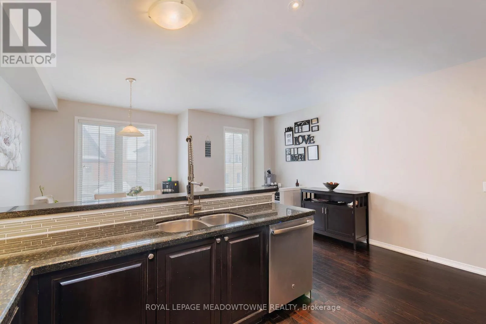 Mavis/Hwy 407 Welcome to this beautifully renovated townhome ideally located on the Brampton/Mississauga border, offering style, comfort, and exceptional functionality for modern living. From the moment you step inside, you'll notice the pride of ownership and thoughtful upgrades throughout. The home features hardwood floors, hardwood stairs, 9-foot ceilings on the second floor, pot lights and large windows that create a bright and inviting atmosphere. The chef-inspired eat-in kitchen is perfect for both everyday living and entertaining, complete with granite countertops, high-end stainless steel appliances, and a convenient breakfast bar. Whether preparing family meals or hosting guests, this space combines practicality with sophisticated design. The fact that this is open to the dining area is extremely convenient. It is easy to picture your next extended family dinner in this space. The main living areas flow beautifully. Upstairs and throughout the home you'll find custom California Closet organizers, maximizing storage and organization. The home theatre room with walkout to the private rear patio offers the perfect place to unwind or entertain. This ground floor features a lower-level walkout, step outside to enjoy a fully fenced backyard, providing privacy and an ideal space for relaxation or summer gatherings. The ground floor also includes a bathroom rough-in currently used as storage, making it easy to add a fourth bathroom if desired. Once completed, this level could be especially appealing for multi-generational living or someone with mobility considerations, thanks to its convenient layout. Additional features include Levelor blinds, garage parking plus driveway space, and everything you need for this home to be move-in ready. Situated in a family-friendly neighbourhood close to Meadowvale Conservation Area, excellent schools, transit, and quick access to Hwy 407, this home offers the perfect balance of nature, convenience, and community. (id:27476)