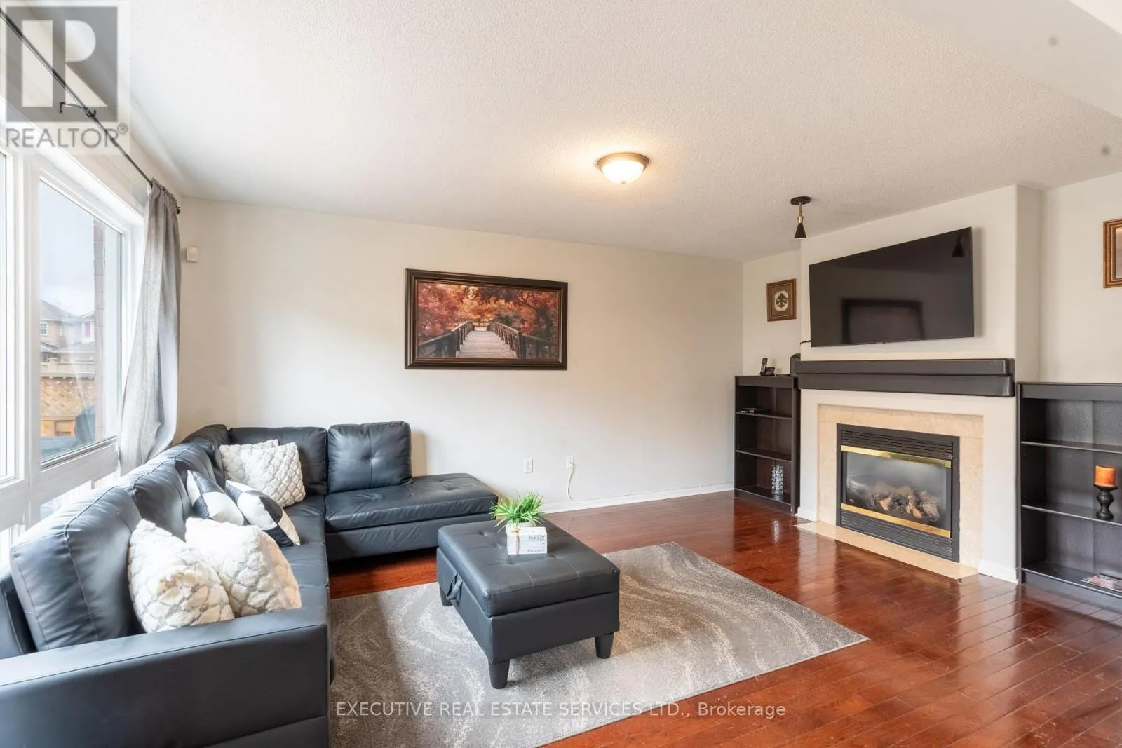 Cross Streets: Sandalwood & Fidelity. ** Directions: North. Immaculate & beautifully maintained 4-bedroom family home featuring hardwood & ceramic flooring throughout, elegant oak staircase, and welcoming front porch. Functional main floor layout with separate living, dining & family rooms, ideal for family living & entertaining. Upgraded kitchen with modern countertops, spacious eat-in area & walk-out to a custom sundeck overlooking the backyard. Bright family room with cozy gas fireplace.Finished basement offers additional living space with bar area, theatre room, 1 bedroom & full washroom - perfect for extended family or entertainment. Spacious primary bedroom with 4-piece ensuite. Home features 4 walk-in closets providing ample storage.A stunning home offering space, comfort & upgrades - a must see! (id:27476)