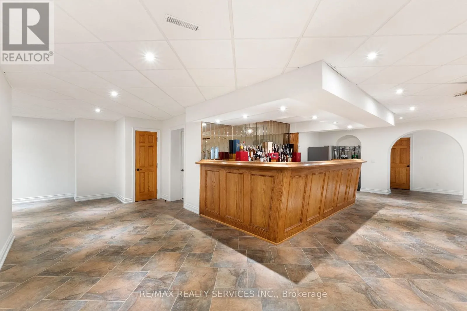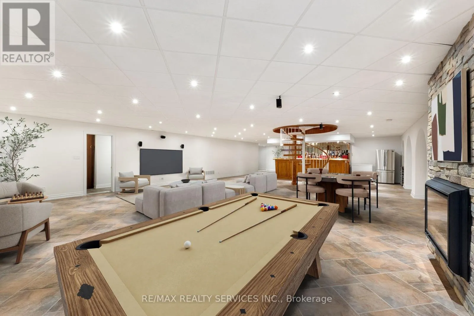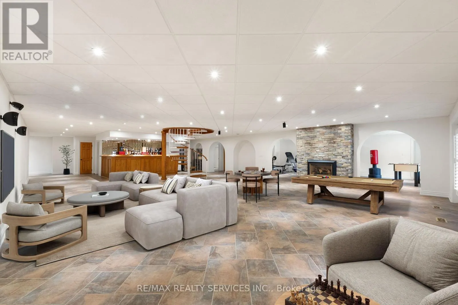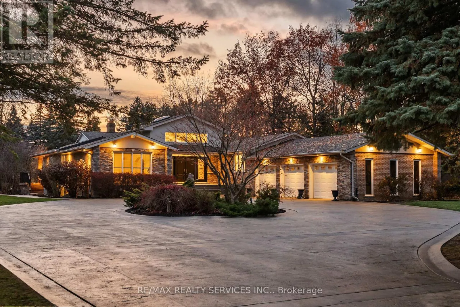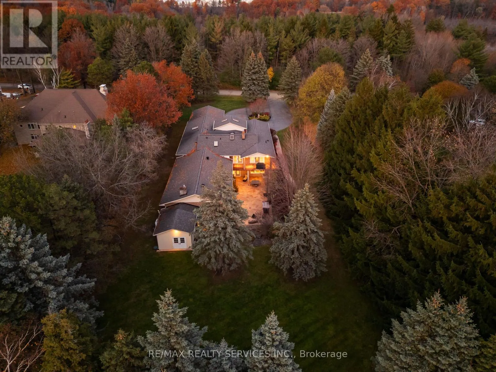 Cross Streets: Kennedy/Conservation. ** Directions: Head east on Conservation Dr, house is on the left. Welcome to this stunning custom-built raised bungalow on a private 1-acre lot in one of Brampton's most prestigious enclaves, directly across from Heart Lake Conservation Area. Offering 7,700 sq ft of total living space, including 3,200 sq ft above grade and a breathtaking 4,500 sq ft walk- out basement with an indoor pool complex and waterfall, this home is a true retreat. The chef's kitchen features a walk-out balcony, custom wood cabinetry, and natural light, capturing unobstructed views of Heart Lake and surrounding forest. The family room offers a walkout balcony overlooking the firepit and landscaped gardens, perfect for gatherings. The upper level includes four spacious bedrooms, with the primary suite boasting a private ensuite and walk-in closet. The lower level offers two additional bedrooms and a large recreational area with oversized windows, a fireplace, wet bar, and walkout to a stamped concrete patio. The indoor pool (18 ft x 42 ft) area features 14-foot ceilings, a waterfall, swim-up bar, and state of the art climate control, creating a year-round resort experience. Completing this luxurious space is a sizable gym, sauna and shower area. Indoor-outdoor flow seamlessly links to beautifully landscaped gardens and a stone patio with a gas firepit, providing an outdoor oasis. The backyard offers privacy and tranquility with mature trees, lush landscaping, and a large open yard for recreation. The front driveway is stamped concrete, with 5 vehicles indoors. Located on conveted Conservation Drive, surrounded by multimillion-dollar properties and with no homes across the street, this estate offers unobstructed views, nearby trail access, abundant wildlife, and a luxurious lifestyle immersed in nature. (id:27476)
