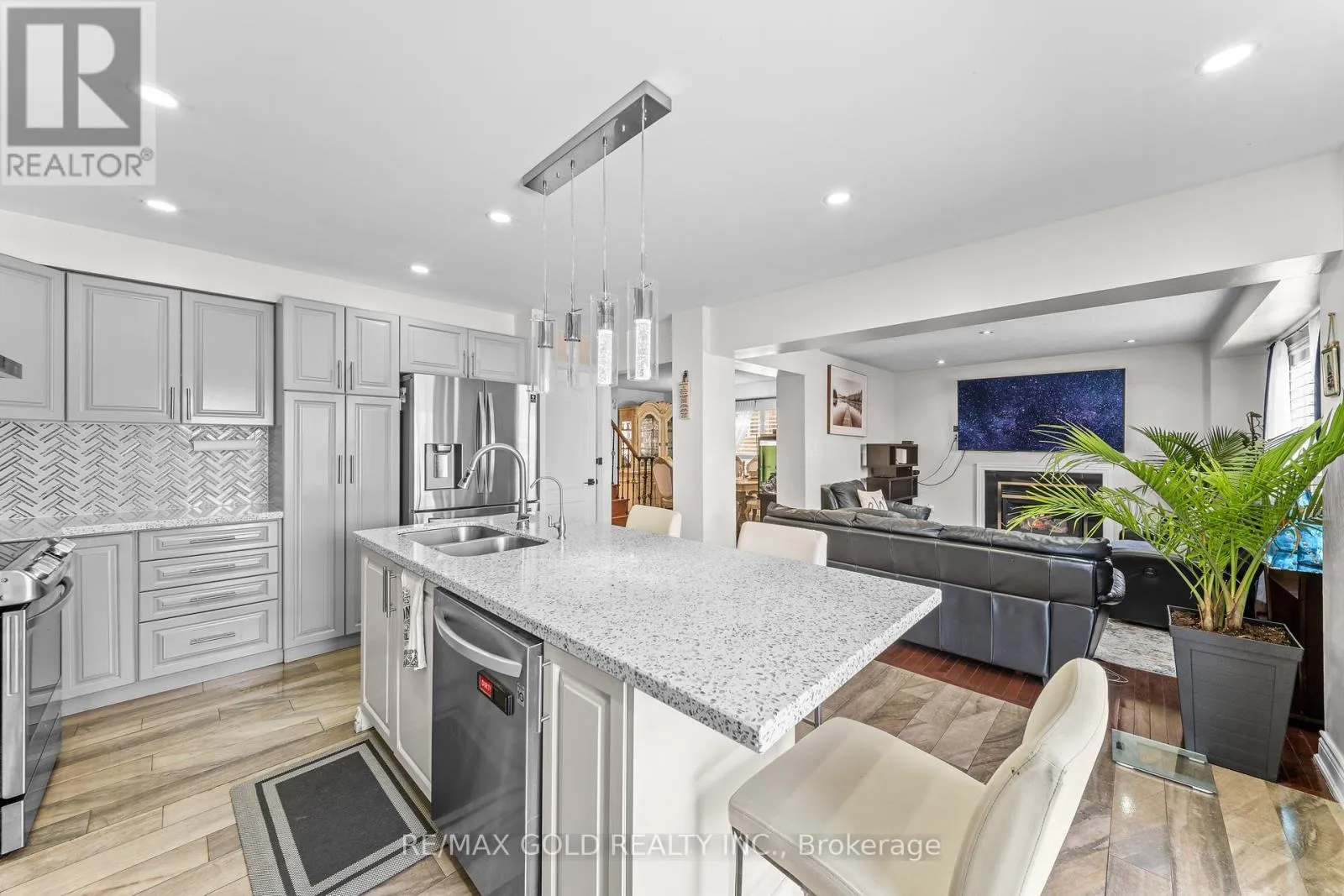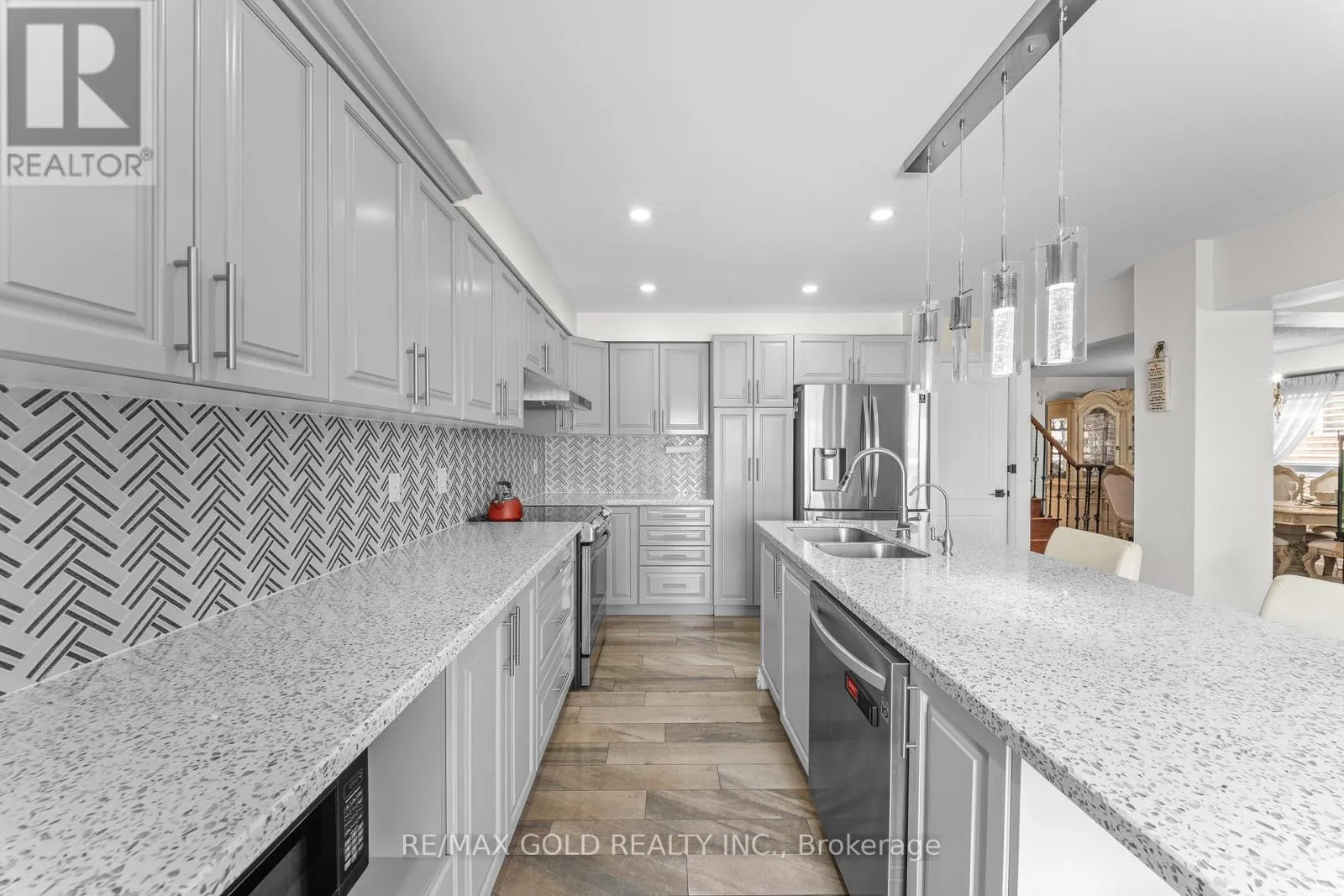 Brisdale/Bovaird Stunning 4-bedroom, 3-washroom Detached home in the highly sought-after Fletcher's Meadow community! This beautifully maintained property shows like a model home and features hardwood flooring throughout. The spacious primary bedroom offers a walk-in closet and a luxurious 5- piece ensuite. All bedrooms are generously sized, each with large windows that provide abundant natural light. The modern kitchen is a true highlight, complete with quartz countertops, stainless steel appliances, and a walk-out to the backyard-perfect for entertaining. The open-concept living area boasts hardwood floors, a cozy fireplace, and newly installed pot lights throughout the home. Additional features include convenient double garage access and a fully finished 2-bedroom basement, offering excellent potential for extra income or extended family living. This spotless, bright, and spacious home is truly a perfect 10! Ideally located close to all amenities, with walking distance to grocery stores, plazas, and more. (id:27476)
