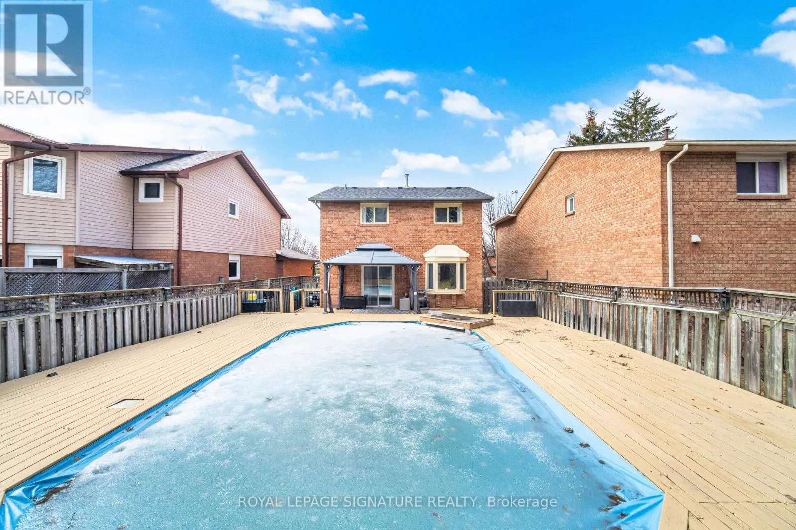 Sandalwood Pkwy & Kennedy Road Your 2026 dream home is waiting for you. Welcome to this beautifully maintained home featuring a stunning backyard oasis complete with a gazebo and private pool, ideal for summer gatherings, bbqs with family and friends and lots of outdoor fun. This home features a tastefully, renovated kitchen with quartz countertops, glass backsplash and pot lighting. Combined living/dining room with crown moulding, bay window overlooking the pool area and a walk-out to deck. The second level offers a spacious family room area with vaulted ceilings and a fireplace. Primary bedroom with a walk-in closet, built-in wardrobe and ensuite. The remaining bedrooms both have double closets. The lower level offers a finished recreation room with a double closet and lots of area for storage. This home is located in a family, friendly neighbourhood close to schools, parking and shopping. Come by and have a look, you won't be disappointed. "Lets Make a Bond" (id:27476)