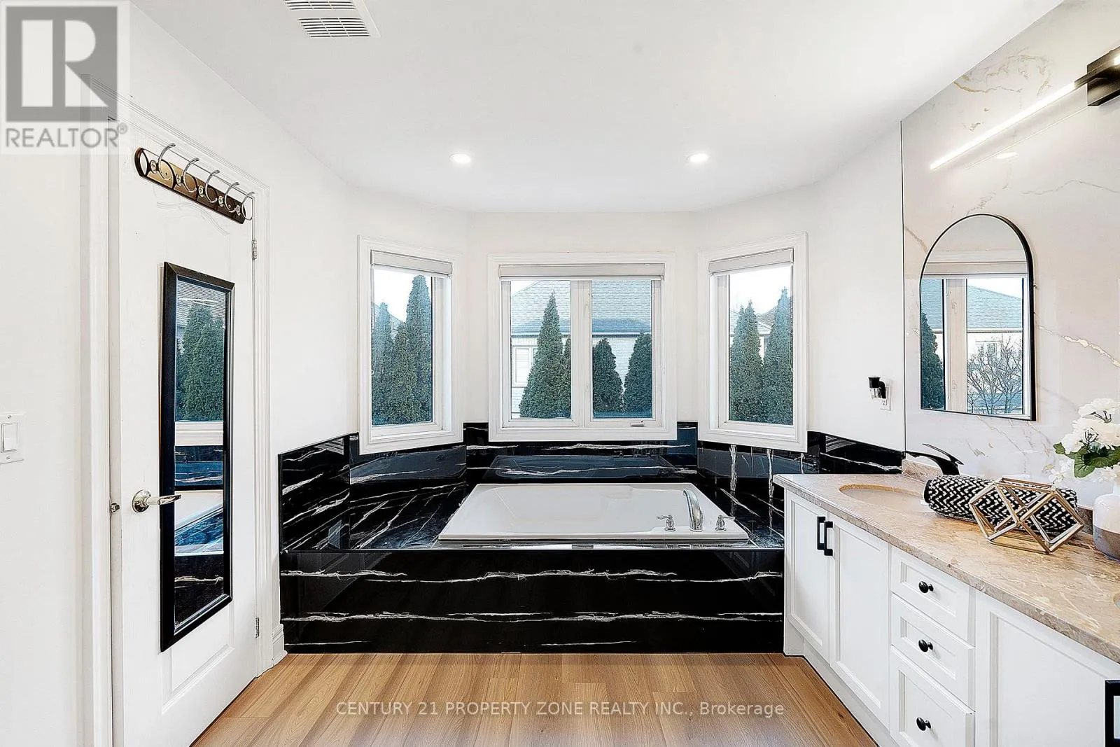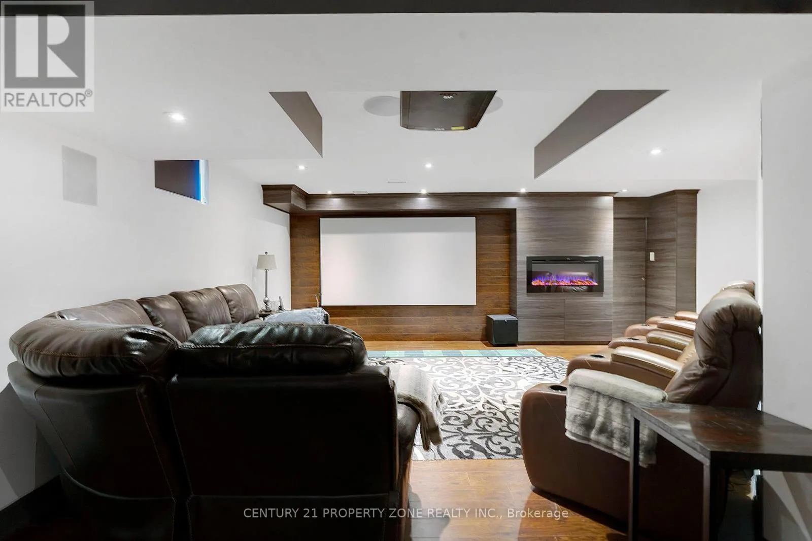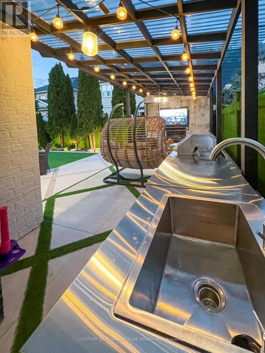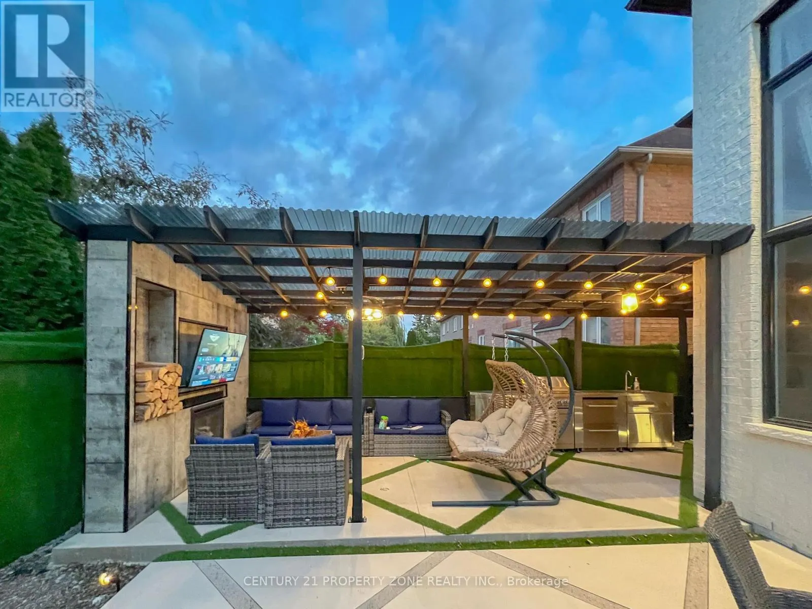 Mississauga Rd & Financial Dr A truly one-of-a-kind luxury home located in one of Brampton's most sought-after subdivisions. Fullyrenovated from top to bottom, this exceptional residence offers 5 bedrooms, 6 washrooms, a stunninghigh-ceiling family room, an elegant round staircase, and a state-of-the-art 4K home theatre in thefinished basement! With over 5,000 sq ft of total living space (approx. 3,650 sq ft above grade plusa 1,800 sq ft finished basement). Each bedroom features direct access to a bathroom, while thebasement includes both an ensuite and a powder room, making it ideal for extended family or guests.Luxury continues outdoors with a heated patio featuring a full outdoor kitchen, fireplace, gas BBQ,and pizza oven-perfect for year-round entertaining. Additional highlights include a durable metalroof, custom exterior stucco and concrete finishes, premium exterior upgrades, brand-new porcelainflooring, and stamped concrete throughout! This is a rare opportunity to own a truly exceptional home! (id:27476)