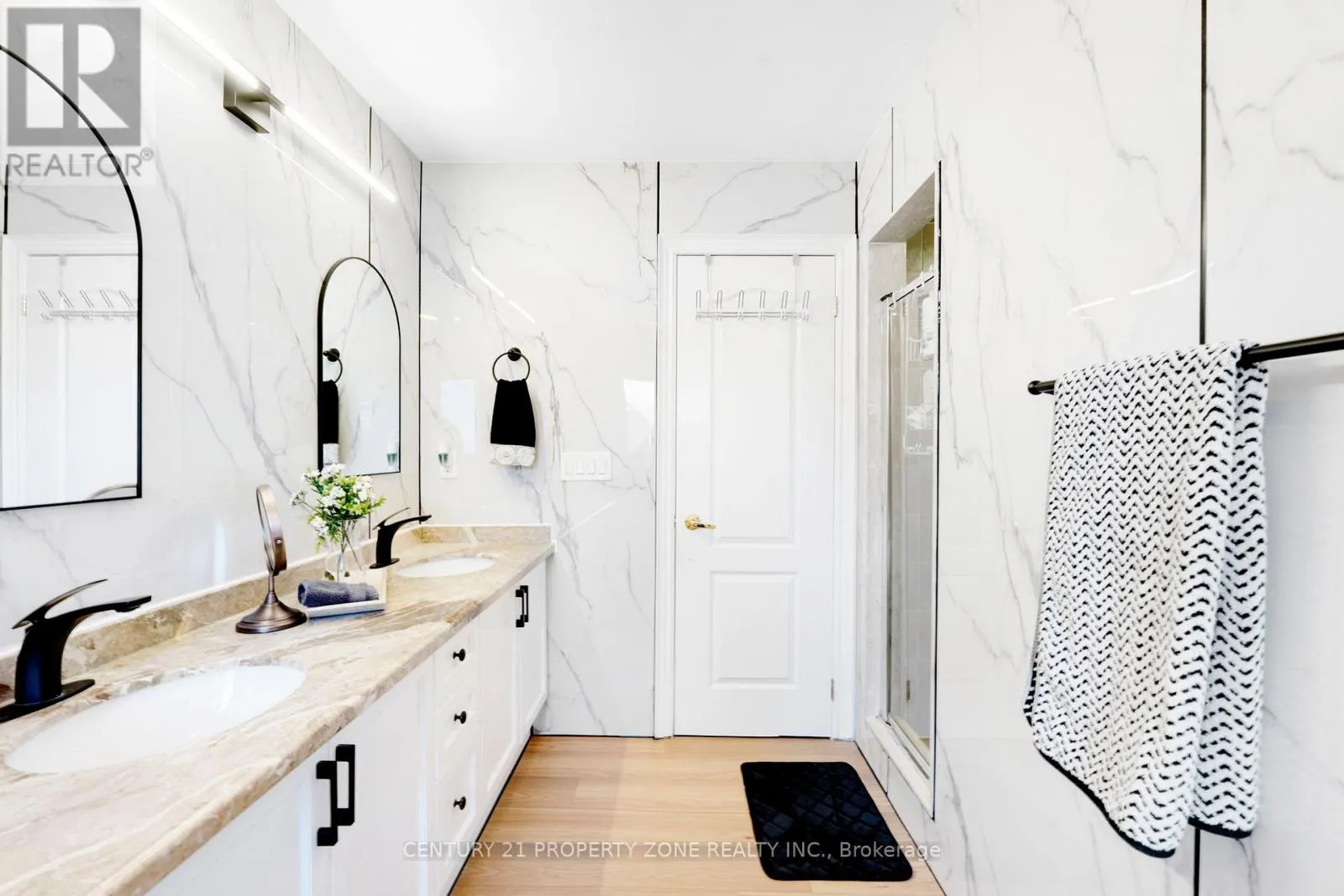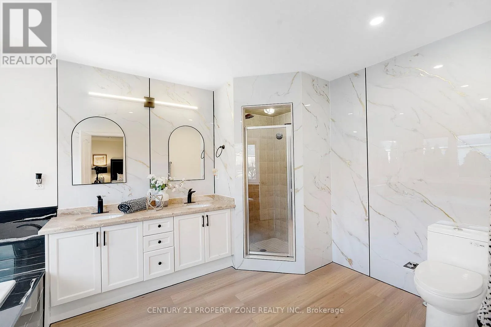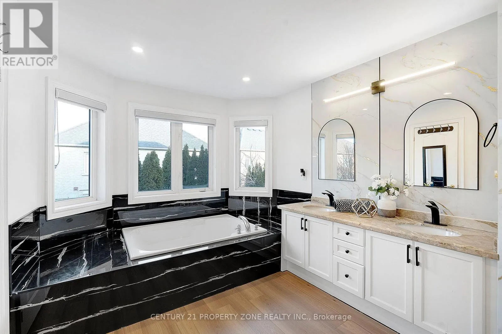 Mississauga Rd & Financial Dr A truly one-of-a-kind luxury home located in one of Brampton's most sought-after subdivisions. Fullyrenovated from top to bottom, this exceptional residence offers 5 bedrooms, 6 washrooms, a stunninghigh-ceiling family room, an elegant round staircase, and a state-of-the-art 4K home theatre in thefinished basement! With over 5,000 sq ft of total living space (approx. 3,650 sq ft above grade plusa 1,800 sq ft finished basement). Each bedroom features direct access to a bathroom, while thebasement includes both an ensuite and a powder room, making it ideal for extended family or guests.Luxury continues outdoors with a heated patio featuring a full outdoor kitchen, fireplace, gas BBQ,and pizza oven-perfect for year-round entertaining. Additional highlights include a durable metalroof, custom exterior stucco and concrete finishes, premium exterior upgrades, brand-new porcelainflooring, and stamped concrete throughout! This is a rare opportunity to own a truly exceptional home! (id:27476)