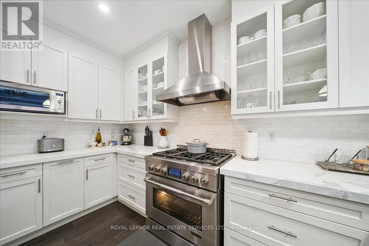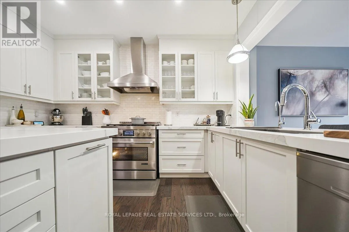 Mississauga Road/Financial Drive Stunning Showpiece!! Well over $100,000 in custom upgrades. This immaculate, beautifully appointed move-in -ready 4-bedroom, 3-bath 2427 square foot home is a true gem both inside and out. Features a family-sized gourmet kitchen with heat resistant neolith sintered stone counters, centre island, custom upgraded cabinetry, acid resistant Dolomite marble backsplash, 36-inch Jennair gas stove, Vent-a-Hood, 36-inch French style refrigerator, pantry, wine/bar fridge and much more. The open concept floor plan, accentuated by soaring nine foot smooth ceilings, 5-inch plank engineered hardwood flooring, upgraded trim and impressive detailing, feels and flows like a much larger home. The living/dining area easily accommodates any large family gathering while the spacious family room with gas fireplace and impressive mantle provides an oasis for relaxation and quiet enjoyment. The expansive 18.5 ft. x 13 ft.primary bedroom boasts a 5-piece ensuite with 67-inch soaker tub, frameless glass shower, custom Calacatta oro marble double sink vanity and comfy heated flooring. Completing this second floor level are custom smooth ceilings, three more generous sized bedrooms, one with access to a open balcony, a laundry room with full sized LG washer and dryer, floor drain, custom cabinets and handy laundry sink. The 7.5 ft high and dry unfinished premium lookout basement offers great easy potential for creating income or an in-law suite. The low maintenance fully fenced rear yard oasis boasts an upgraded 11ft x 11ft composite deck with glass railing, barbecue hook up and a convenient 10 ft. x 12 ft. gazebo for entertaining and sunshade. This home sparkles throughout from the original owners pride of ownership. It is a must see. Don't miss it! (id:27476)