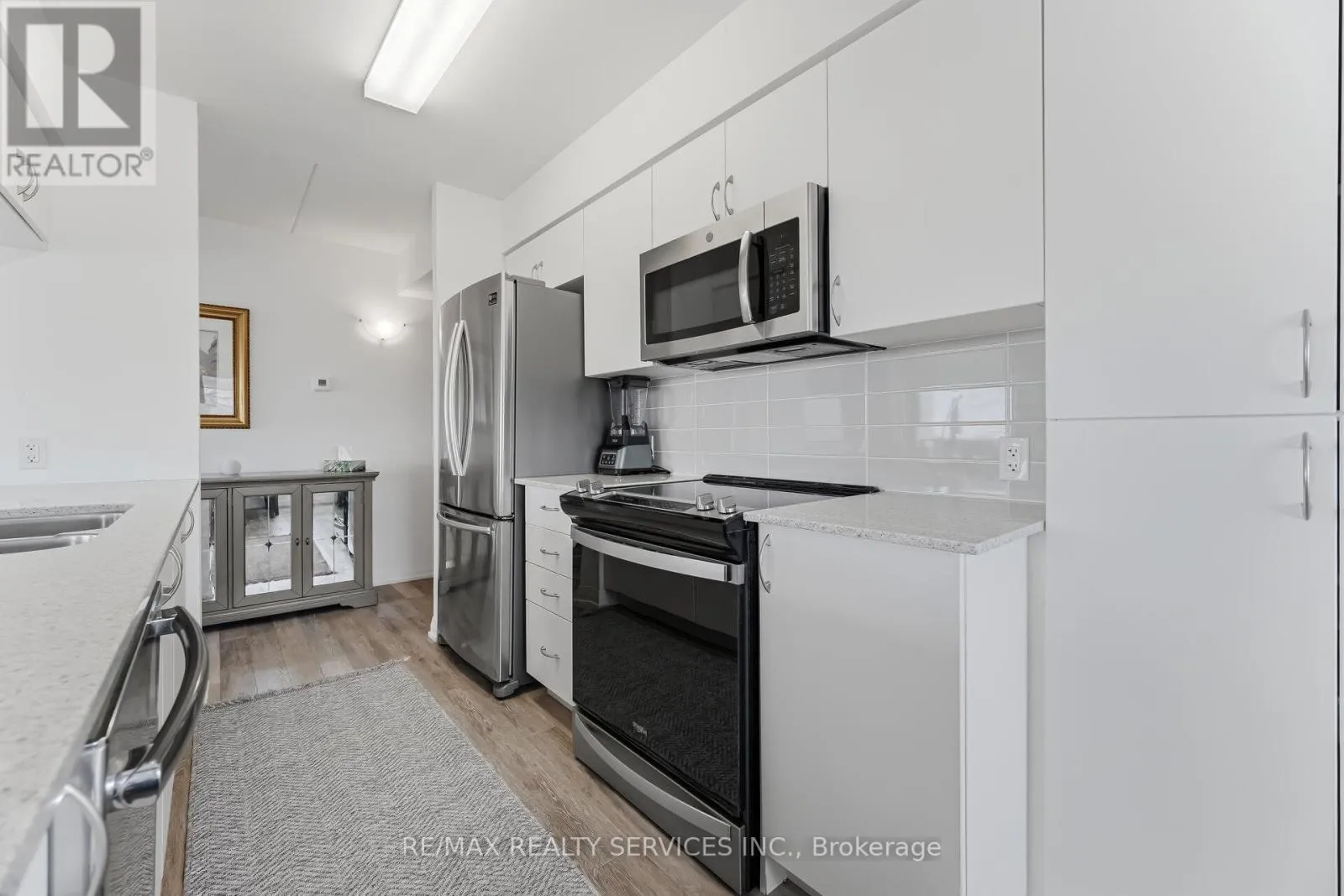 Cross Streets: Sandalwood Pkwy/Golf Links Dr. ** Directions: Sandalwood Pkwy/Golf Links Dr/Via Rosedale. Retirement Living At It's Best!! Located In The Beautiful & Prestigious Gated Community Of "Rosedale Village". This Gorgeous 2 Bedroom Corner Unit "Windsor" Model Offers 1010 Sqft. Lovely Open Concept Eat-in Kitchen W/Quartz Counters, Breakfast Bar, Stainless Steel Fridge, Stove, BI D/W & Microwave. Ceram B-Splash + Upgraded Pantry. Large Living Rm W/Gleaming Laminate Flrs + Walk Out To Open Balcony. 2 Great Size Bedrooms. Primary Bedroom W/Gleaming Laminate Flrs, WICC, 3Pc Ensuite + 2nd W/O To Balcony. 2nd Bdrm W/BI Murphy Bed (+ Desk) & Gleaming Laminate Flrs. Bright Main 4 Pc Bath. Inviting Foyer W/Mirrored Closets W/In Suite Laundry + Storage Closet. 1 Owned Parking Space. 1 Owned Locker. Resort Style Community Includes; Golf, Indoor Pool, Gym, Party Room, Billiards, Tennis, Pickle-Ball, Bocce Ball, Lawn Bowling, Shuffleboard, 24 Hr Security, Social Clubs & More. Conveniently Close To All Amenities!! (id:27476)