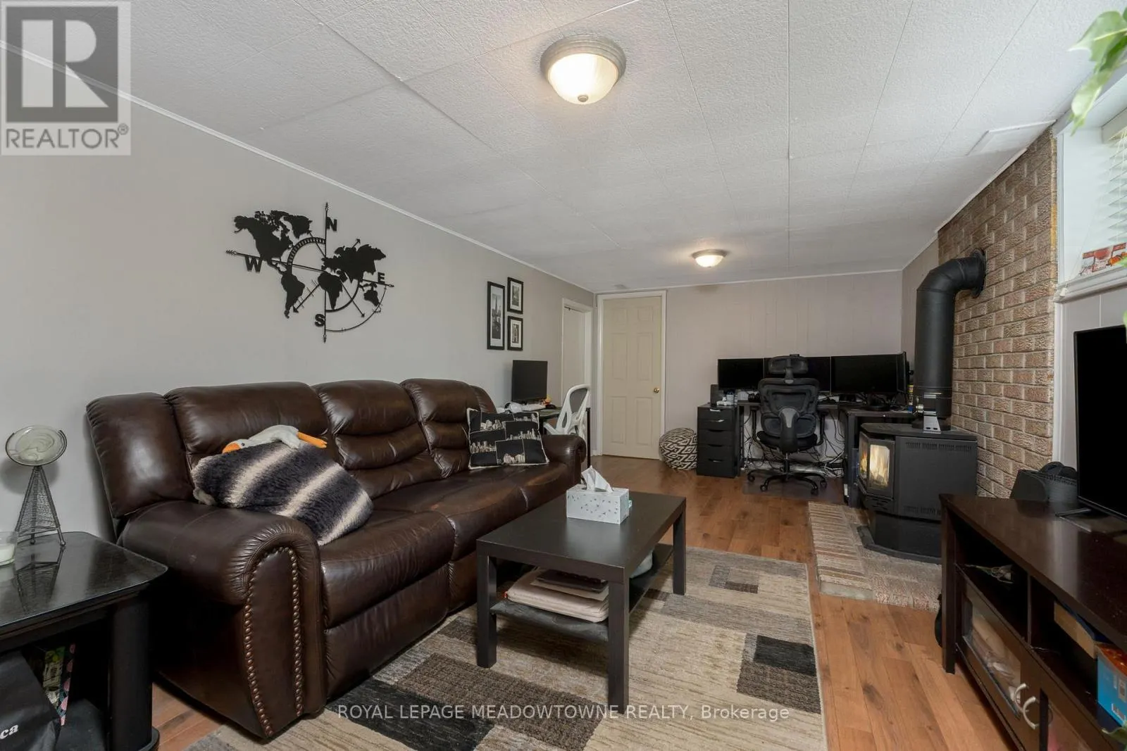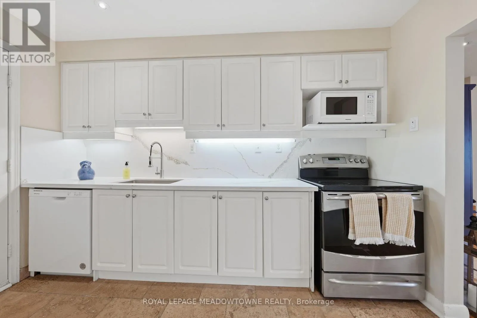 Kennedy Road/Clarence Street Recently updated interior! An excellent, unique opportunity in downtown Brampton - this cute bungalow sits on a huge (!!) corner lot with 2 separate driveways (one accessing Clarence St accessing Lesbury Ave). The Clarence Street driveway easily holds parking for a minimum of 6 vehicles plus a massive 2-car detached garage/workshop with loft storage, 60 amp service, built-in workbenches and newer garage door openers. It would make the perfect garden suite/laneway house for additional income! (Buyer to make their own inquiries regarding this process) The Lesbury Ave driveway comfortably parks 4 vehicles, tandem-style. This beautiful 3-bedroom model features hardwood floors throughout the bedrooms and main living area, a large primary bedroom with large double closets and 2 great sized additional bedrooms both with large closets. The third bedroom has hook ups for laundry should a Buyer wish to convert or add additional laundry in this room. The open concept living space flows perfectly from the bedroom area and holds a bright living room with amazing bay window, dining room just off the kitchen with a breakfast bar and lots of storage. The kitchen has recently been updated with beautiful quartz countertops and backsplash. The main floor is topped off with the bonus feature of a spacious 4-season, sunken family room with gas fireplace and walk-out to the deck to provide extra living space. Ideal for multi-generational families, the basement has a fully separate, updated 1-bedroom in-law suite with separate, private entrance, large kitchen and 3-piece bathroom. With tons of storage in the basement, newer laminate flooring, a separate laundry room and built-in pantry in the kitchen, and gorgeous arches in the entry way, this unit has been wonderfully maintained. The original interior stairs still remain, allowing for an easy conversion back to joining the upper and lower living spaces. (id:27476)