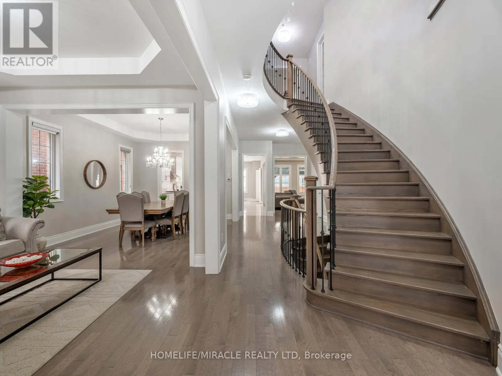 Gordon Randle Drive and Countryside Drive Welcome to luxury living at its finest in this stunning Brampton residence, ideally situated on a quiet, family-friendly crescent and offering approximately 6,000 sq ft of beautifully finished living space designed for both elegance and functionality; this exceptional home features 4 spacious bedrooms and 5 luxurious washrooms, with hardwood flooring throughout and high-end finishes that elevate every room, while the bright, open-concept main living areas are perfect for both everyday living and entertaining; the fully finished basement is a standout, complete with a private theater room, modern kitchen, and fully equipped gym, creating the ultimate in-home lifestyle experience; outside, enjoy professionally landscaped grounds with premium interlocking in both the front and backyard, complemented by sleek glass railings that enhance the home's contemporary curb appeal; additional highlights include a 3-car tandem garage with parking for 4 more vehicles in the driveway (7 total parking spaces), a central vacuum system, and all brand-new appliances under warranty, making this a rare turnkey opportunity in one of Brampton's most desirable neighborhoods. (id:27476)