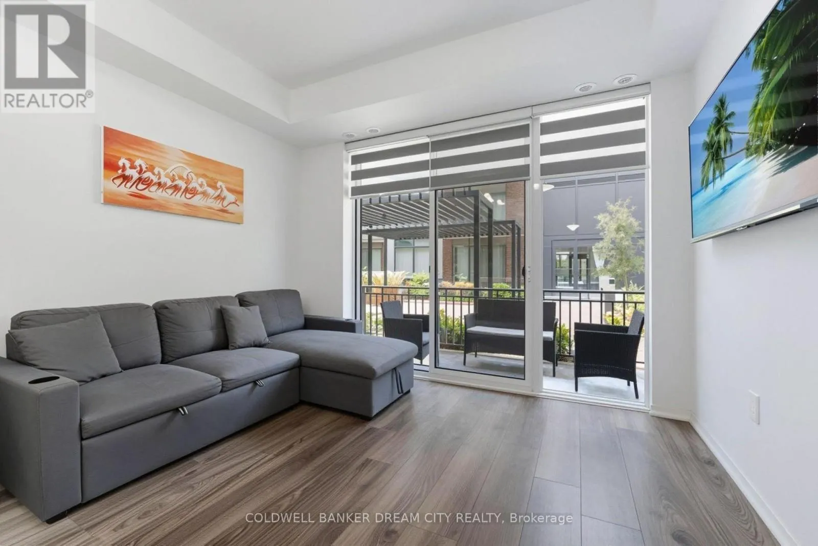 Cross Streets: Gore Rd/Attmar Drive. ** Directions: Follow GPS. Enjoy the convenience of main floor living in this well-maintained 1-bedroom, 1-bath condo apartment-no need for stairs or elevators. This bright and functional unit features an open-concept layout with high ceilings and modern laminate flooring throughout. The updated kitchen is equipped with quartz countertops and stainless steel appliances, perfect for both everyday use and entertaining. Painted in neutral tones, the unit is move-in ready and offers a private balcony for outdoor relaxation. Ideally located close to major amenities including Costco, Hwy 427 & 407, Goreway Meadows Community Centre & Library, schools, places of worship, and shopping plazas. Public transit is within walking distance, adding to the overall convenience. Includes 1 owned parking space and locker. A great opportunity for first-time buyers, downsizers, or investors-don't miss out! (id:27476)