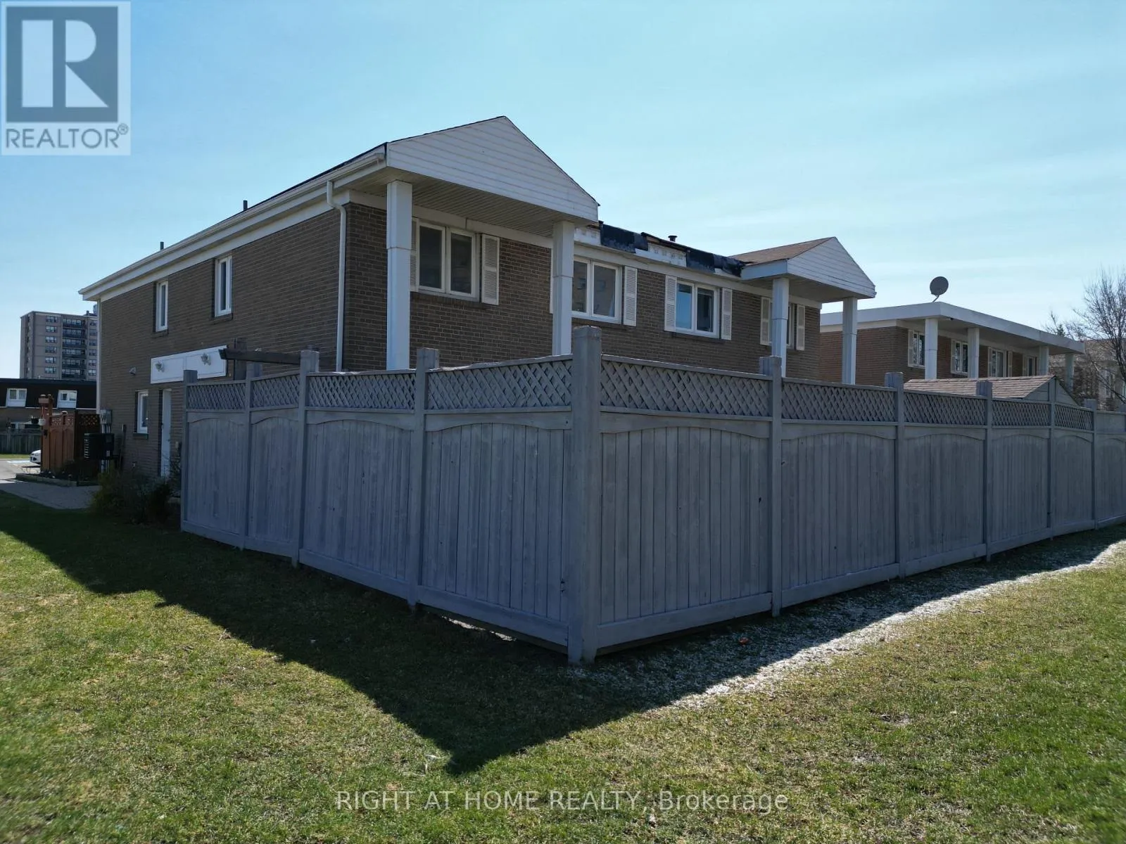 Cross Streets: Steeles and Kennedy. ** Directions: Steeles, North on Kennedy. First-time buyers or those looking to downsize, this home offers fantastic value in a prime location. Situated as an end-unit with no neighbours on one side, it provides added privacy. Conveniently located with easy access to Highway 410 and Steeles Avenue, and within walking distance to Walmart, Costco, Home Depot, and nearby golf. The home features a fully fenced yard with a storage shed, perfect for summer BBQs and outdoor enjoyment. Inside, you'll find a combined open-concept living and dining area with pot lights and a walkout to the backyard, all in a carpet-free interior. The kitchen comes complete with appliances, while the upper level offers three generously sized bedrooms, each with large closets, and a 4-piece bathroom with a tub. The finished basement offers additional living space with a versatile rec room, ideal for a teen retreat or family movie nights, and includes a window for natural light. A laundry area with appliances and a convenient utility sink completes the space. Includes one private parking space located next to the unit, plus ample visitor parking. Hot water tank is owned with no rental fees. (id:27476)