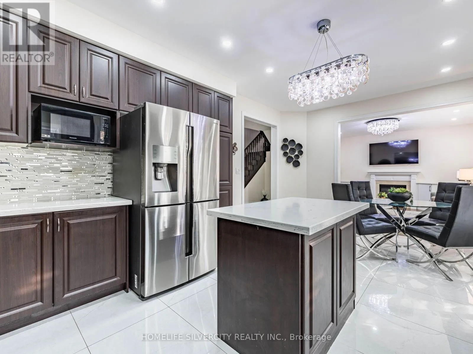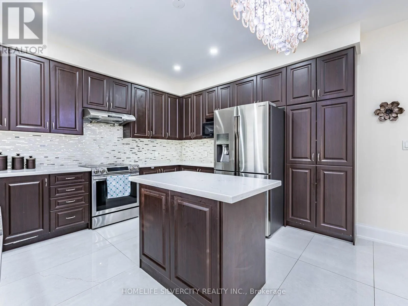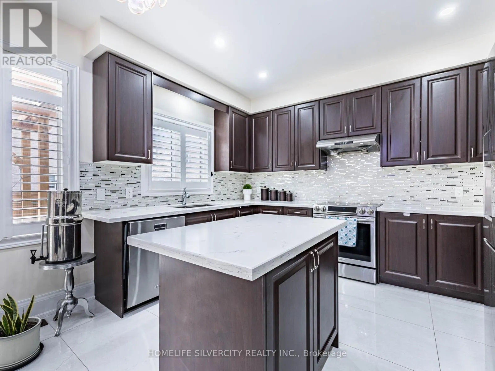 Countryside Rd & McVean Dr Welcome to this stunning and spacious 5-bedroom home located in a prestigious, family-friendly neighborhood. Featuring a grand double-door entry, this home showcases elegant 2x4 tiles in the kitchen, powder room, and entry hallway. Gleaming hardwood flooring extends throughout the main living areas, adding warmth and sophistication. The main floor includes a dedicated study with custom office cabinetry, perfect for working from home, along with built-in storage cabinets for added convenience. The chef's kitchen offers a highly functional layout and flows seamlessly into the cozy family room, which opens to the backyard. Here, you'll find a beautiful pergola on a concrete patio-ideal for relaxing or entertaining. The fully finished legal basement features a separate entrance, providing excellent income potential. Additional upgrades include pot lights and newly poured concrete leading to the basement entrance. The primary bedroom offers access to a private Ensuite bathroom, ensuring comfort and privacy. Located directly across from a kids' park and close to schools and major highways, this home is perfectly situated for families. (id:27476)