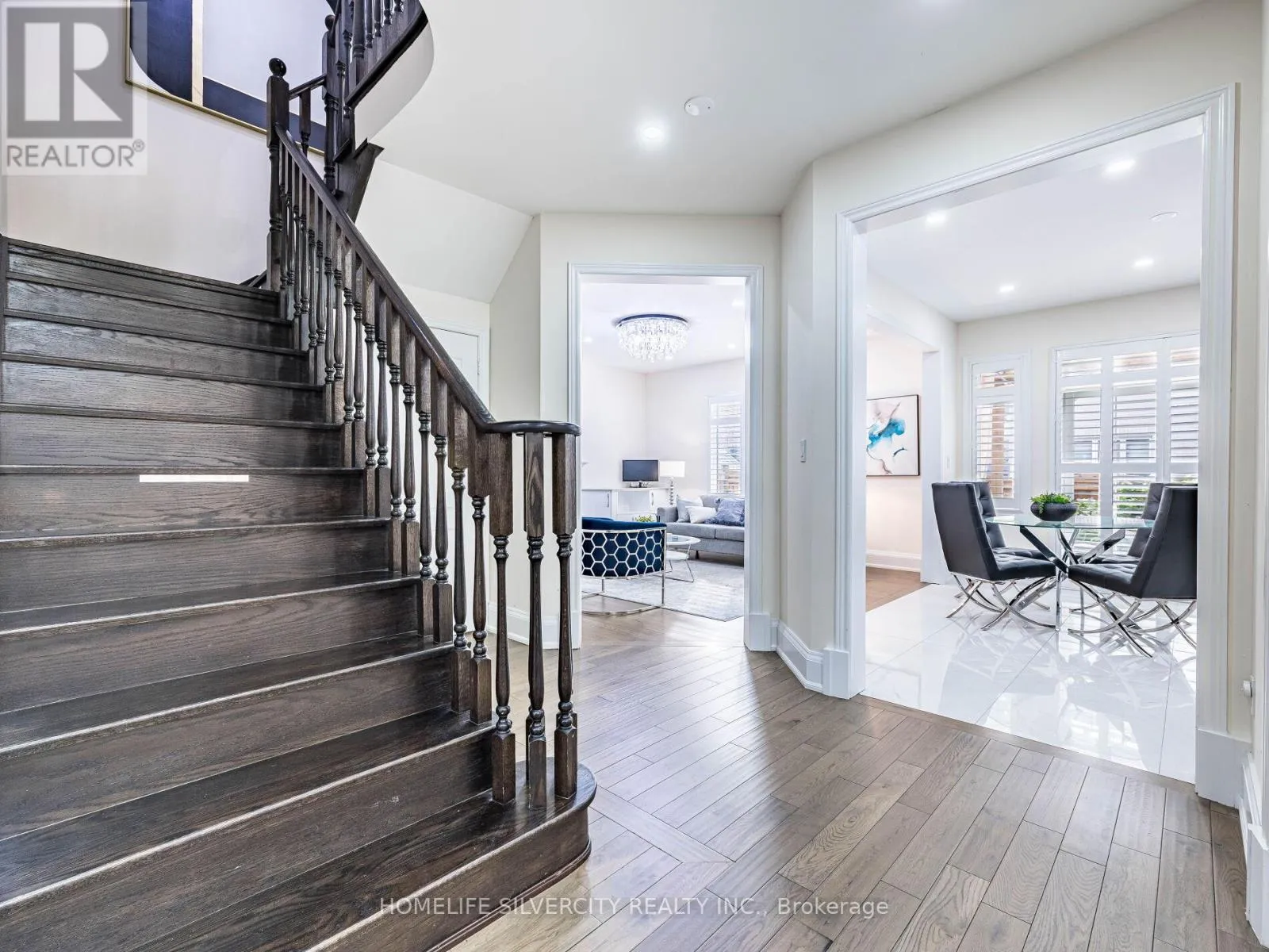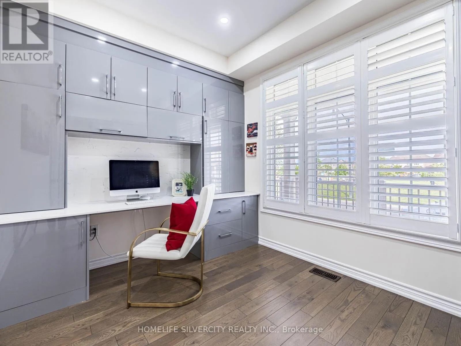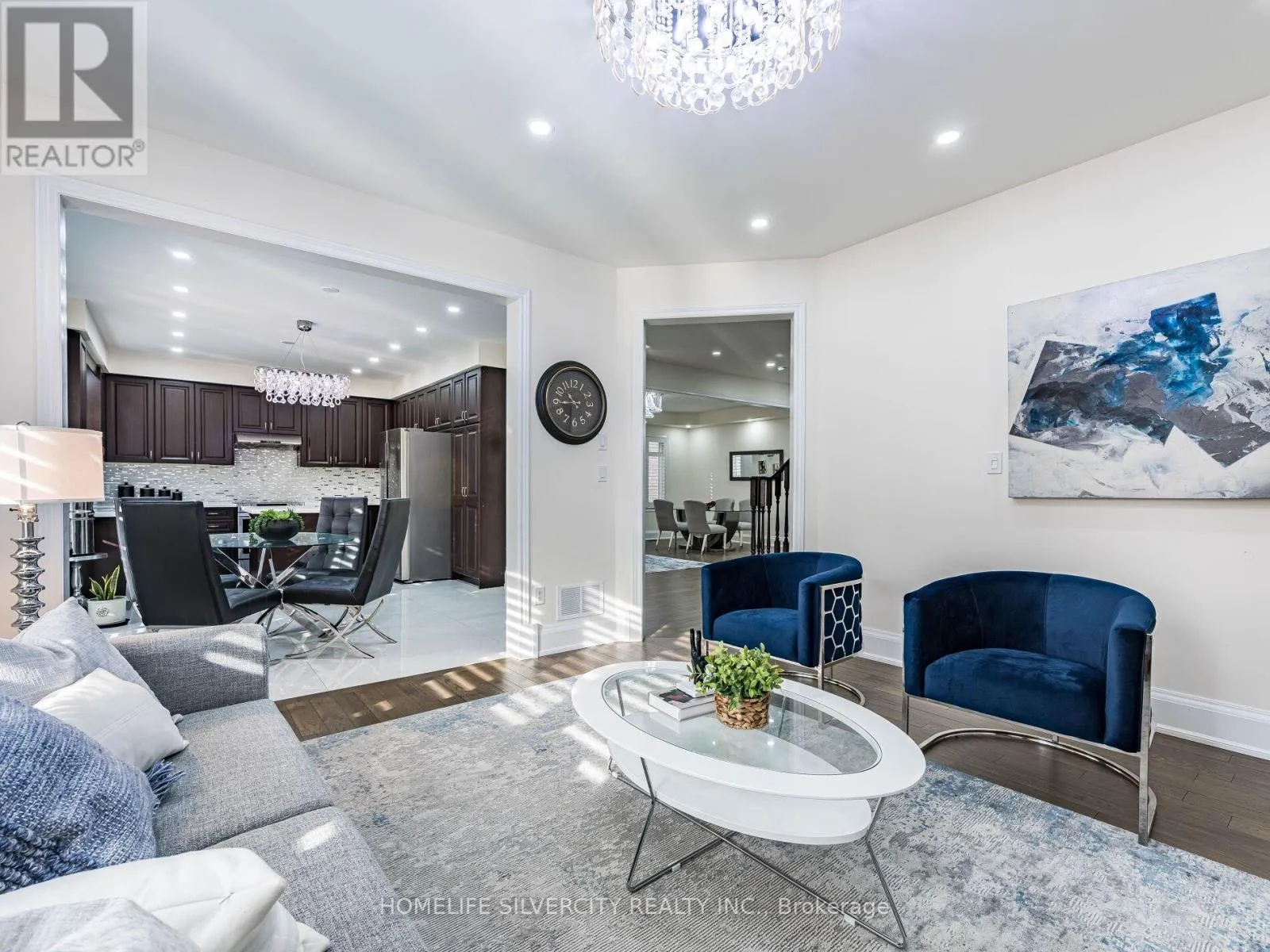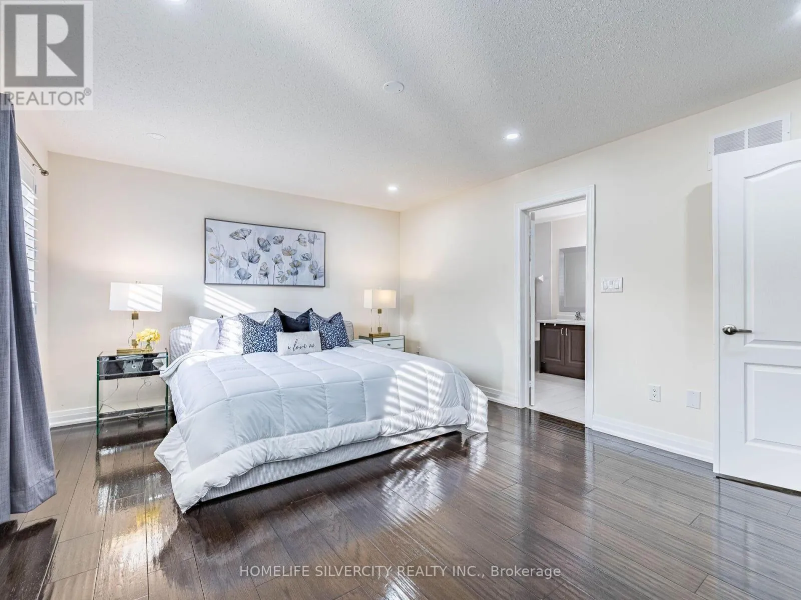 Countryside Rd & McVean Dr Welcome to this stunning and spacious 5-bedroom home located in a prestigious, family-friendly neighborhood. Featuring a grand double-door entry, this home showcases elegant 2x4 tiles in the kitchen, powder room, and entry hallway. Gleaming hardwood flooring extends throughout the main living areas, adding warmth and sophistication. The main floor includes a dedicated study with custom office cabinetry, perfect for working from home, along with built-in storage cabinets for added convenience. The chef's kitchen offers a highly functional layout and flows seamlessly into the cozy family room, which opens to the backyard. Here, you'll find a beautiful pergola on a concrete patio-ideal for relaxing or entertaining. The fully finished legal basement features a separate entrance, providing excellent income potential. Additional upgrades include pot lights and newly poured concrete leading to the basement entrance. The primary bedroom offers access to a private Ensuite bathroom, ensuring comfort and privacy. Located directly across from a kids' park and close to schools and major highways, this home is perfectly situated for families. (id:27476)