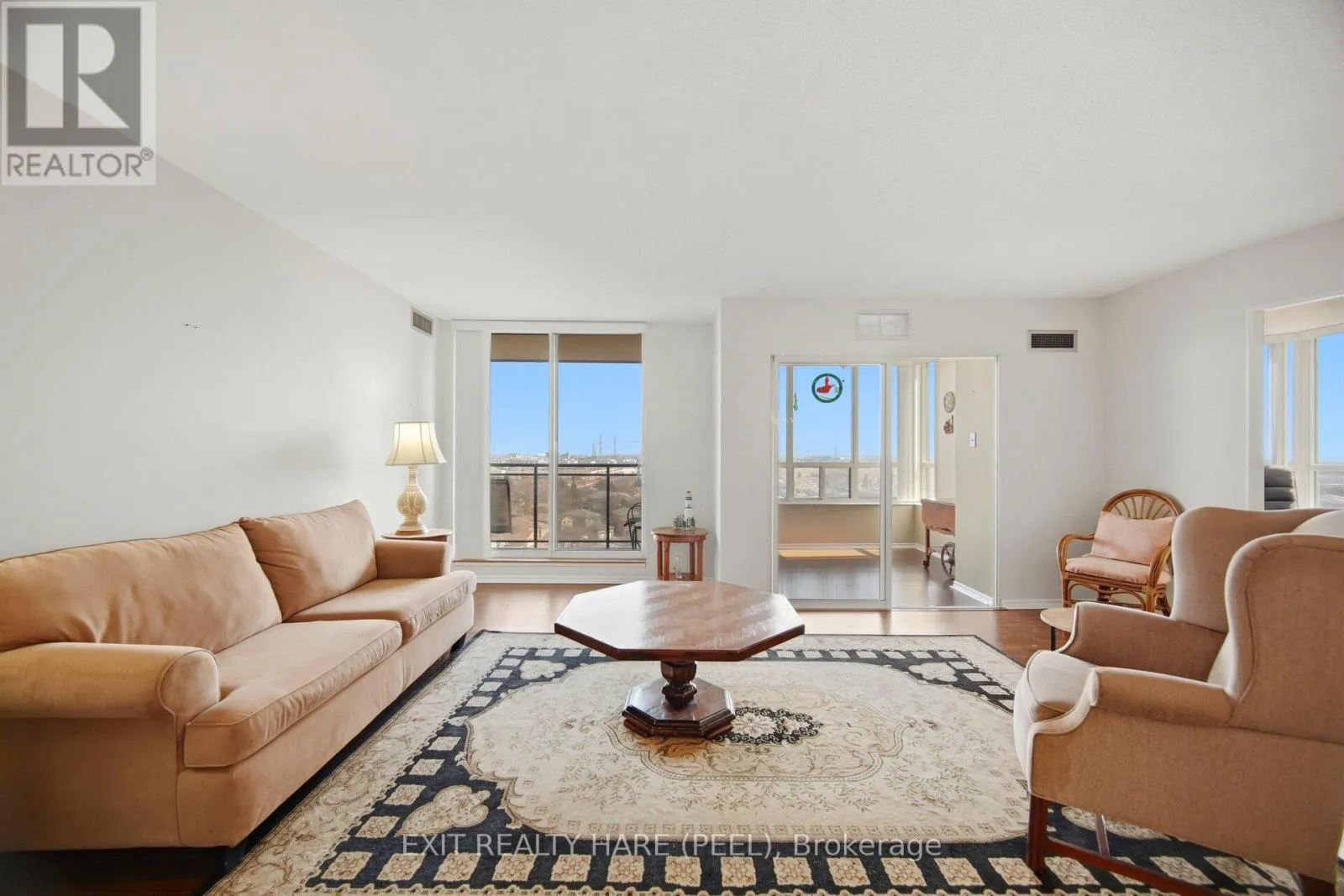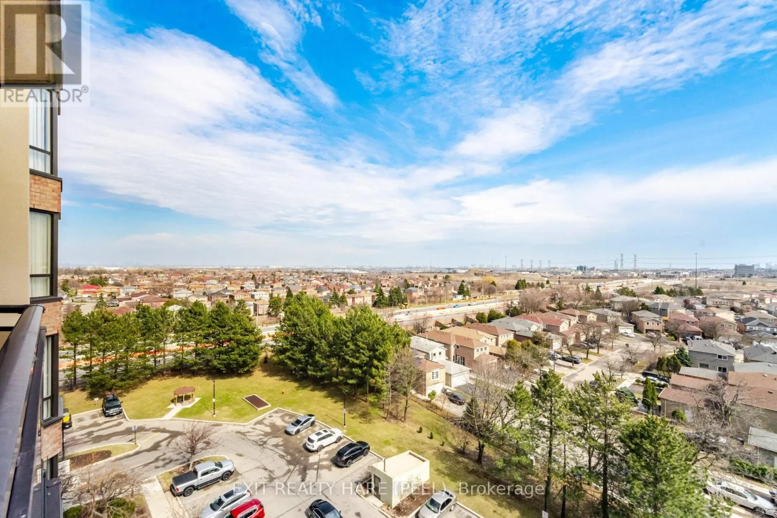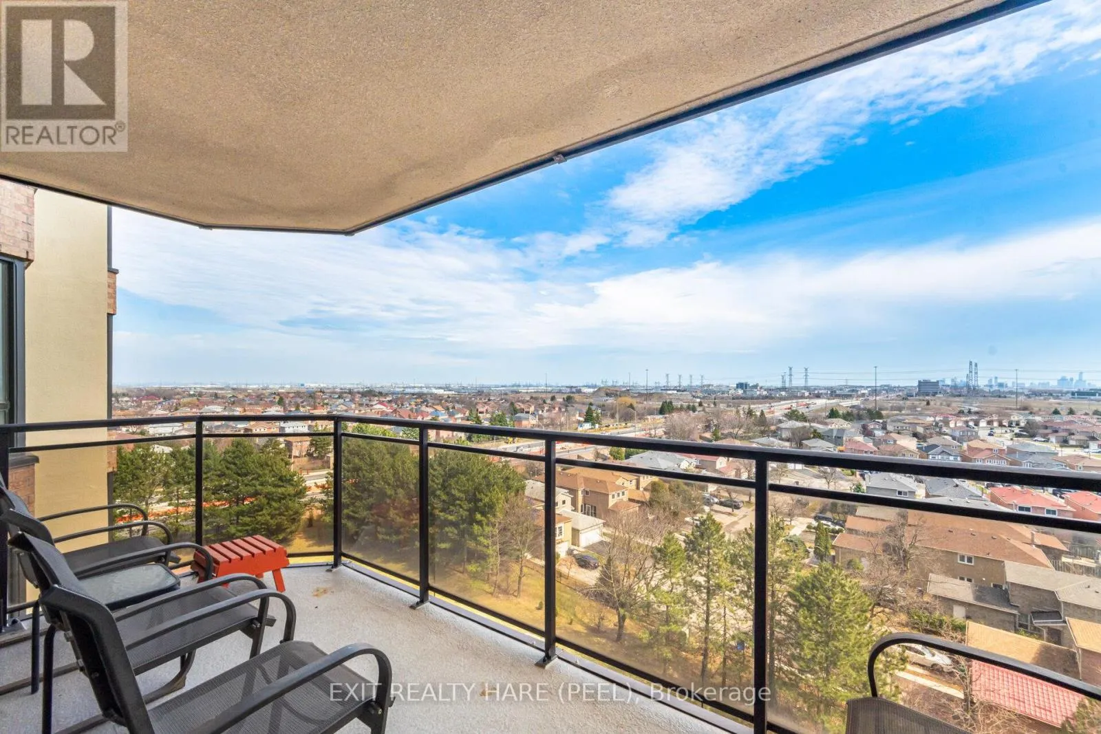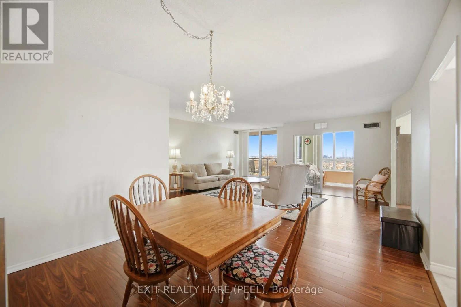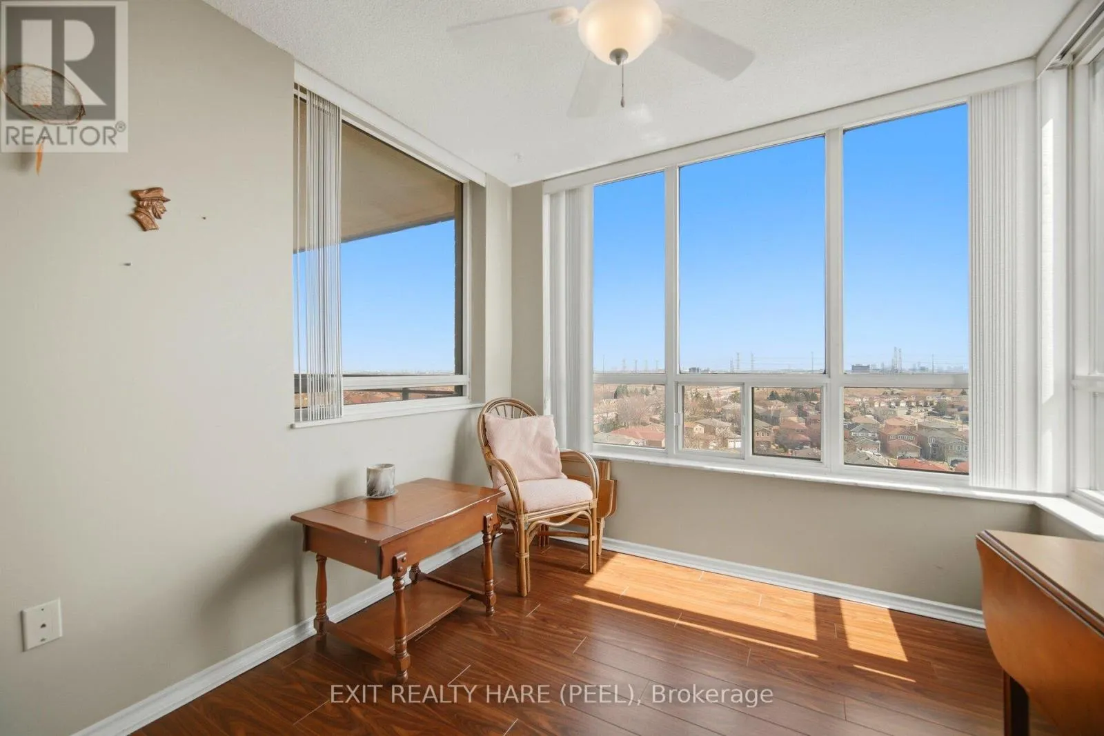 Hurontario St/ Ray Lawson Blvd Beautiful "home in the sky" offering stunning views and an expansive layout! This bright and spacious condo features 2 bedrooms, 2 full bathrooms, plus a versatile den and a sun-filled solarium-perfect as an additional living space, reading room, or retreat. Oversized ensuite laundry room, 2 parking spots (Tandem) and locker. Enjoy the large living area with a defined dining space, ideal for entertaining. The eat-in kitchen features newer wood cabinetry and s/s appliances. Updated flooring throughout adds a fresh, modern feel. The primary suite includes updated bathroom cabinetry and an accessible shower, W/I closet. Step out onto your private balcony and take in the view. A true gem with incredible amenities including an outdoor pool, sauna, tennis court, squash courts, shuffle board, library, billiards rm, outdoor BBQ area, putting green, party rm and a fitness room. Close to Shoppers World, Schools, Brampton Transit, Easy Access To 401, 407 and 403 Highways, and Steps To The Coming-Soon Hurontario LRT!! Shows 10+. (id:27476)