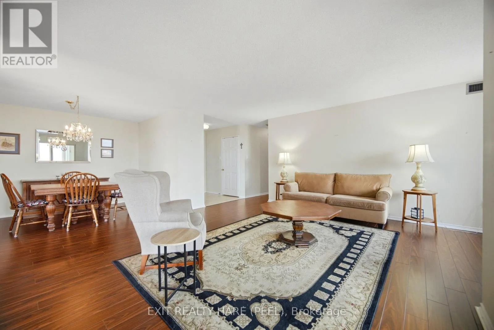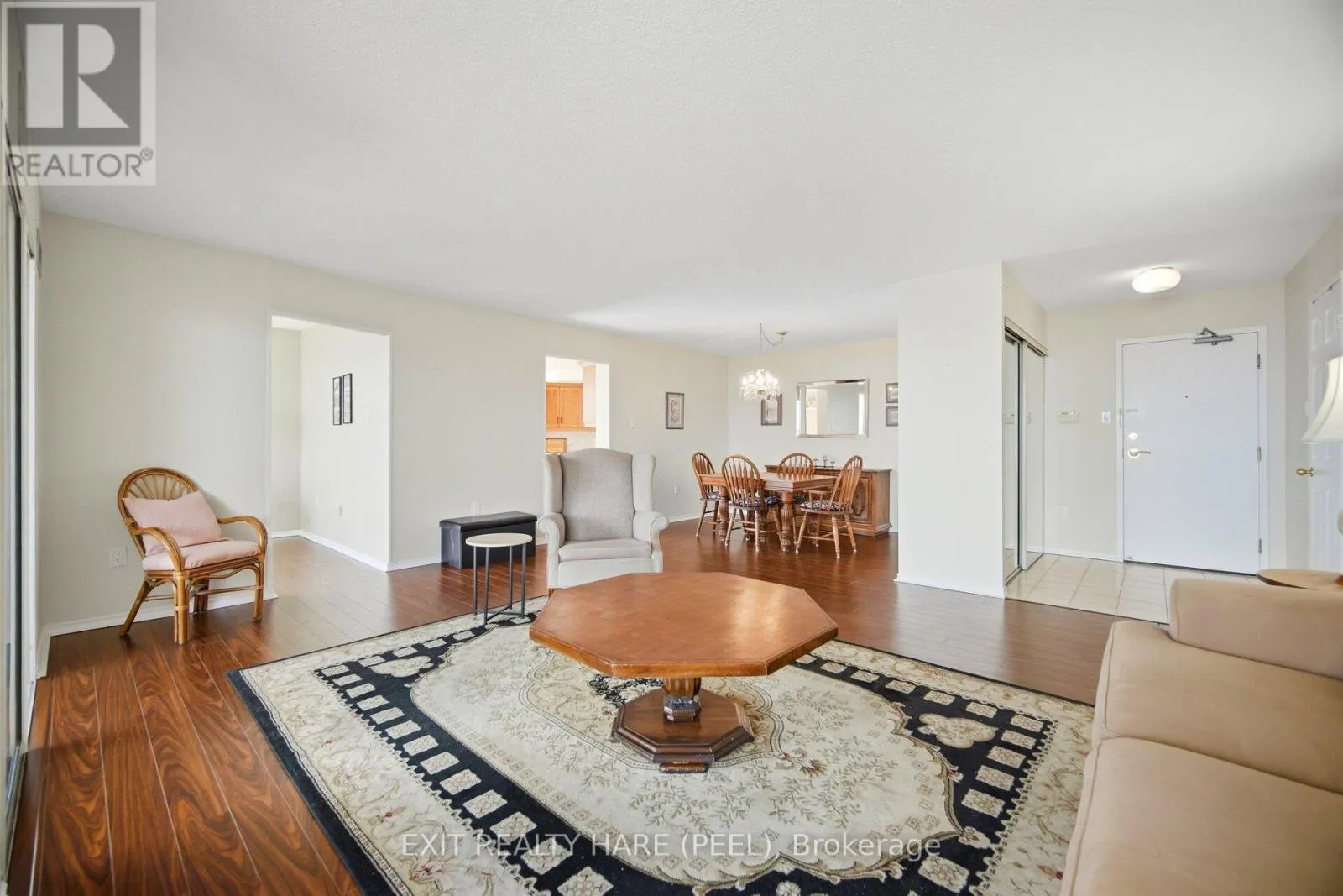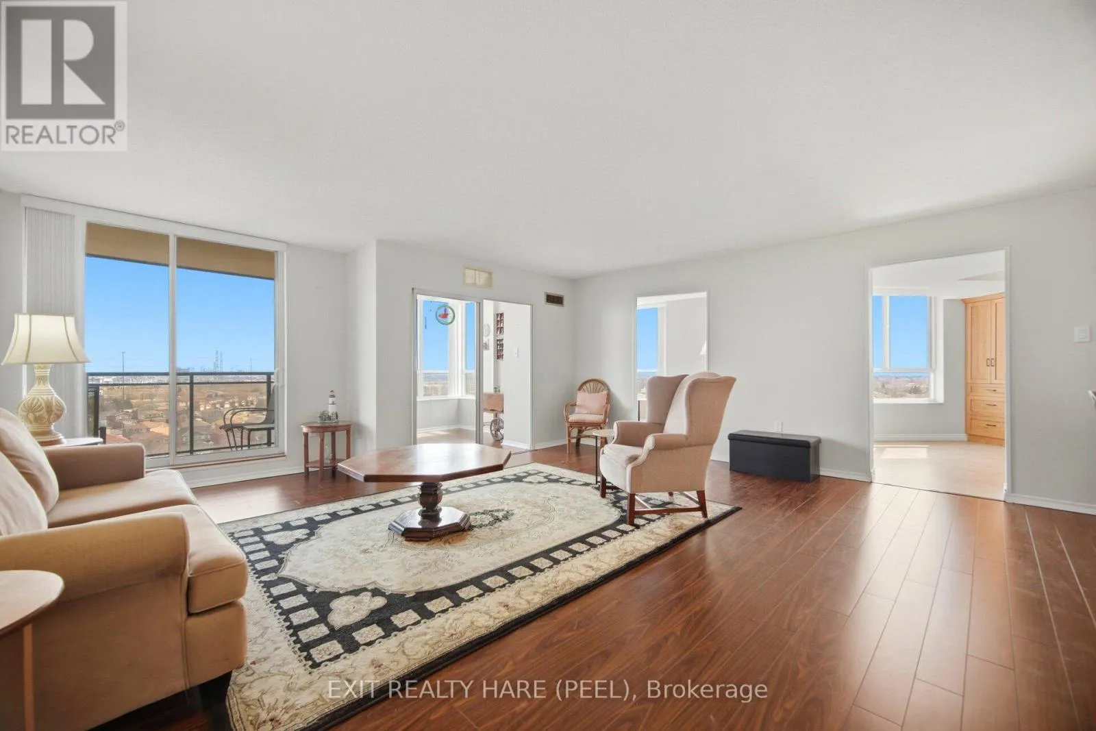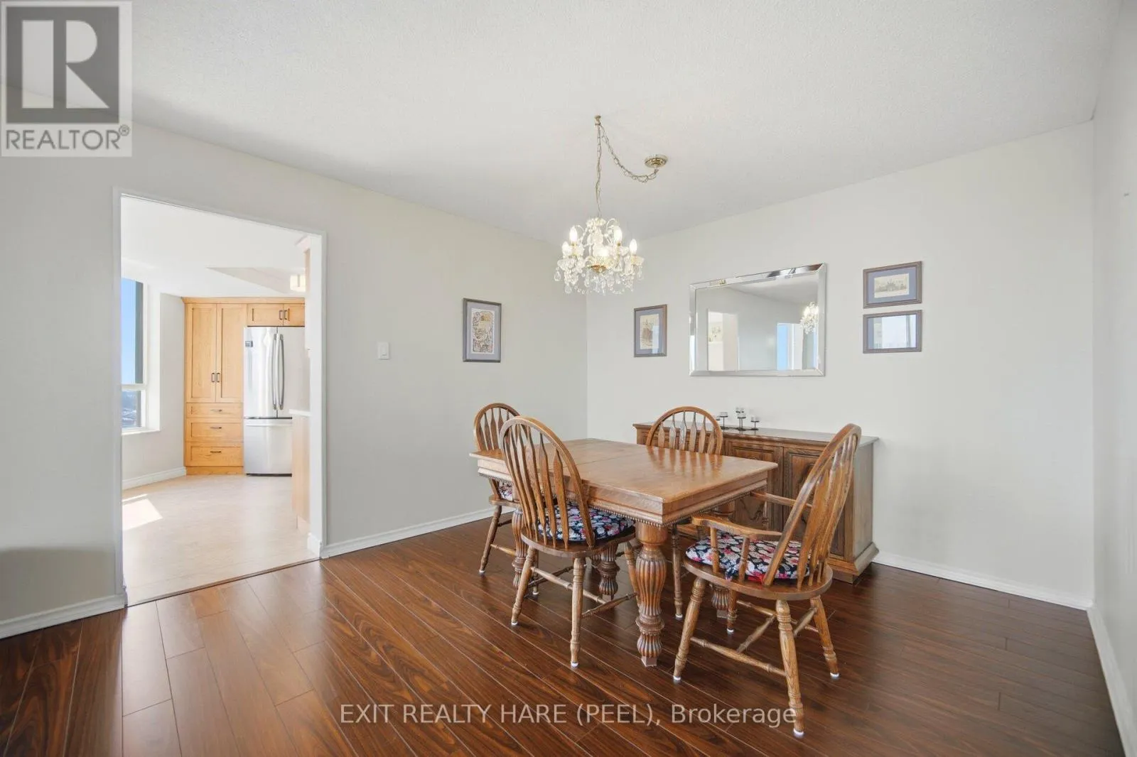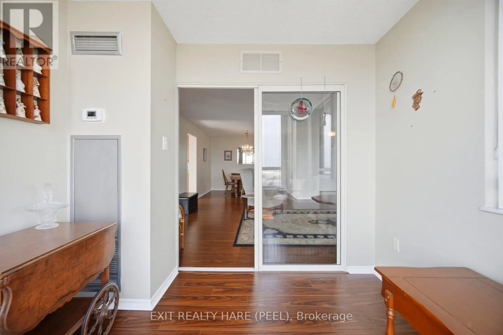 Hurontario St/ Ray Lawson Blvd Beautiful "home in the sky" offering stunning views and an expansive layout! This bright and spacious condo features 2 bedrooms, 2 full bathrooms, plus a versatile den and a sun-filled solarium-perfect as an additional living space, reading room, or retreat. Oversized ensuite laundry room, 2 parking spots (Tandem) and locker. Enjoy the large living area with a defined dining space, ideal for entertaining. The eat-in kitchen features newer wood cabinetry and s/s appliances. Updated flooring throughout adds a fresh, modern feel. The primary suite includes updated bathroom cabinetry and an accessible shower, W/I closet. Step out onto your private balcony and take in the view. A true gem with incredible amenities including an outdoor pool, sauna, tennis court, squash courts, shuffle board, library, billiards rm, outdoor BBQ area, putting green, party rm and a fitness room. Close to Shoppers World, Schools, Brampton Transit, Easy Access To 401, 407 and 403 Highways, and Steps To The Coming-Soon Hurontario LRT!! Shows 10+. (id:27476)