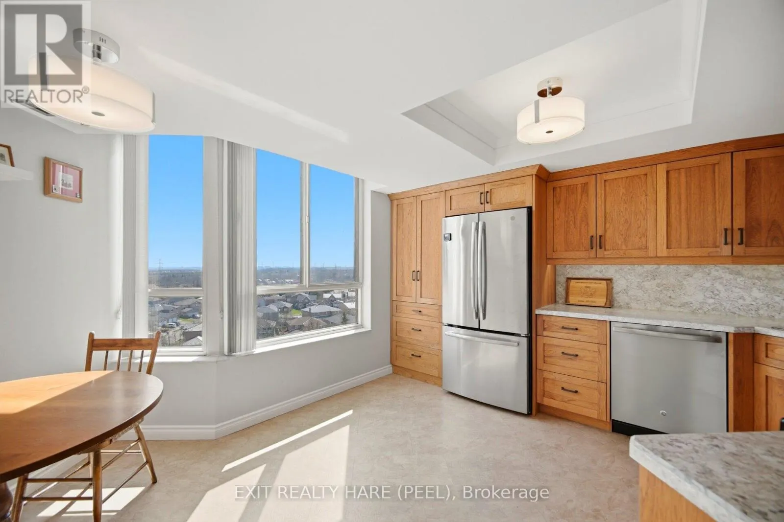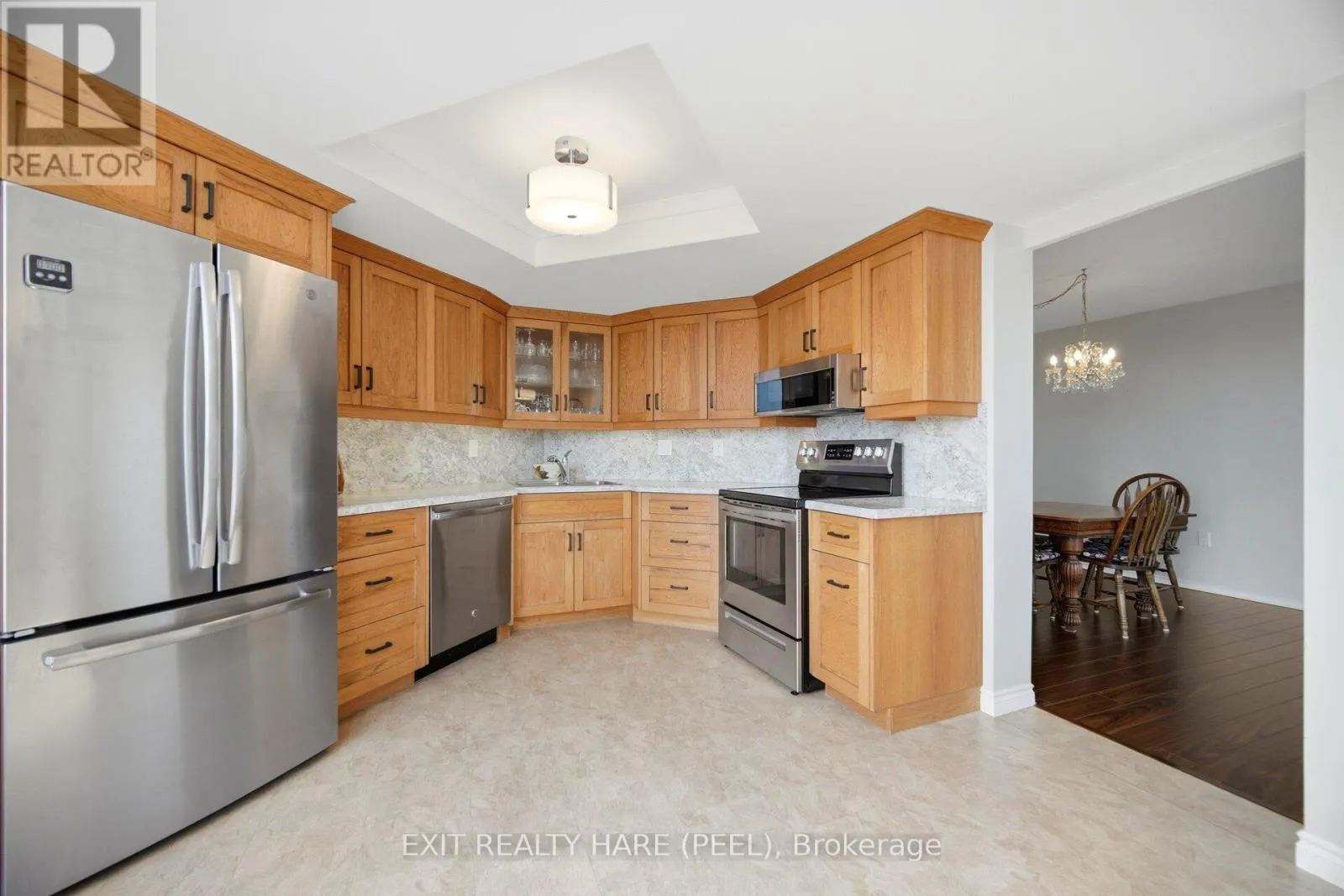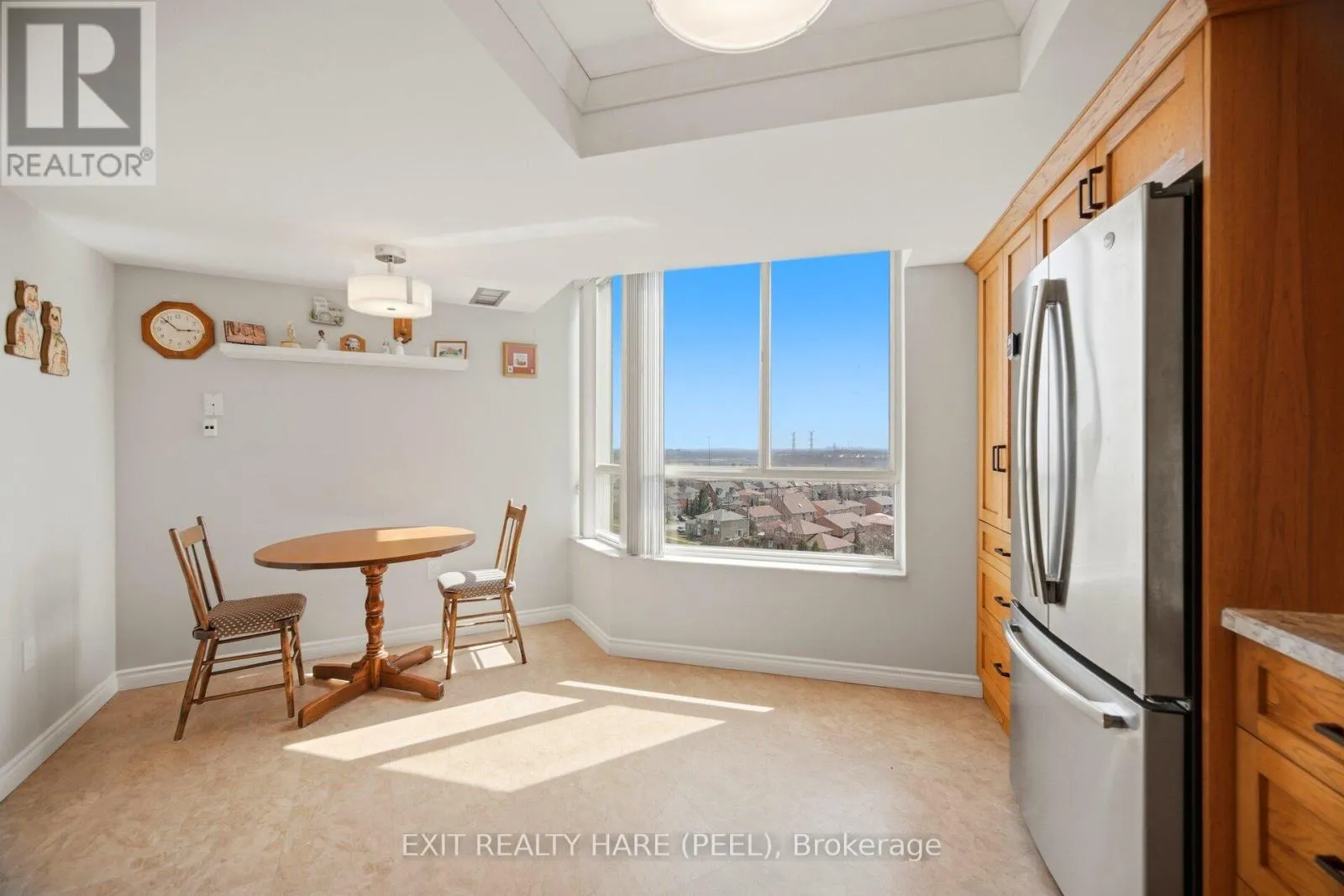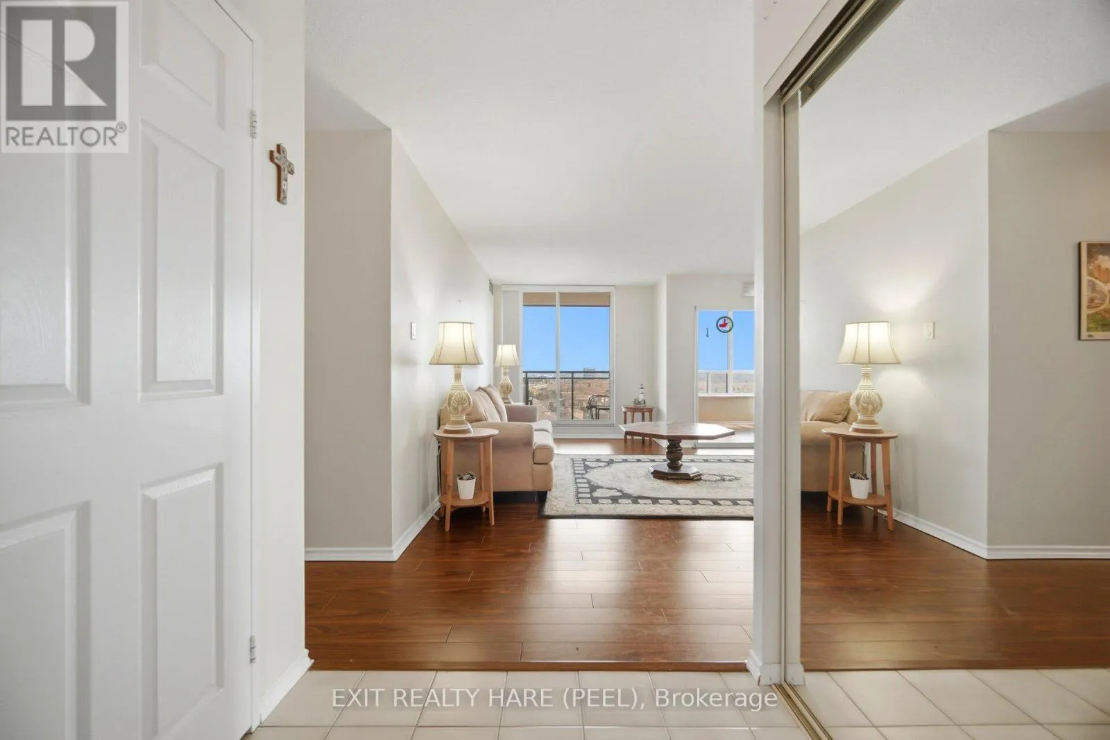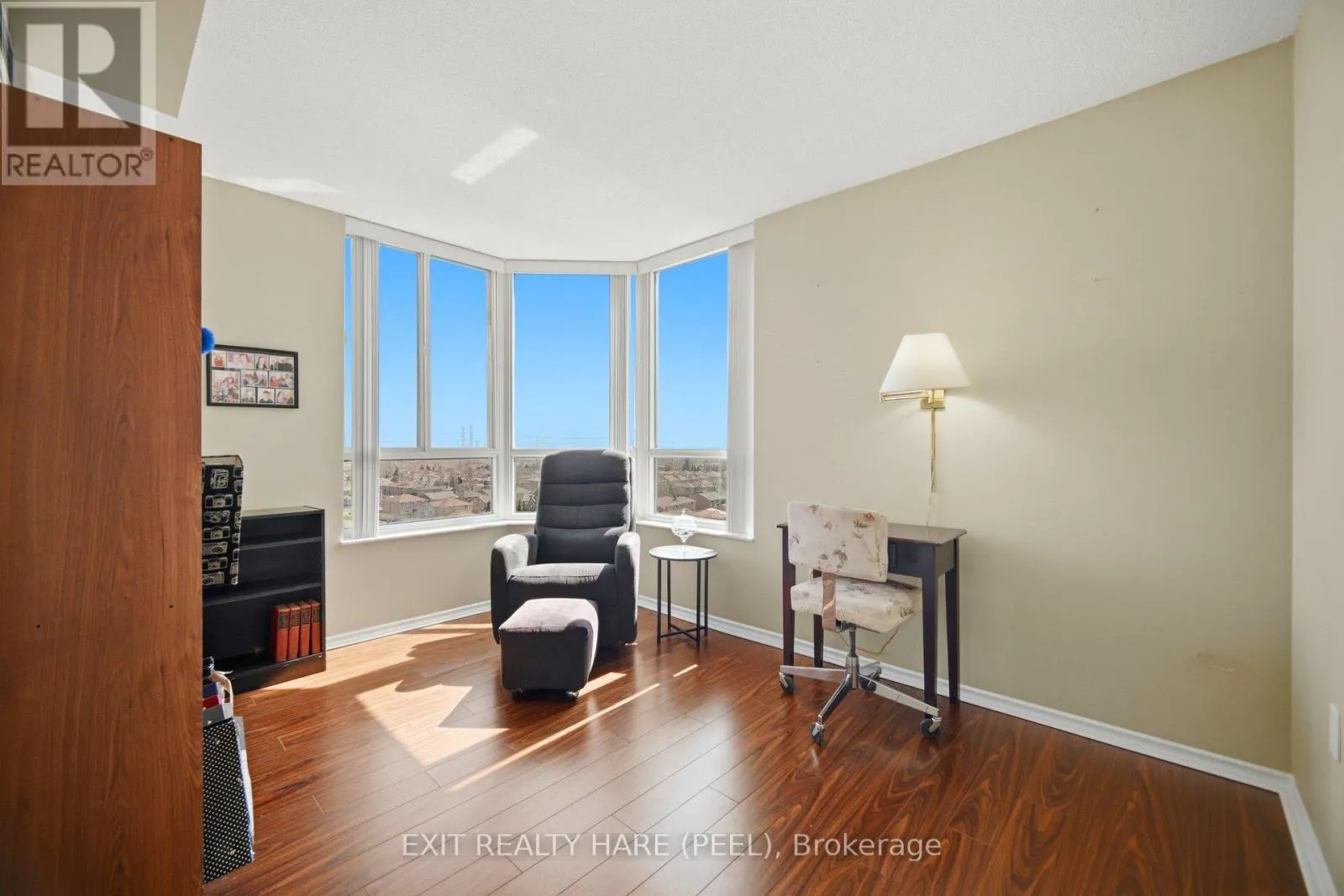 Hurontario St/ Ray Lawson Blvd Beautiful "home in the sky" offering stunning views and an expansive layout! This bright and spacious condo features 2 bedrooms, 2 full bathrooms, plus a versatile den and a sun-filled solarium-perfect as an additional living space, reading room, or retreat. Oversized ensuite laundry room, 2 parking spots (Tandem) and locker. Enjoy the large living area with a defined dining space, ideal for entertaining. The eat-in kitchen features newer wood cabinetry and s/s appliances. Updated flooring throughout adds a fresh, modern feel. The primary suite includes updated bathroom cabinetry and an accessible shower, W/I closet. Step out onto your private balcony and take in the view. A true gem with incredible amenities including an outdoor pool, sauna, tennis court, squash courts, shuffle board, library, billiards rm, outdoor BBQ area, putting green, party rm and a fitness room. Close to Shoppers World, Schools, Brampton Transit, Easy Access To 401, 407 and 403 Highways, and Steps To The Coming-Soon Hurontario LRT!! Shows 10+. (id:27476)