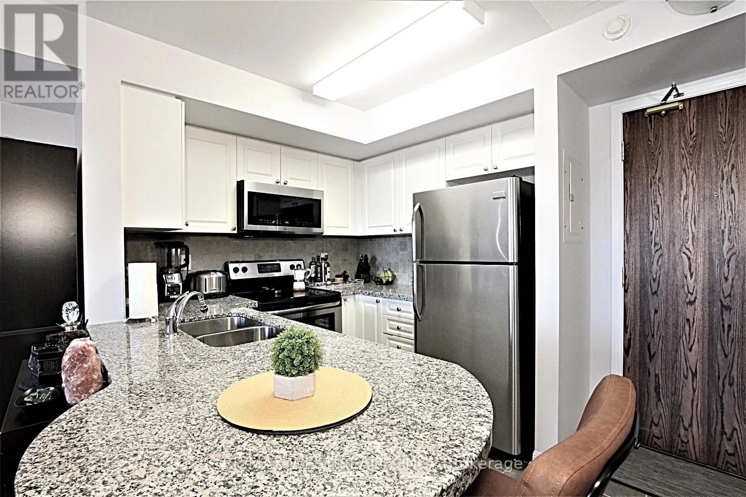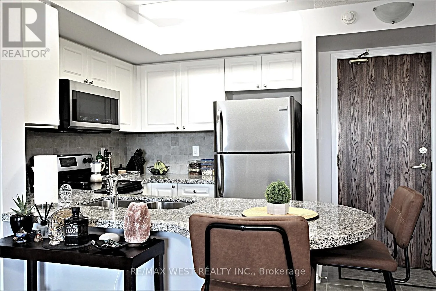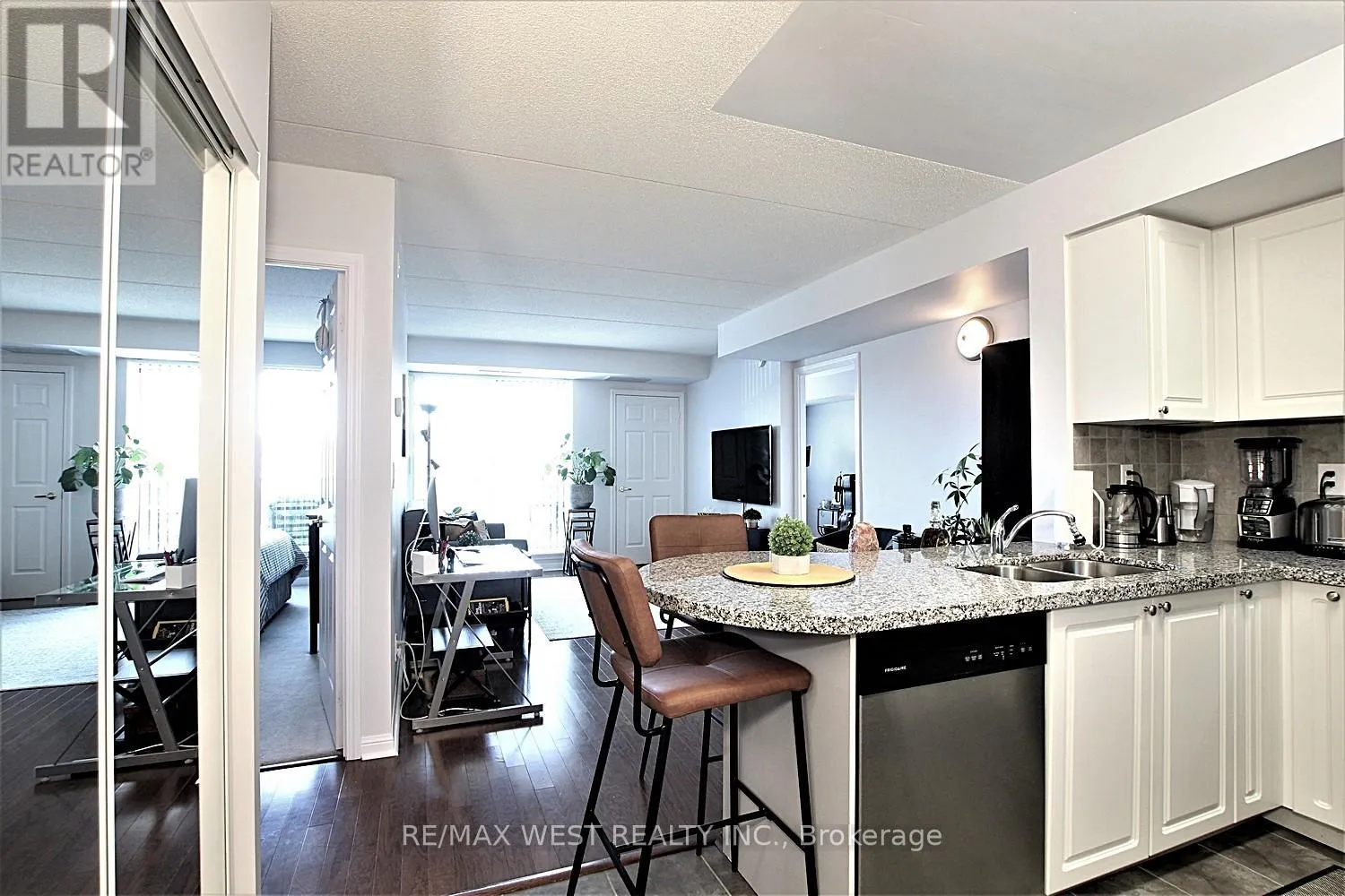 Cross Streets: Sandalwood Pkwy between Hwy 410 and Dixie Road. ** Directions: North on Golf Link Drive (past the gate house) from Sandalwood Pkwy East, take Via Rosedale - circle to the right, and #65 is the 4th building on the right. Welcome to the Chamberlain at Rosedale Village, a gated condominium community known for its well-maintained grounds and extensive amenities. This sun-filled two-bedroom suite offers a practical split floor plan with bedrooms on opposite sides, a long north-facing balcony, a generous living area, and a kitchen with granite countertops and a breakfast bar. The living and dining area features laminate flooring, with ceramic flooring in the foyer, kitchen, and bathroom. The primary bedroom is spacious, and both the living room and primary bedroom include sliding glass doors to the balcony. One underground parking space and a storage locker are included in the rent. Rosedale Village offers exceptional amenities, including a 9-hole golf course, tennis courts, shuffleboard, lawn bowling, numerous parkettes, and a clubhouse with an indoor pool, sauna, exercise room, lounge, party room, and an auditorium. A 24-hour gatehouse provides controlled access for residents and guests. This condo building is convenient to shopping, Highway 410, Heart Lake Conservation Park, and exceptionally long walking, cycling, and jogging trails throughout the Etobicoke Creek Trail system. Please note that the photos were taken when the condo was previously occupied by the owner. (id:27476)
