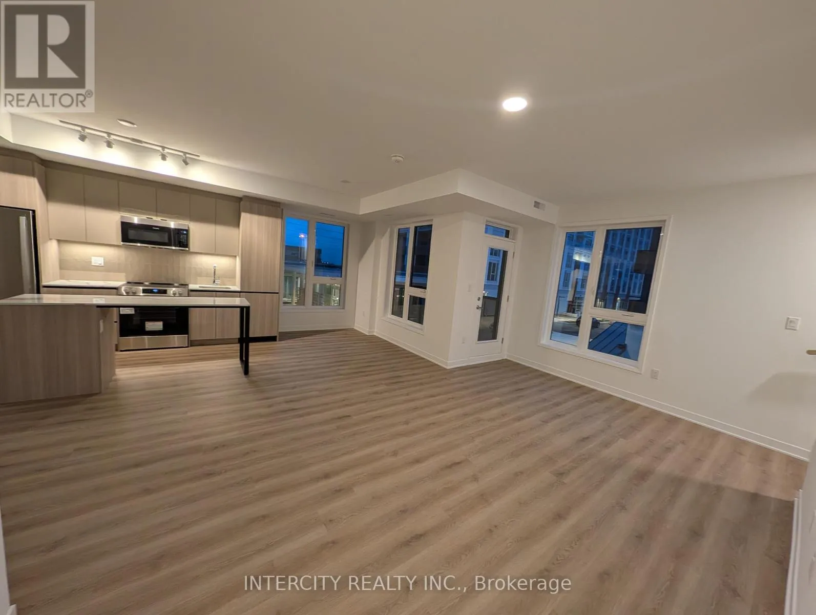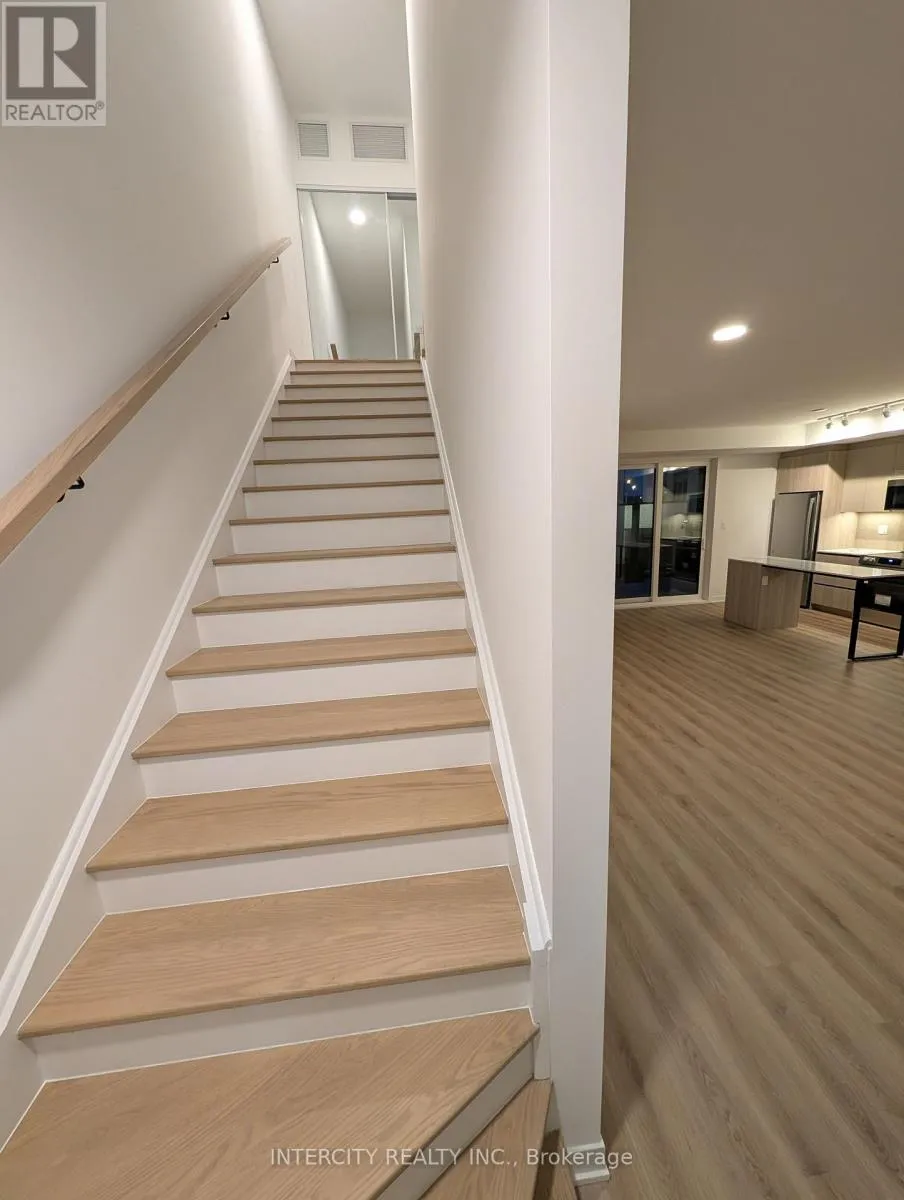 Bovaird Dr & Mississauga Rd Brand-new, sun-filled end-unit townhouse in sought-after MPV2 community near Mount Pleasant GO Station. Approx. 1,726 sq ft total (1,328 sq ft interior + 398 sq ft outdoor). Spacious layout with upgraded finishes and hardwood flooring throughout, including bedrooms; carpet only on entrance steps. Features private landscaped terrace with flower bed and 2 balconies, one off the primary bedroom and one off the living/dining area. Bright end unit with extra windows for abundant natural light. Includes 1 underground parking plus visitor/street parking. Walking distance to GO Station and plaza with grocery, dining, and essentials. Premium amenities in adjacent high-rise; fob access and concierge. Stair access to parking from south-side garage (right door, fob). First & last month's rent by certified funds. Rental application, credit report, employment letter, pay stubs & IDs required. No pets & no smoking. Tenant responsible for all utilities and hot water tank (HWT) rental. (id:27476)