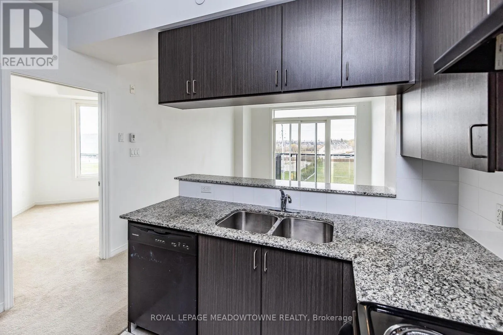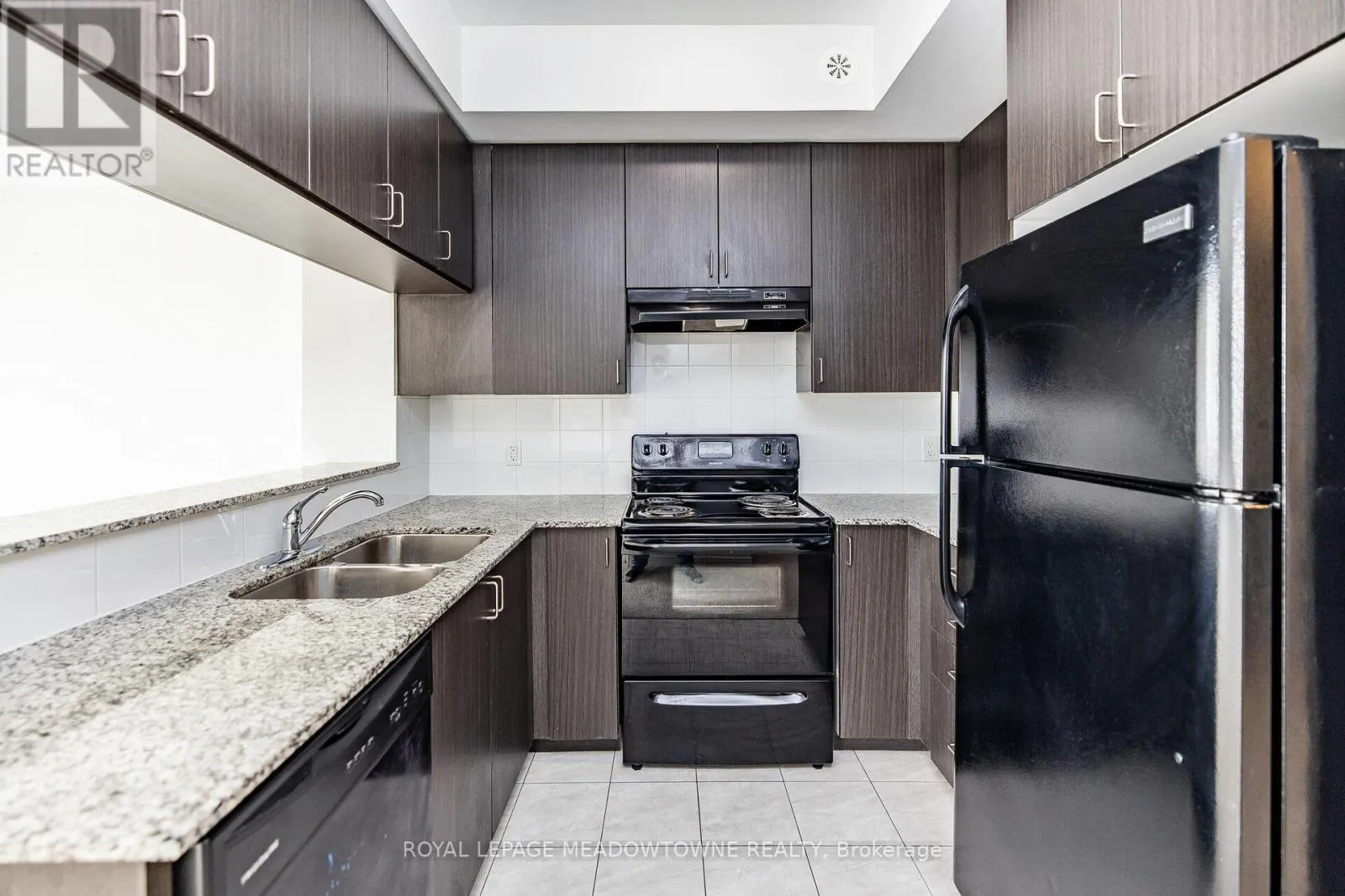 MISSISSAUGA RD & STEELES AVE Bright and spacious 1 bedroom, 1 bathroom corner unit in the highly desirable Brampton West area, right on the border of Mississauga and Brampton. This open concept unit is filled with natural light from large windows and features a private balcony with beautiful unobstructed views. Well designed layout with Laminate flooring throughout, a functional kitchen with granite countertops and a breakfast bar, perfect for everyday living. The bathroom also features a granite vanity, and the unit includes convenient ensuite laundry. Comes with all appliances and one parking space for added convenience. Ideally located just minutes to Highways 401, 407, and 410, GO Transit, Eldorado Park, Lionhead Golf Club, schools, grocery stores, restaurants, medical offices, banks, and shopping. ***Unit fully renovated with laminated, floors throughout and updated bathroom with quartz counter. Unit is fully carpet free*** (id:27476)