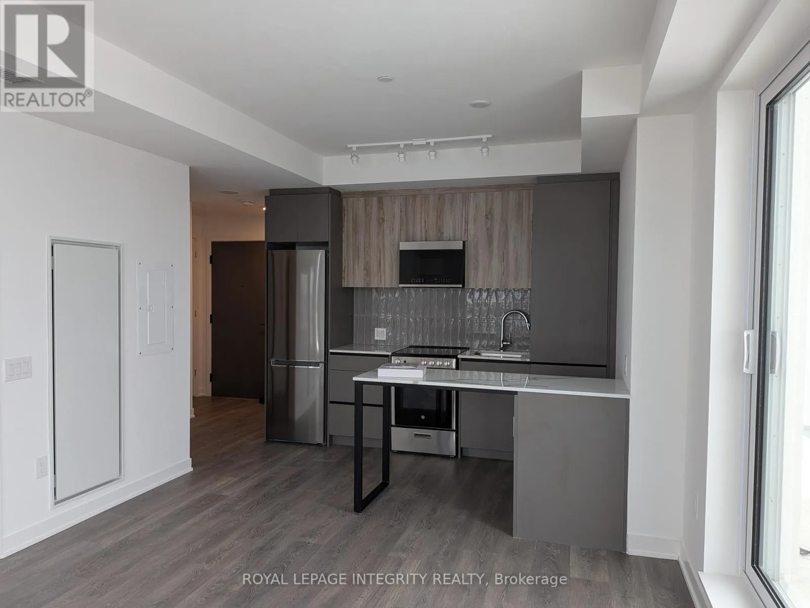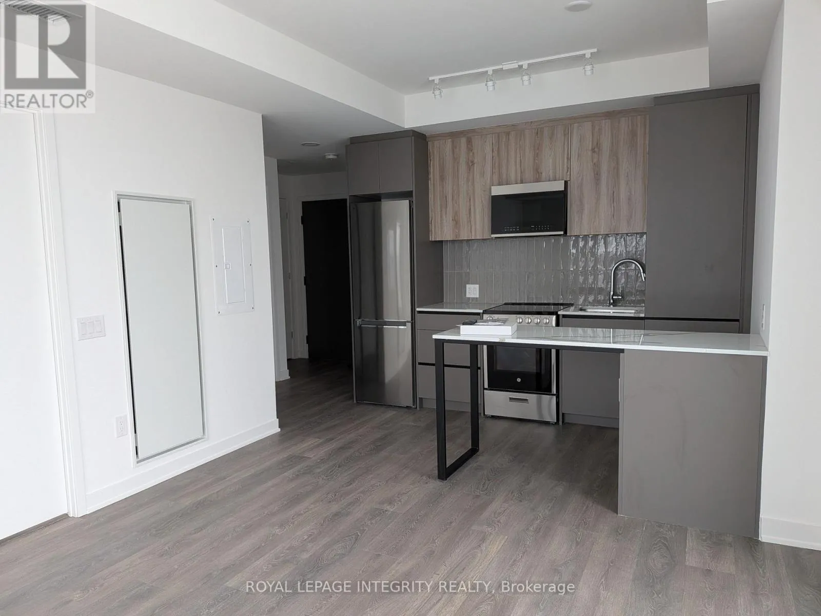 Bovaird Drive West X Mississauga Road Available IMMEDIATELY, This BRAND NEW Daniels Low Carbon Community. 2-bedroom, 1-bathroom suite featuring 10-ft ceilings and an open-concept layout filled with abundant natural daylight. Modern kitchen with center island and custom cabinetry, plus laminate flooring throughout Offers spacious interior plus an expansive balcony and open terrace. Includes 1 UNDERGROUND PARKING with EV rough-in. Near MOUNT PLEASANT GO Station, major retailers, and schools. Enjoy various amenities including GYM,, co-working space, kids' club, party room, outdoor BBQ areas, and more. (id:27476)
